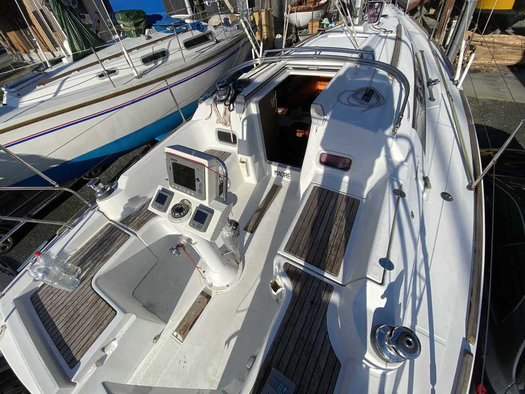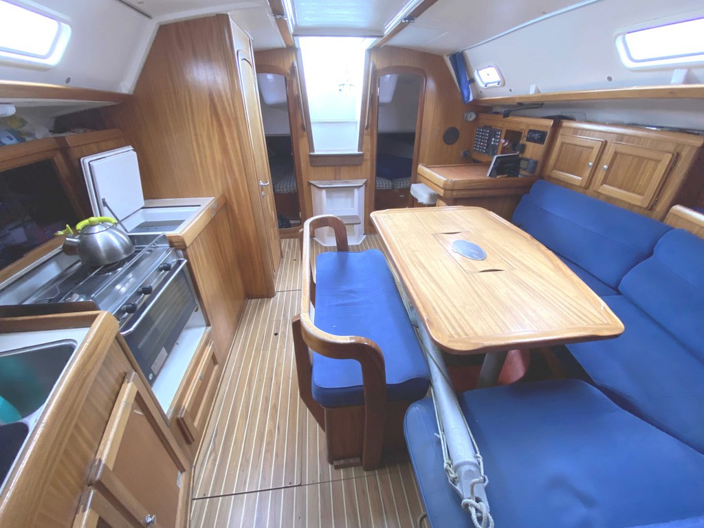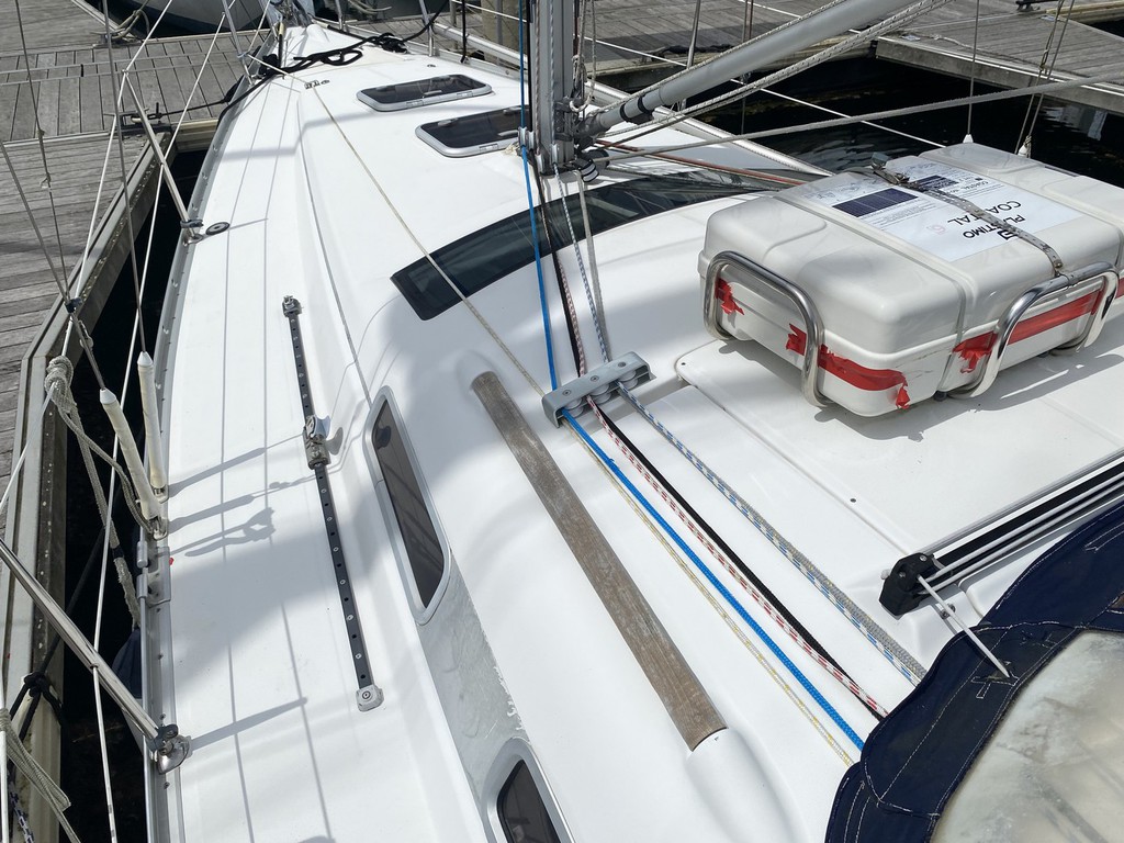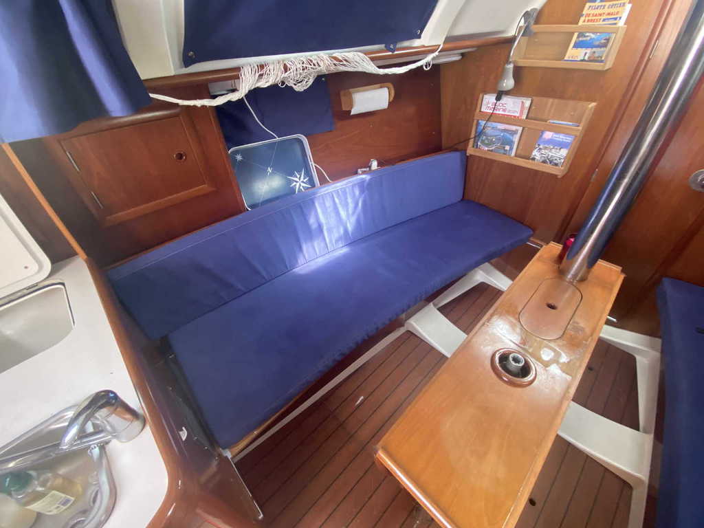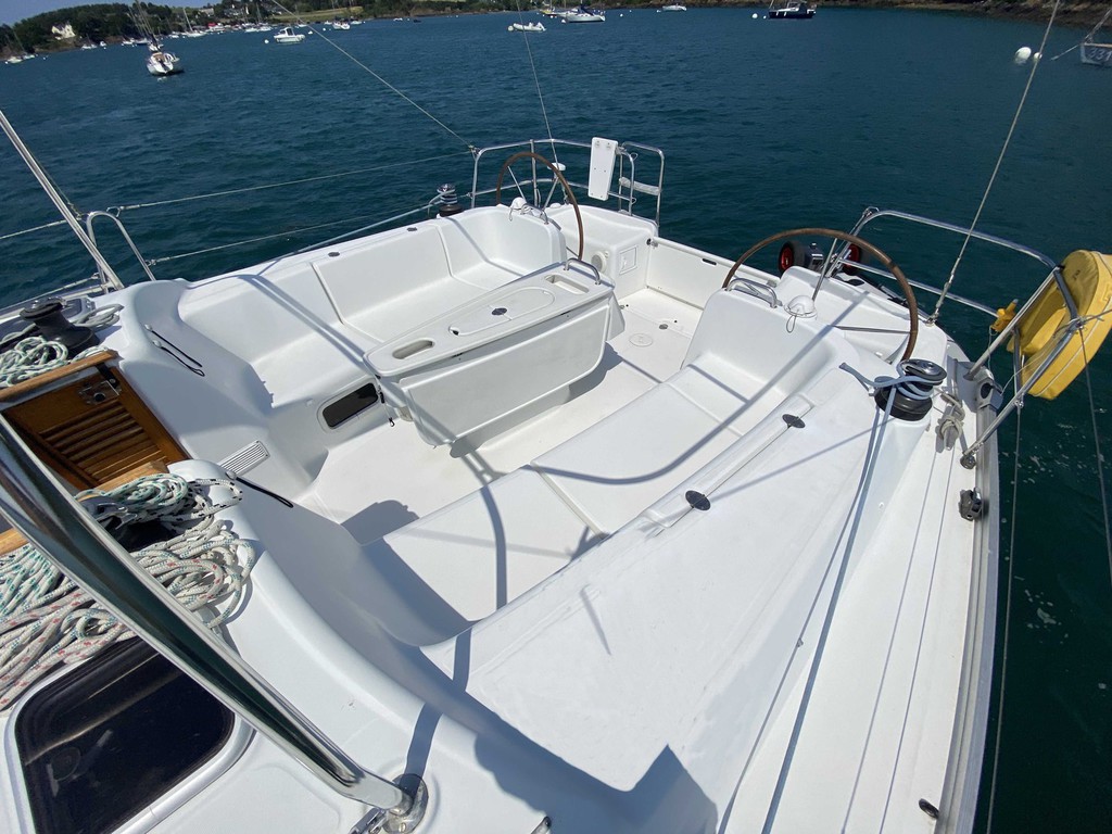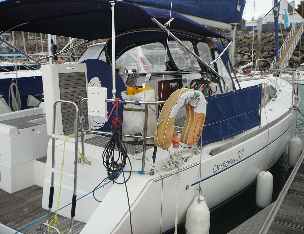 Bénéteau Océanis 37. Bateau occasion visible en Bretagne. Equipé d’un moteur Yanmar de 29 cv. Aménagé avec 3 cabines.Bateau en très bon état, propre et bien entretenu et très bien équipé. Electronique complète Raymarine quasi neuve, pilote inbord, GPS lecteur de cartes Axiom, VHF. Voiles quasi neuves et de qualités. Bien équipé avec capote de descente, bimini, eau chaude, table de cockpit, panneau solaire. Annexe et HB. Bateau prêt à naviguer.