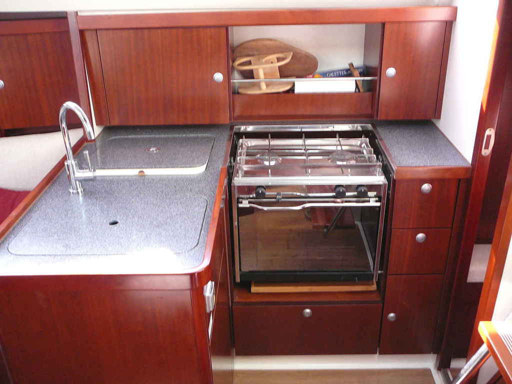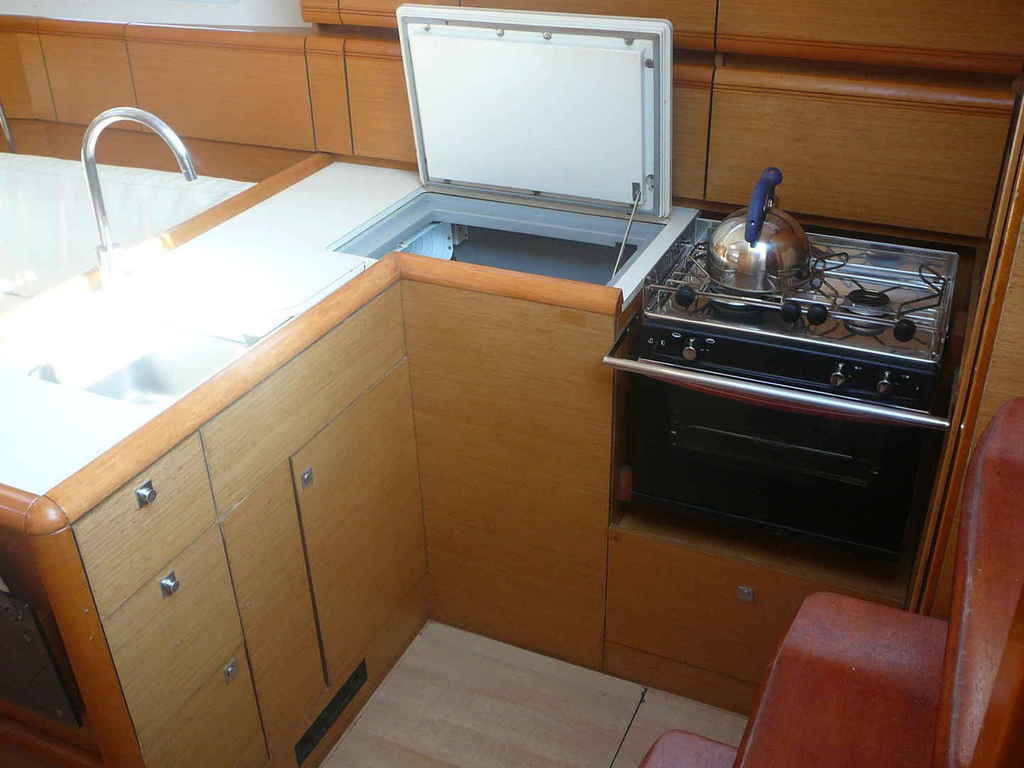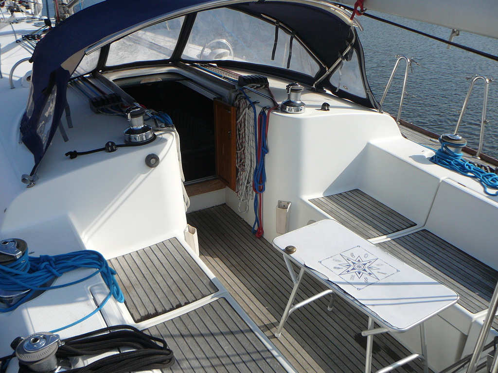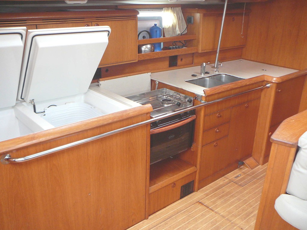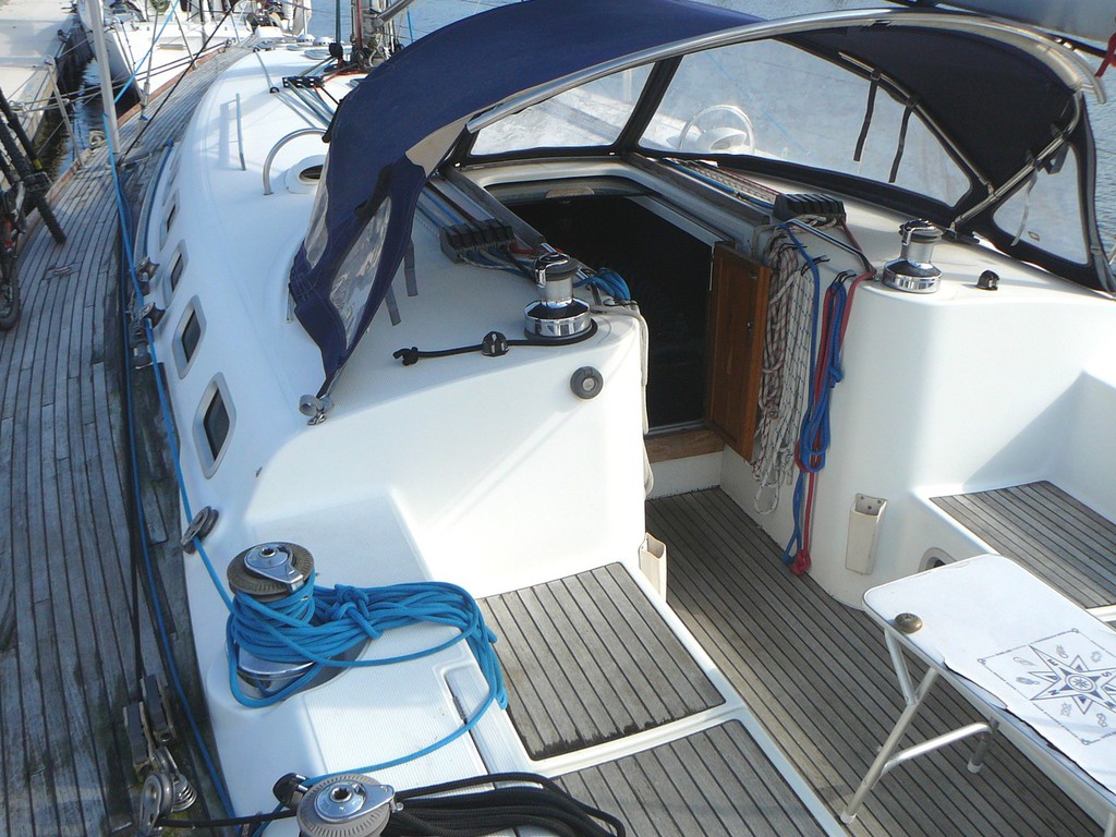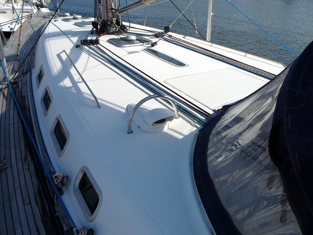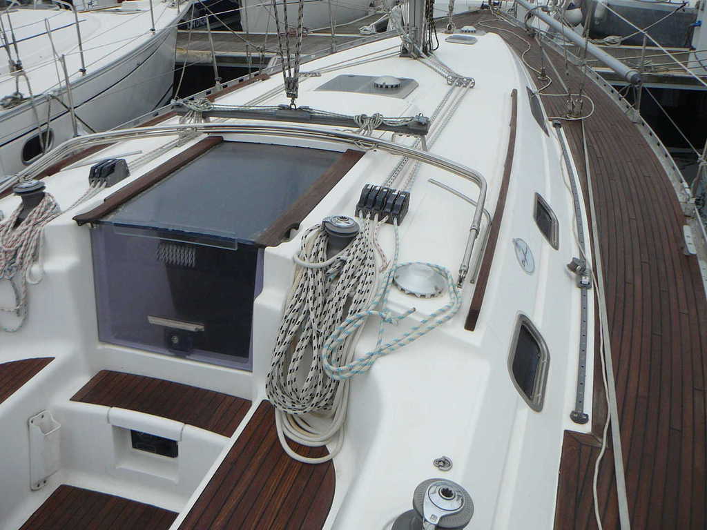 Bénéteau Océanis 411 de 2004. Version performance. Bateau occasion visible en Bretagne. Bateau très bien équipé, bien entretenu. Pont en teck. Aménagé avec 3 cabines et 2 cabines de toilette. Equipé d’un moteur de 55 cv et d’un propulseur d’étrave. Jeu de voiles complet très récent et de qualité avec GV full batten, génois enrouleur tri radiale, gennaker sur enmagasineur. Electronique Complète avec GPS lecteur de cartes et radar. Bien équipé avec capote de roof, bimini, winch électrique, chauffage, guindeau électrique,