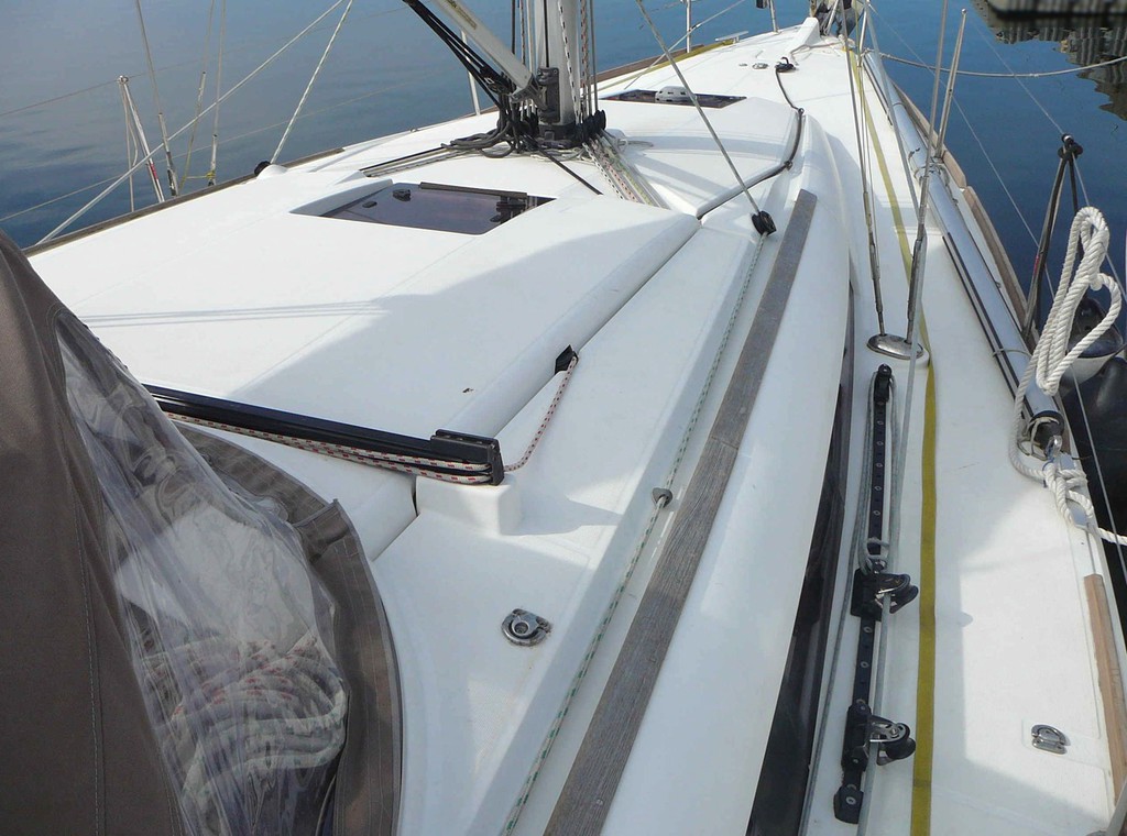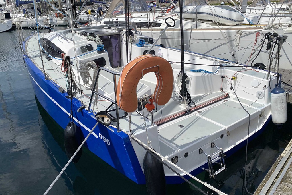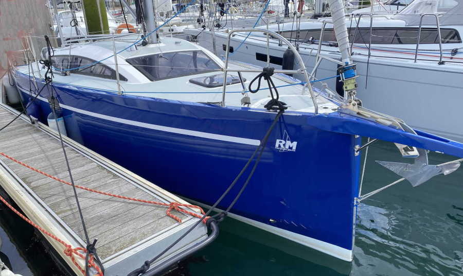 RM 890 de 2014. Bateau d'occasion visible en Bretagne. Biquille mono safran. Un croiseur au volume intérieur important et offrant de belles performances. Aménagé avec 2 cabines. Equipé d’un moteur Volvo de 13 cv. Jeu de voiles complet avec spi asymétrique, trinquette. Equipements électronique Raymarine complet. Tout confort avec capote de descente, eau chaude sous pression, guindeau électrique.