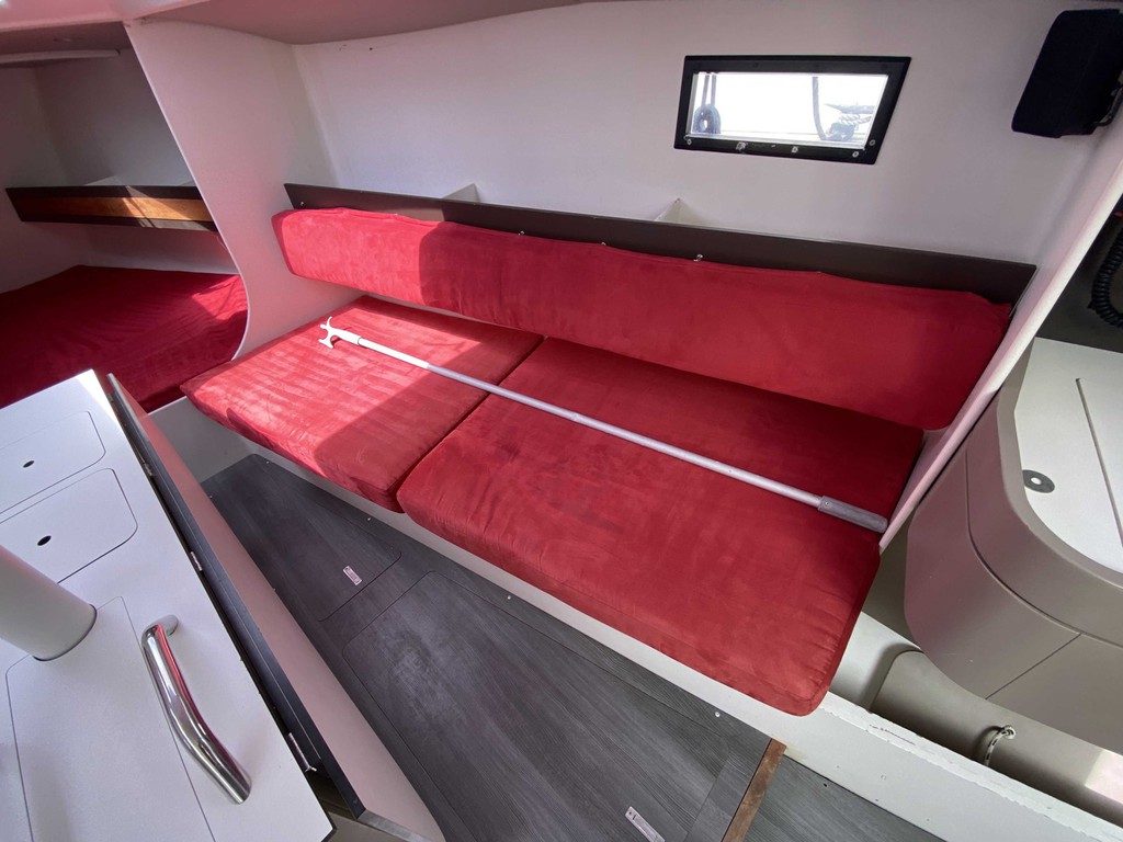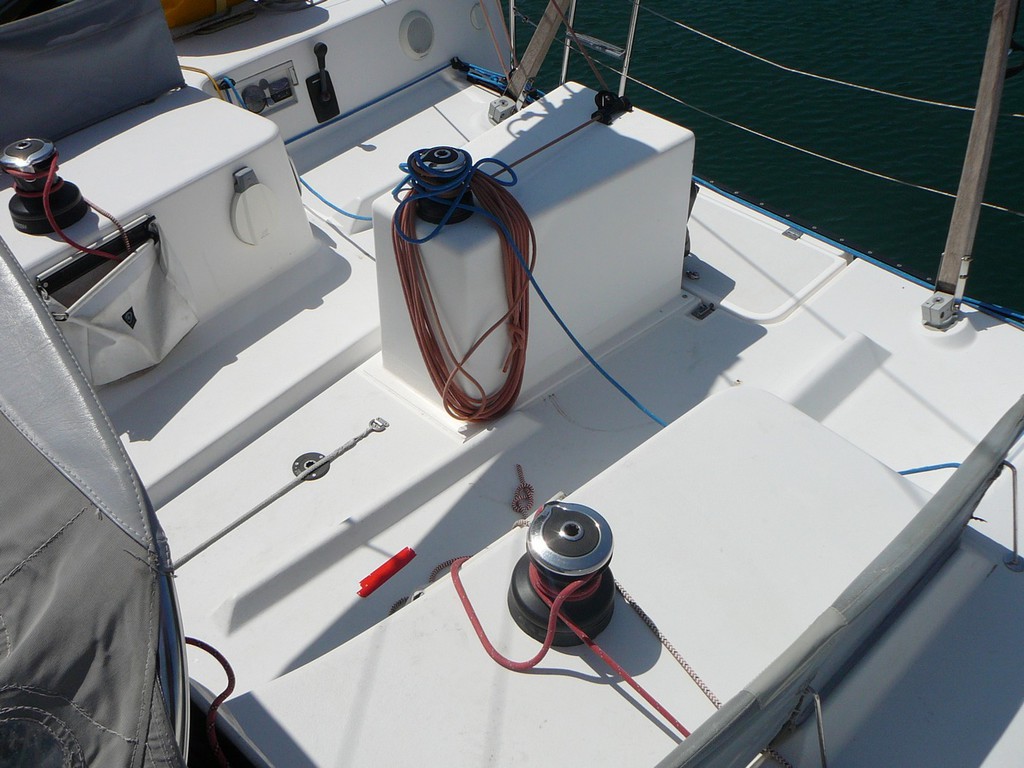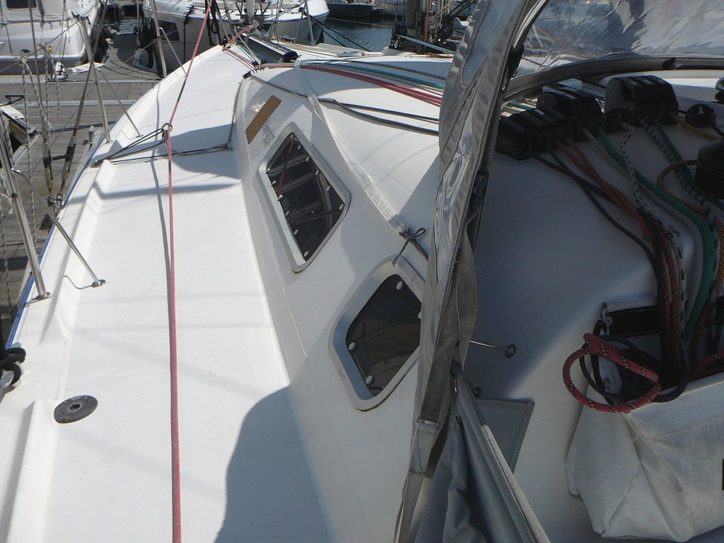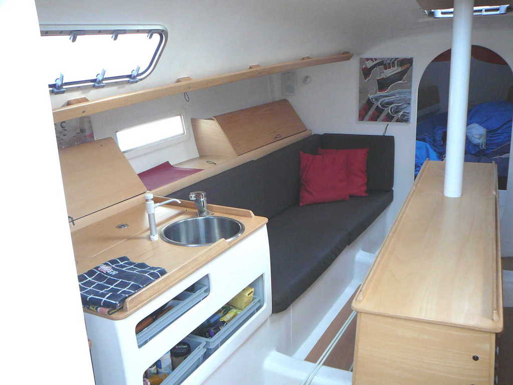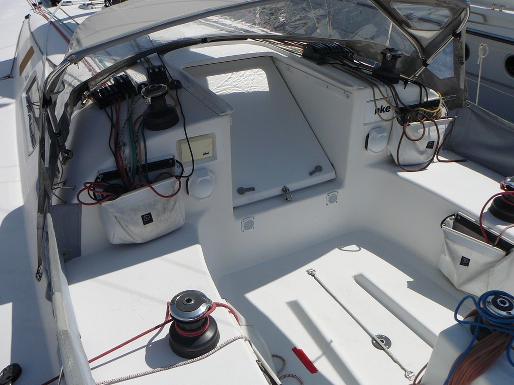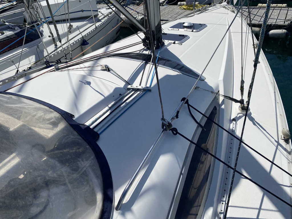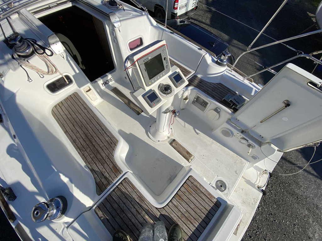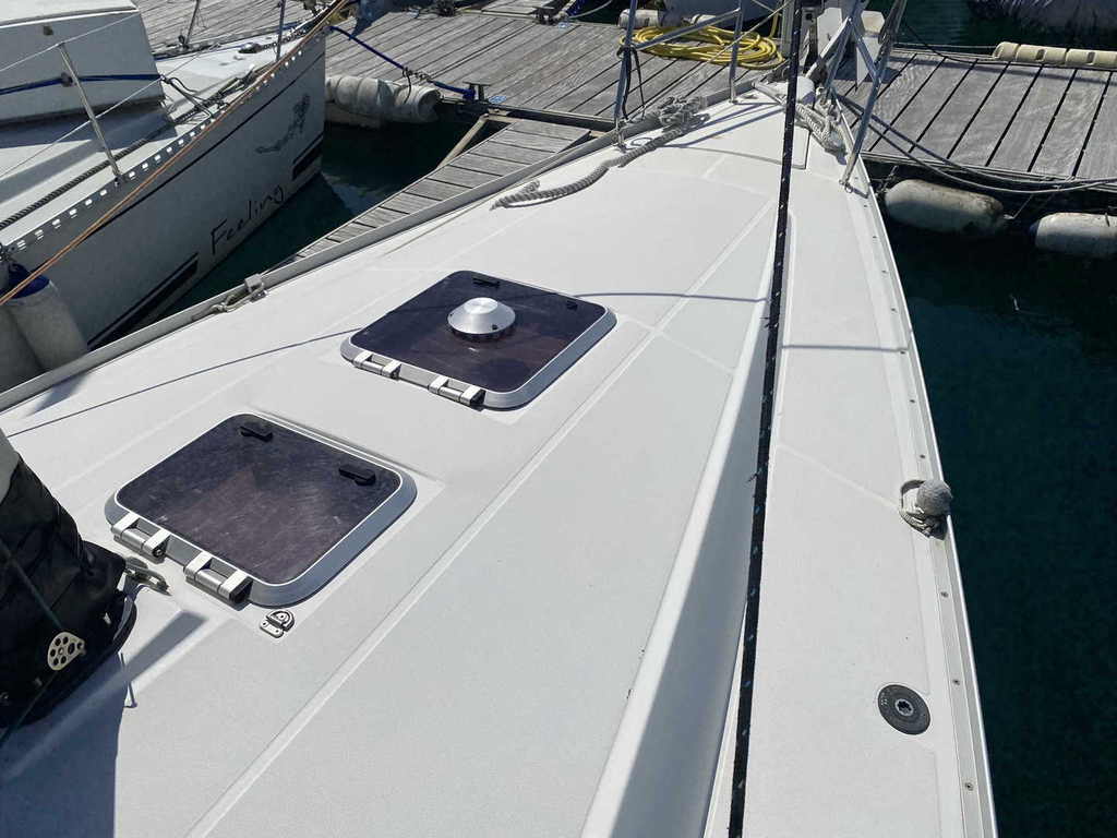 dériveur. Aménagé avec 2 cabines. Equipé d’un moteur de 19 cv. Equipements électronique Raymarine complet neuf avec lecteur de cartes et pilote, AIS. Jeu de voiles complet et quasi neuf avec spi