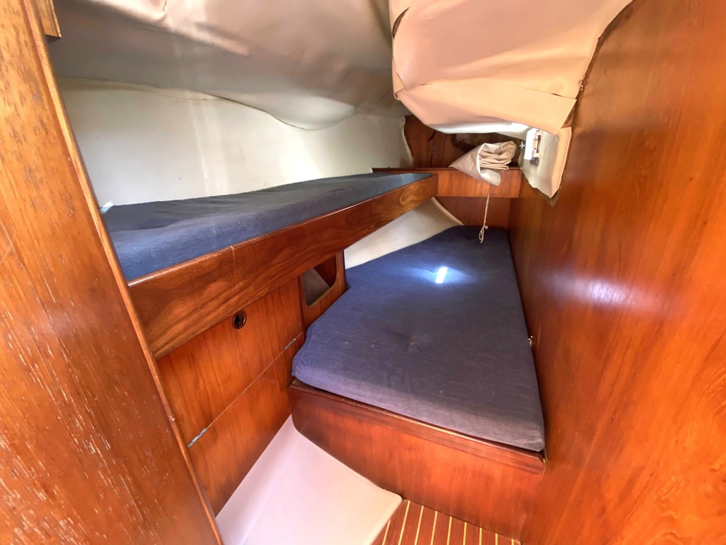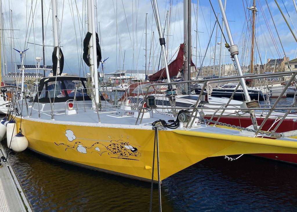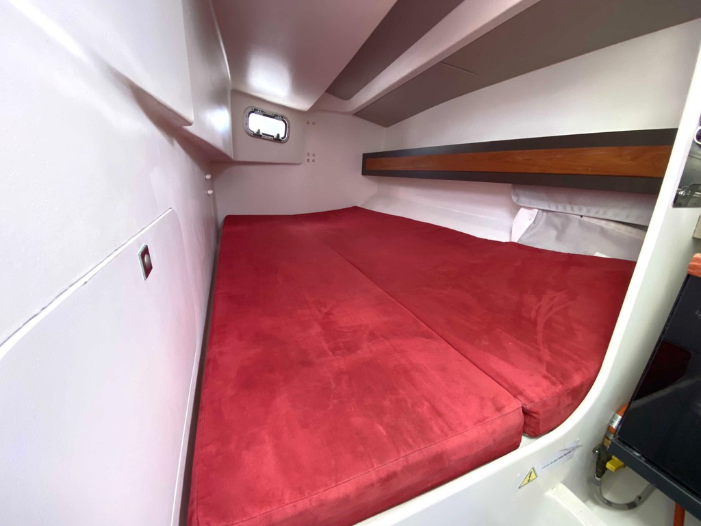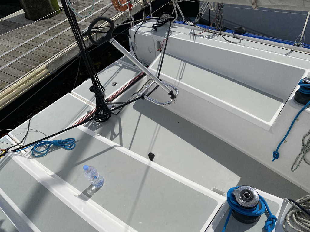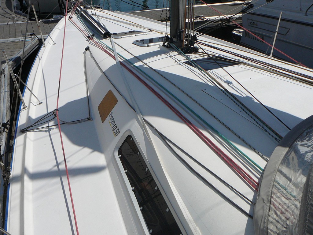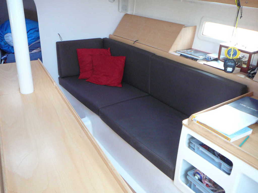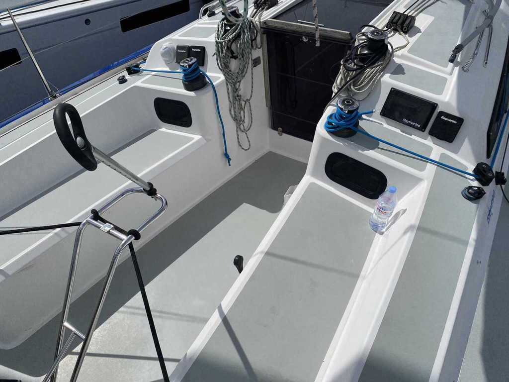 dériveur. Aménagé avec 2 cabines. Equipé d’un moteur de 19 cv. Equipements électronique Raymarine complet neuf avec lecteur de cartes et pilote, AIS. Jeu de voiles complet et quasi neuf avec spi