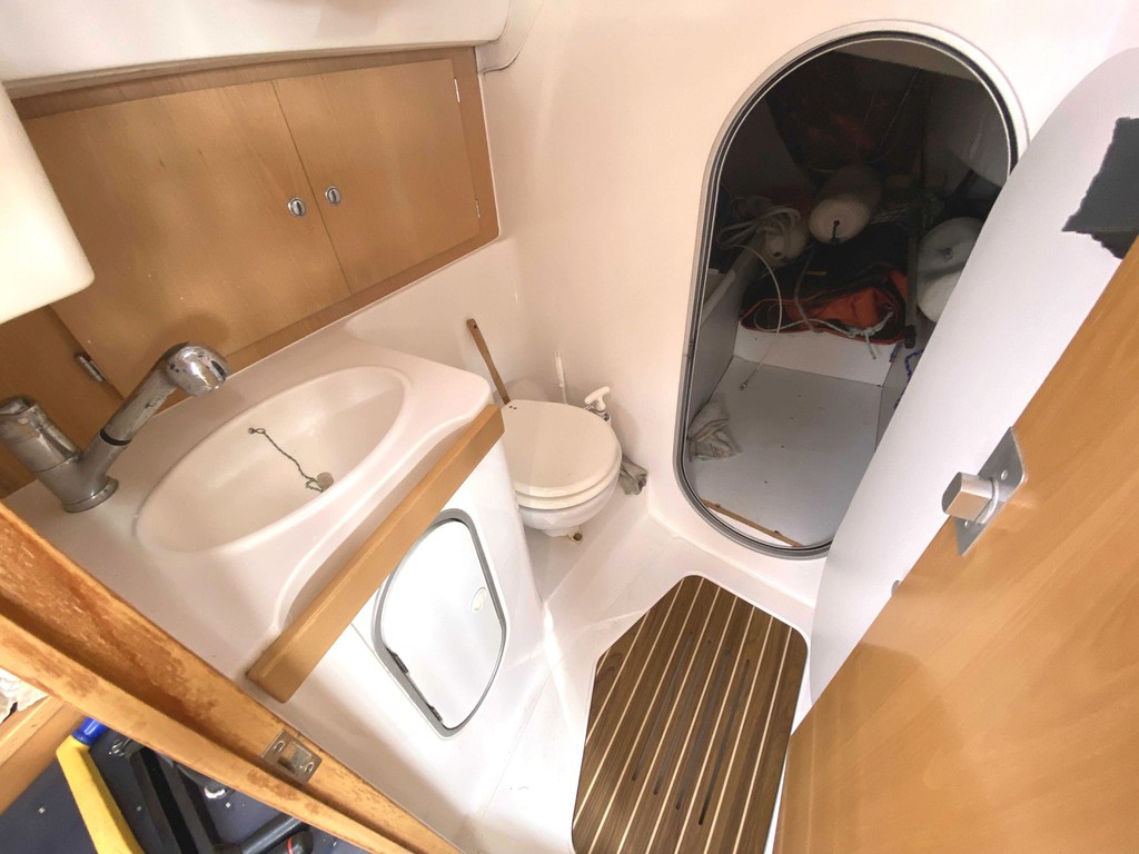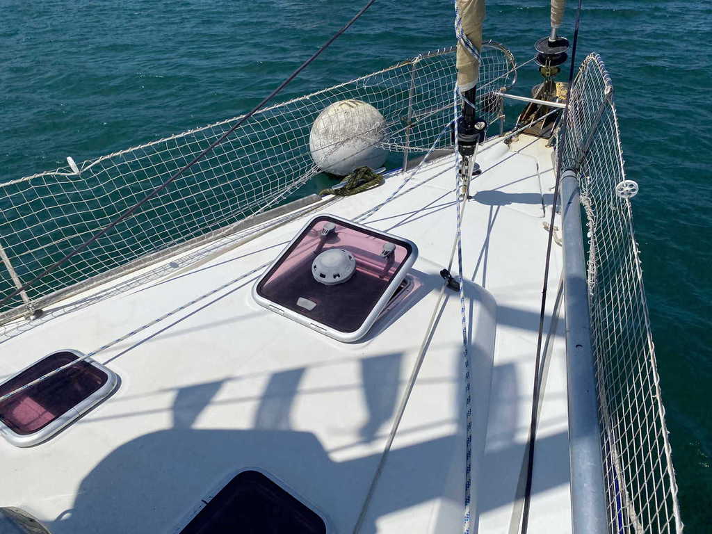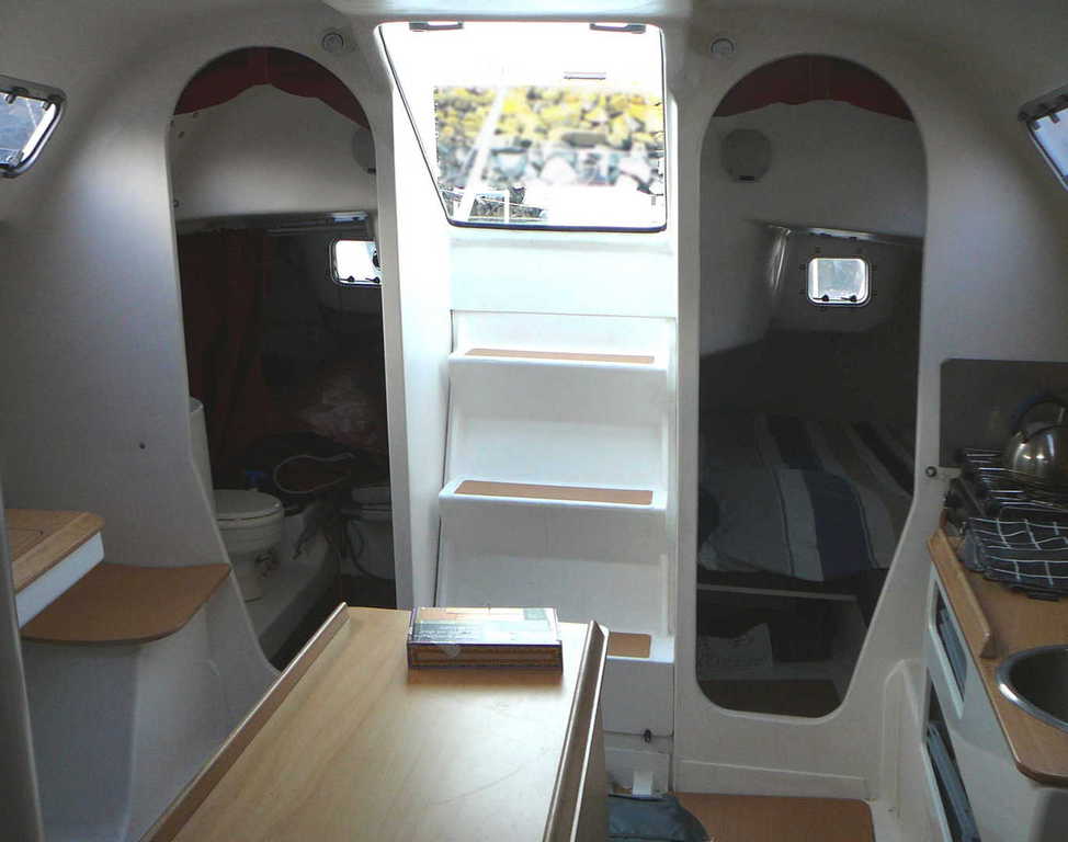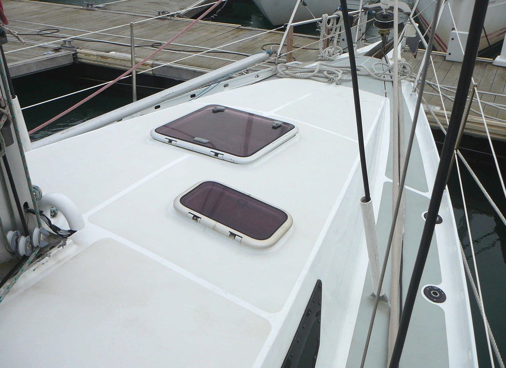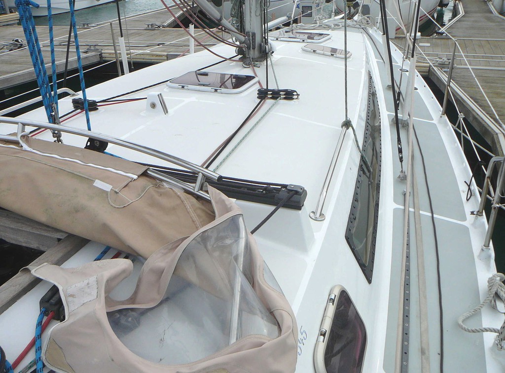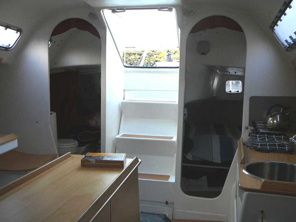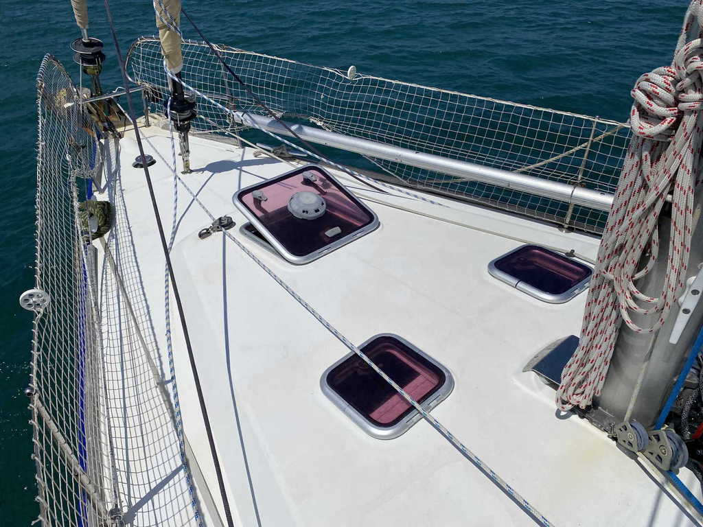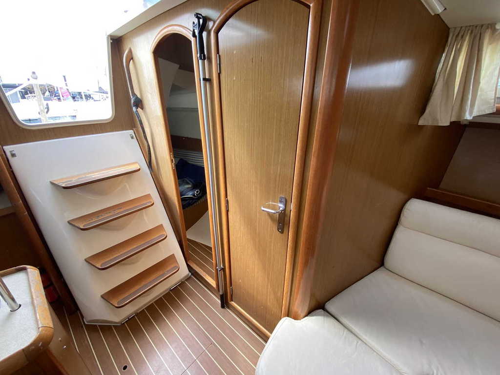 dériveur. Aménagé avec 2 cabines. Equipé d’un moteur de 19 cv. Equipements électronique Raymarine complet neuf avec lecteur de cartes et pilote, AIS. Jeu de voiles complet et quasi neuf avec spi