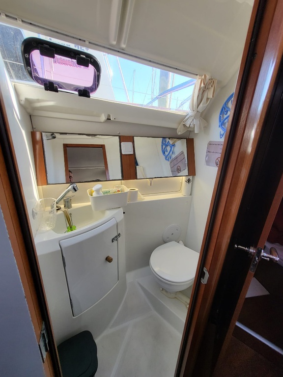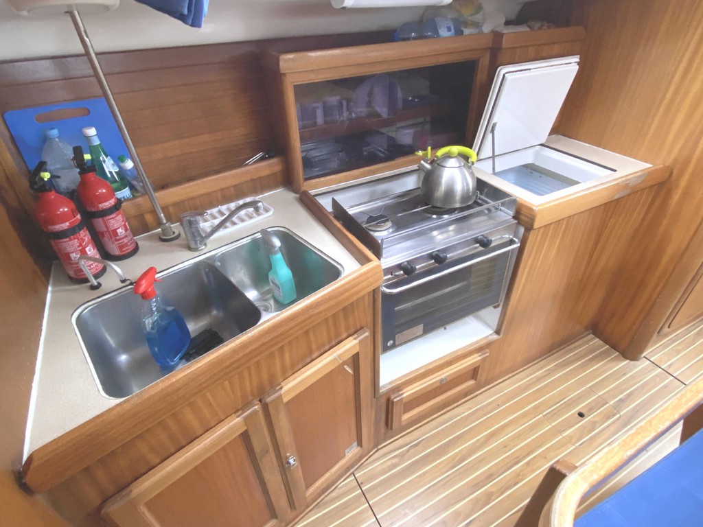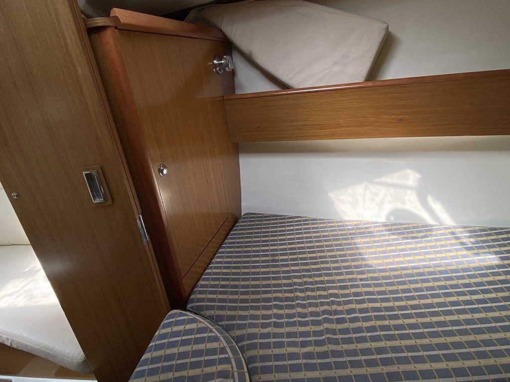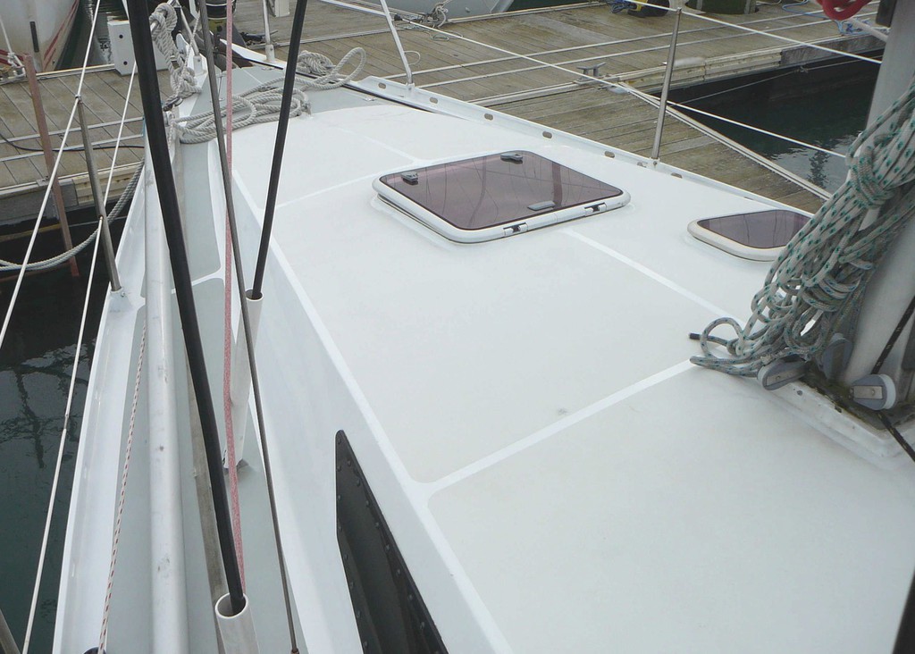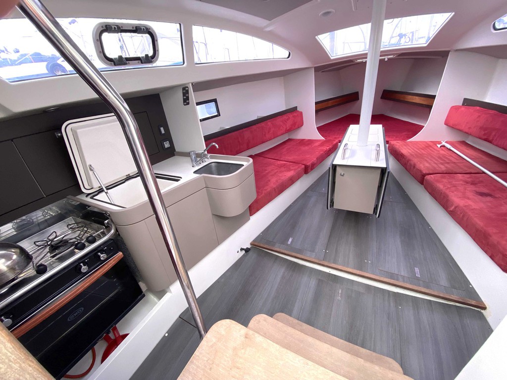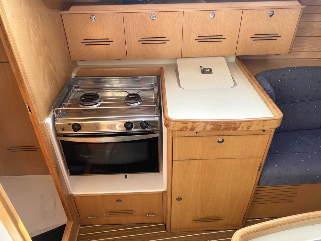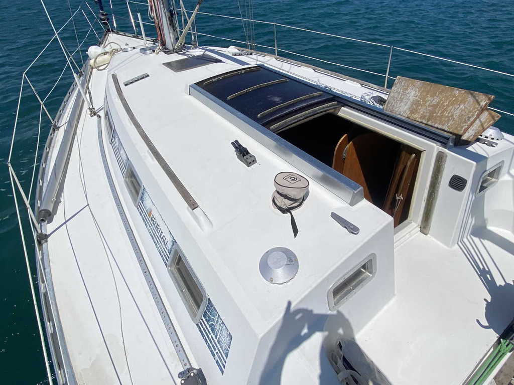 dériveur. Aménagé avec 2 cabines. Equipé d’un moteur de 19 cv. Equipements électronique Raymarine complet neuf avec lecteur de cartes et pilote, AIS. Jeu de voiles complet et quasi neuf avec spi