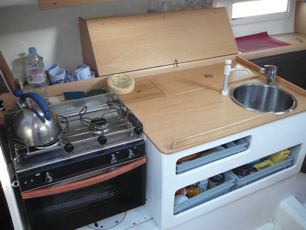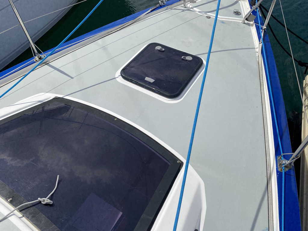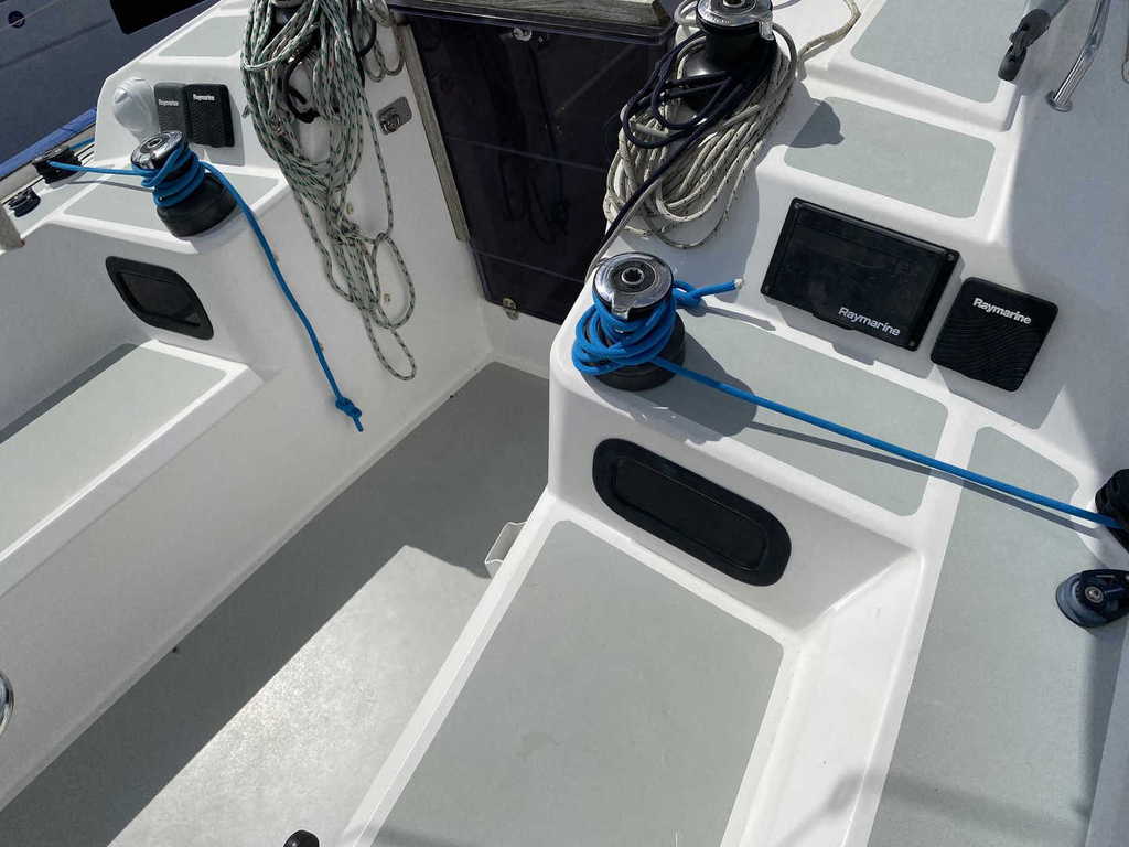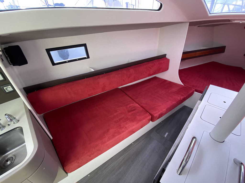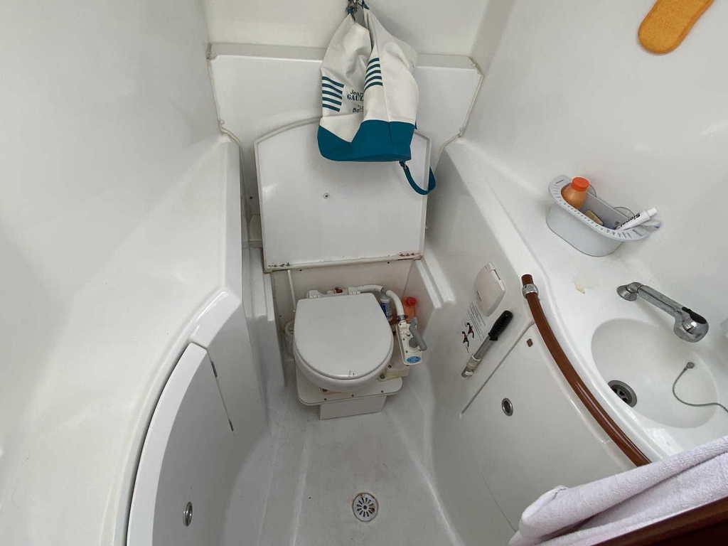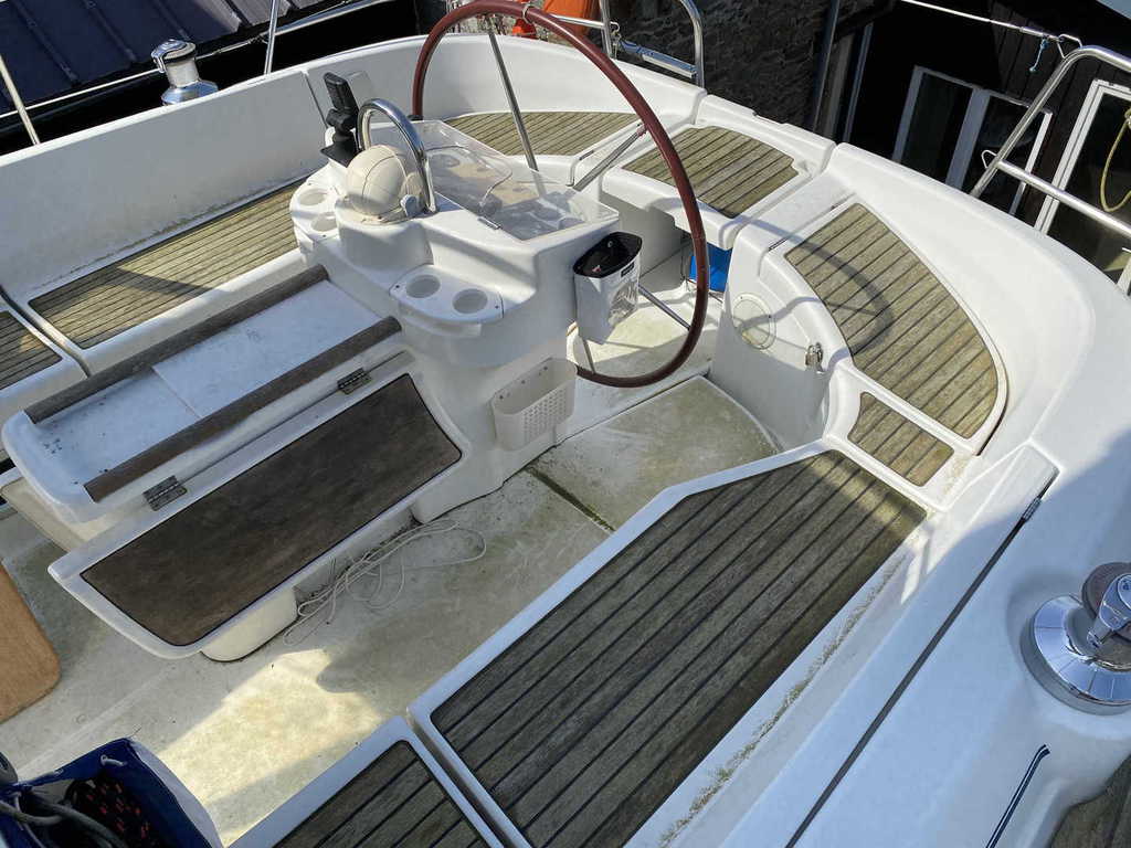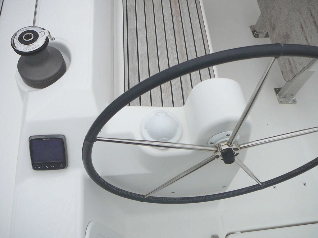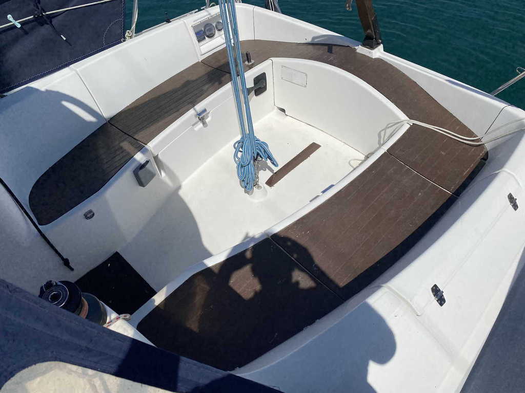 dériveur. Aménagé avec 2 cabines. Equipé d’un moteur de 19 cv. Equipements électronique Raymarine complet neuf avec lecteur de cartes et pilote, AIS. Jeu de voiles complet et quasi neuf avec spi