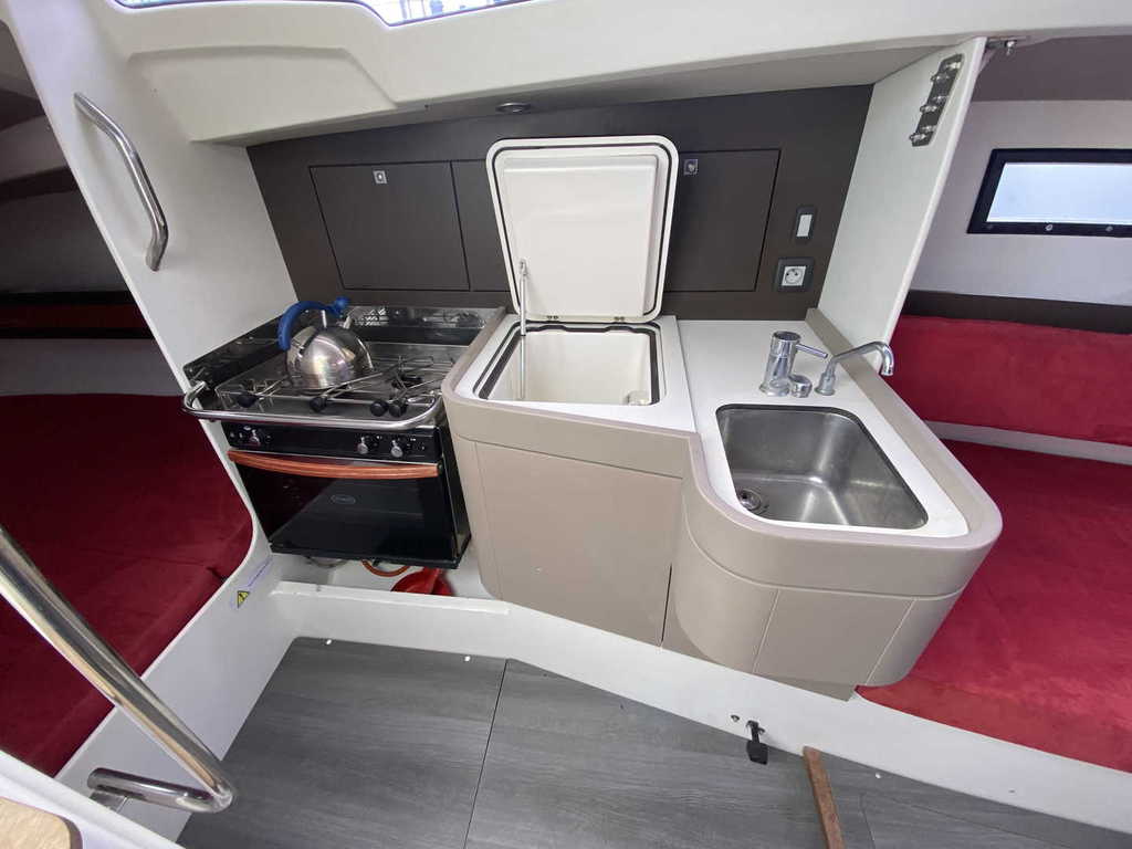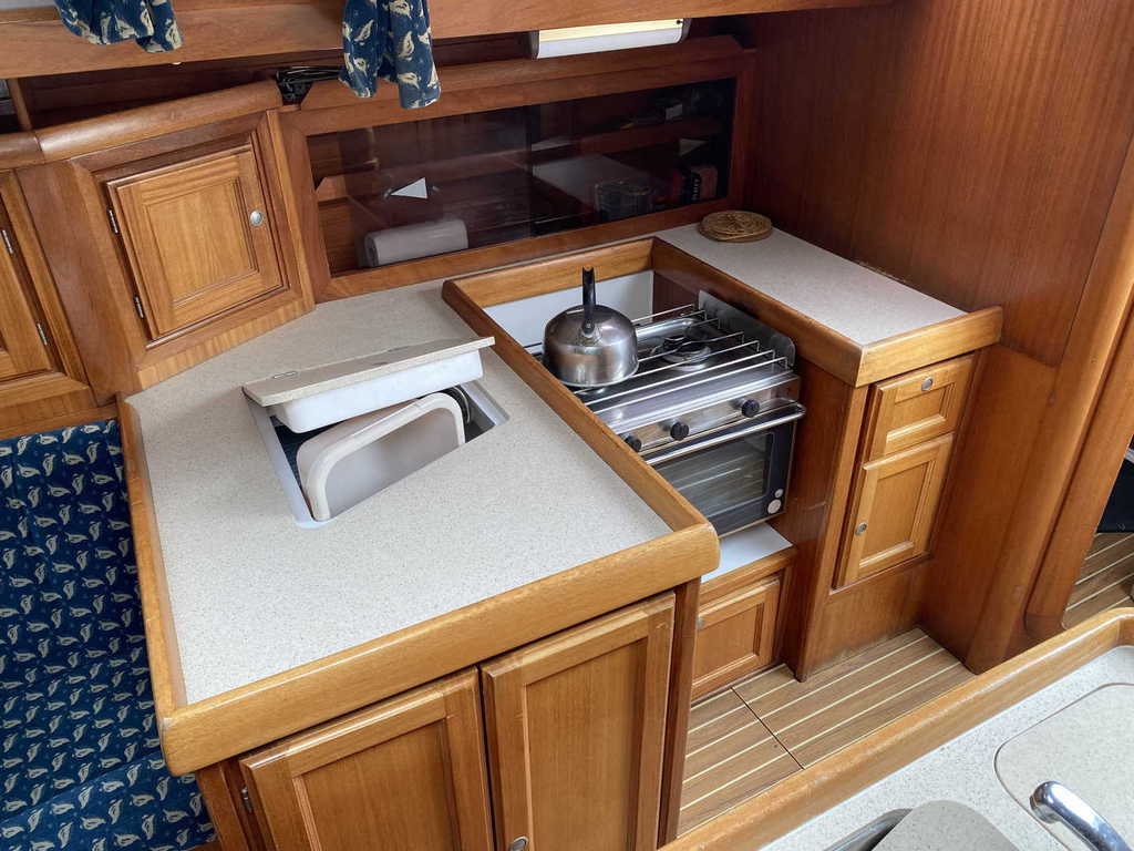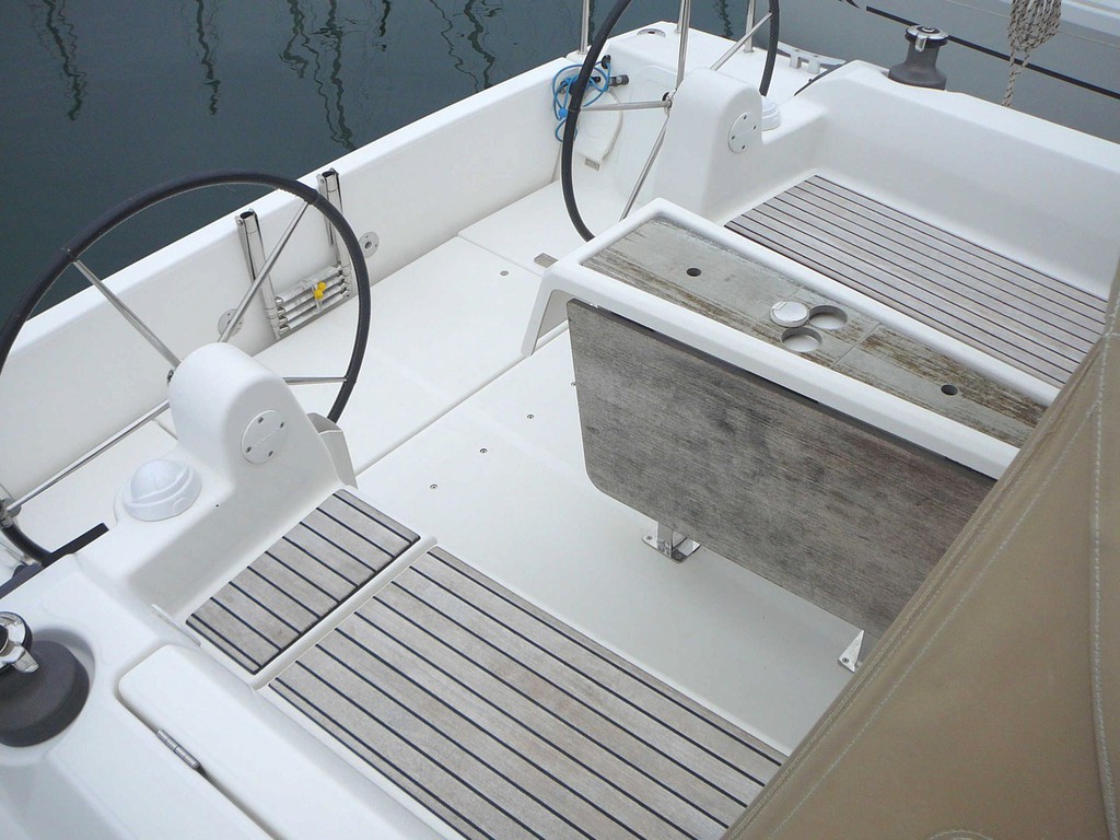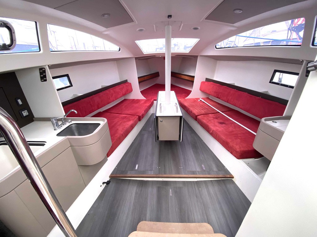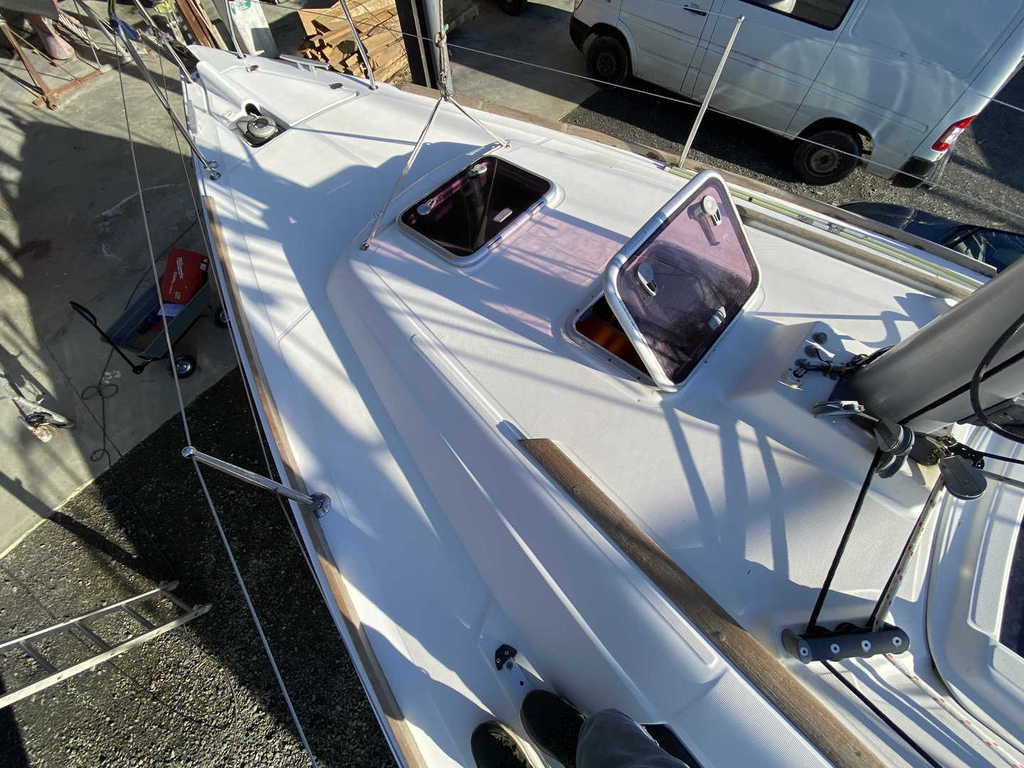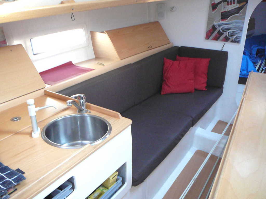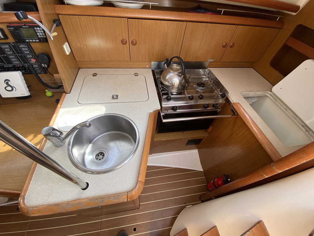 dériveur. Aménagé avec 2 cabines. Equipé d’un moteur de 19 cv. Equipements électronique Raymarine complet neuf avec lecteur de cartes et pilote, AIS. Jeu de voiles complet et quasi neuf avec spi