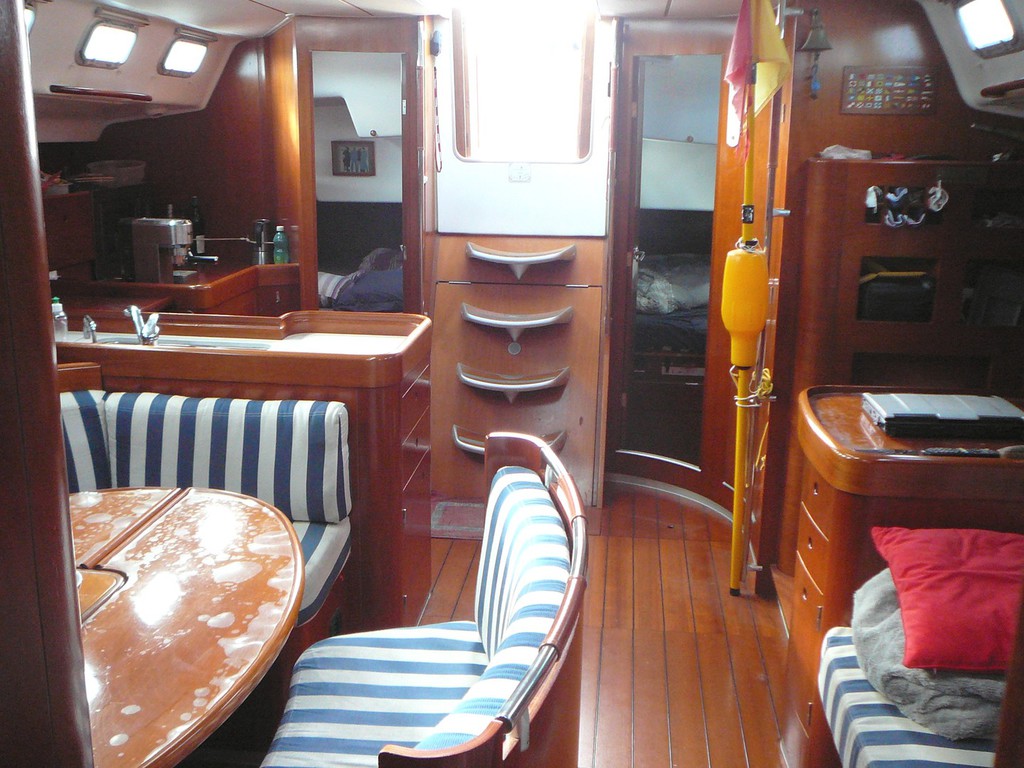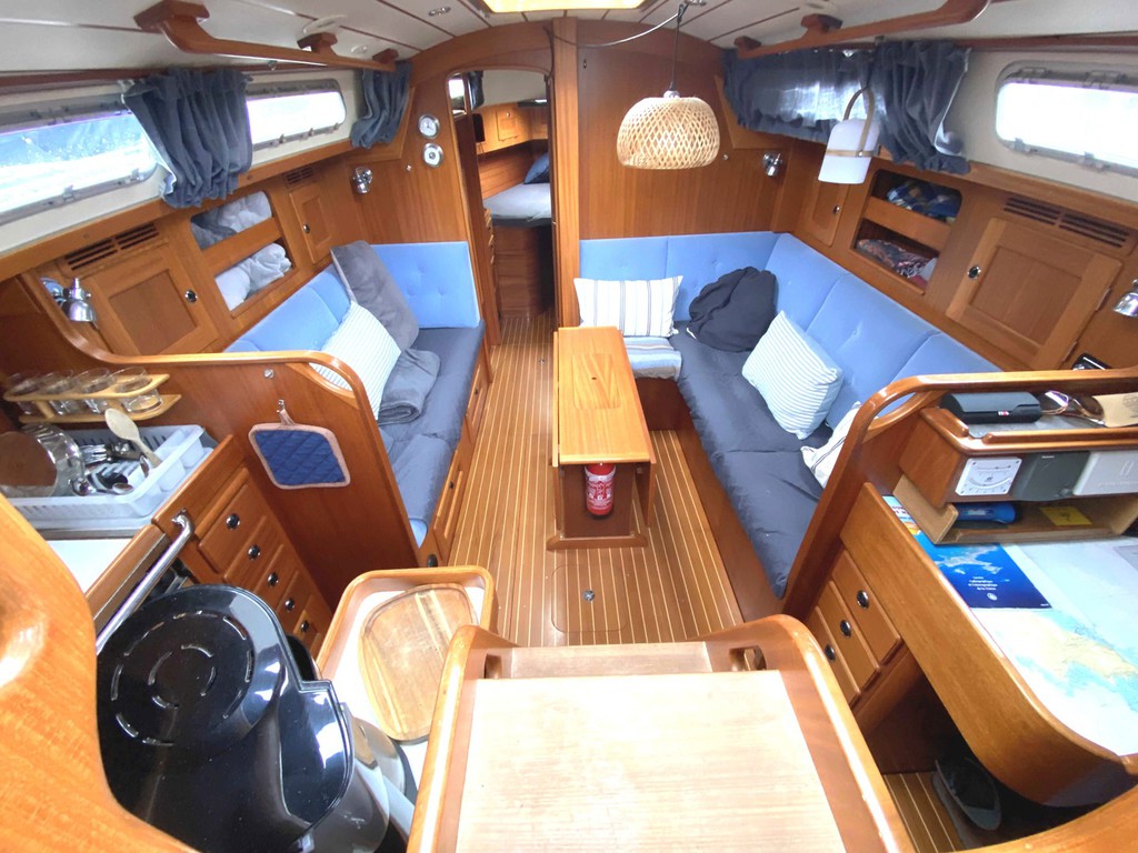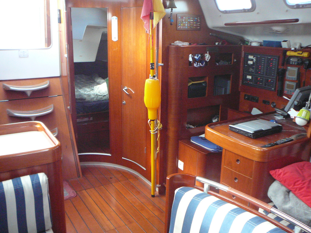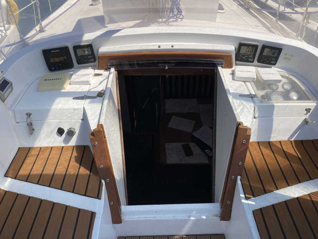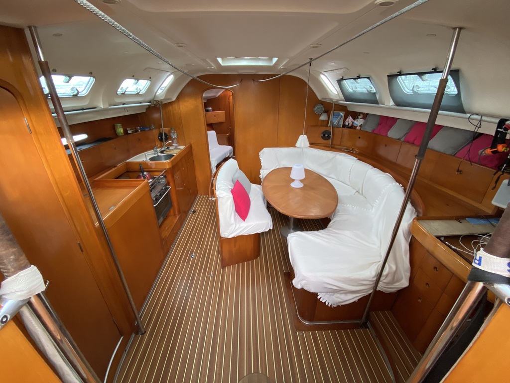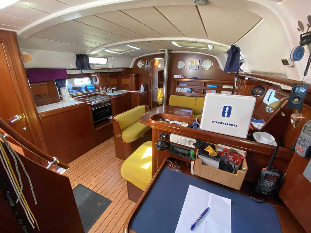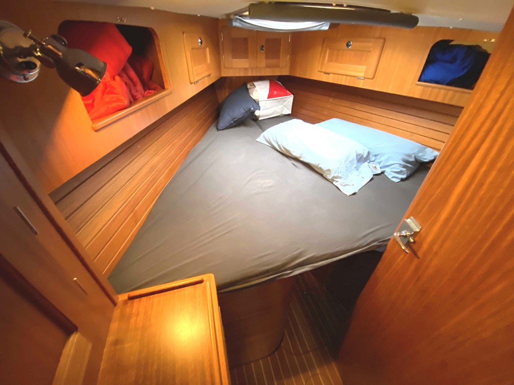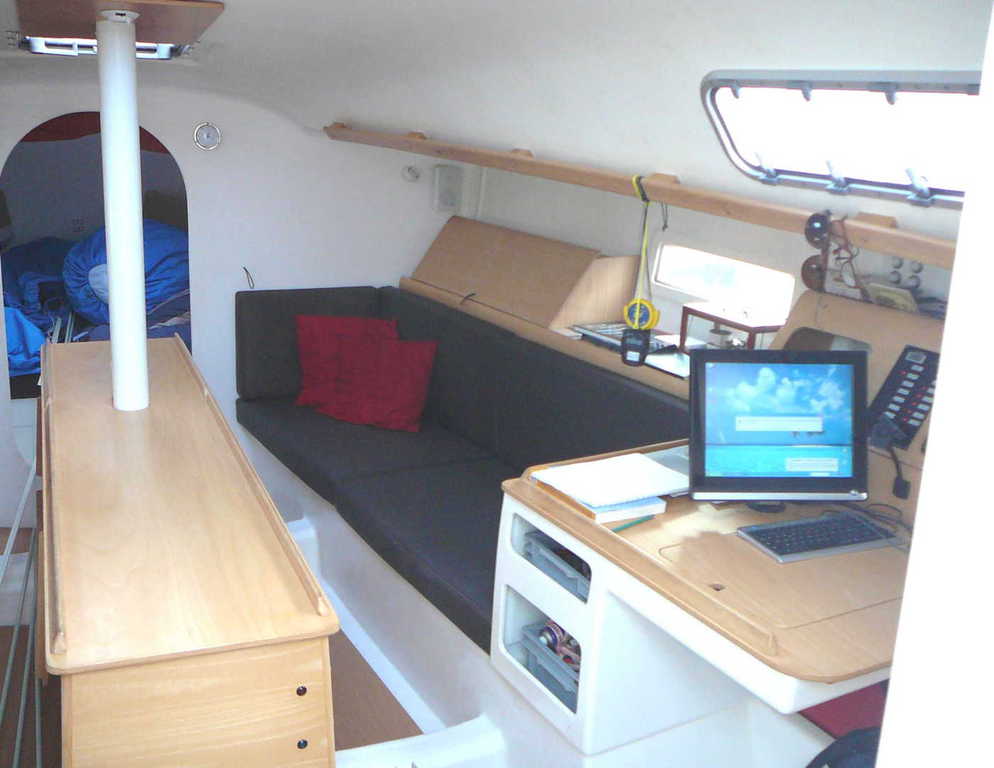 carré très confortable. Equipé d’un moteur de 50 cv. Jeu de voiles complet avec GV, artimon, génois et spi. Electronique complète avec GPS lecteur de cartes, pilote, AIS, PC avec cartographie, vhf,