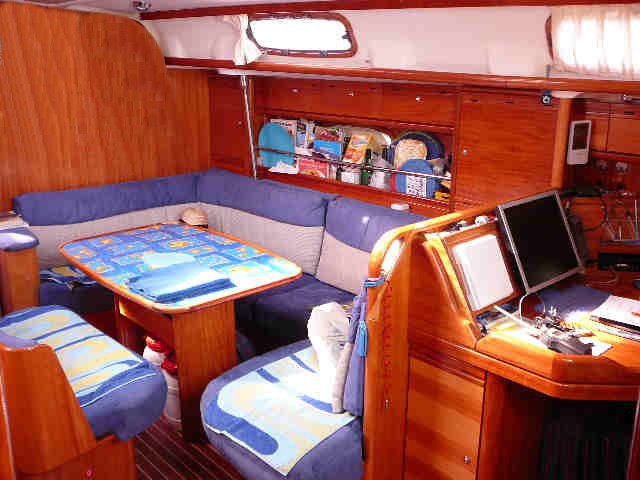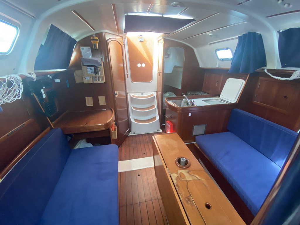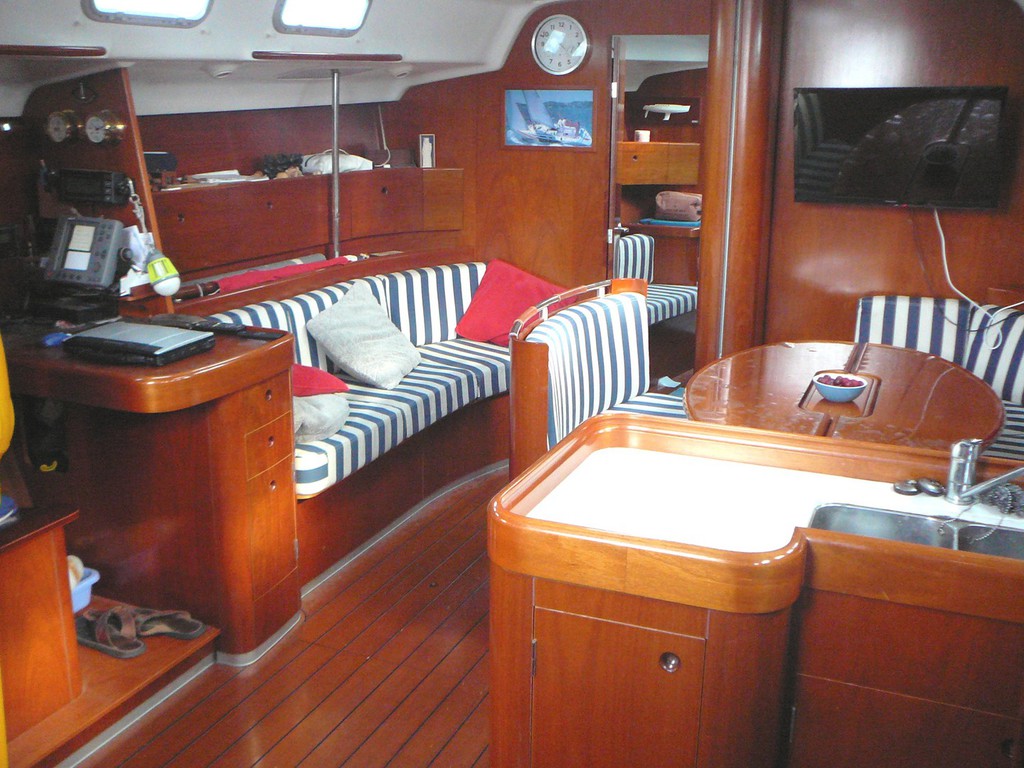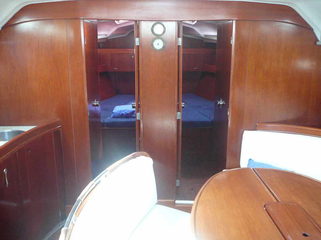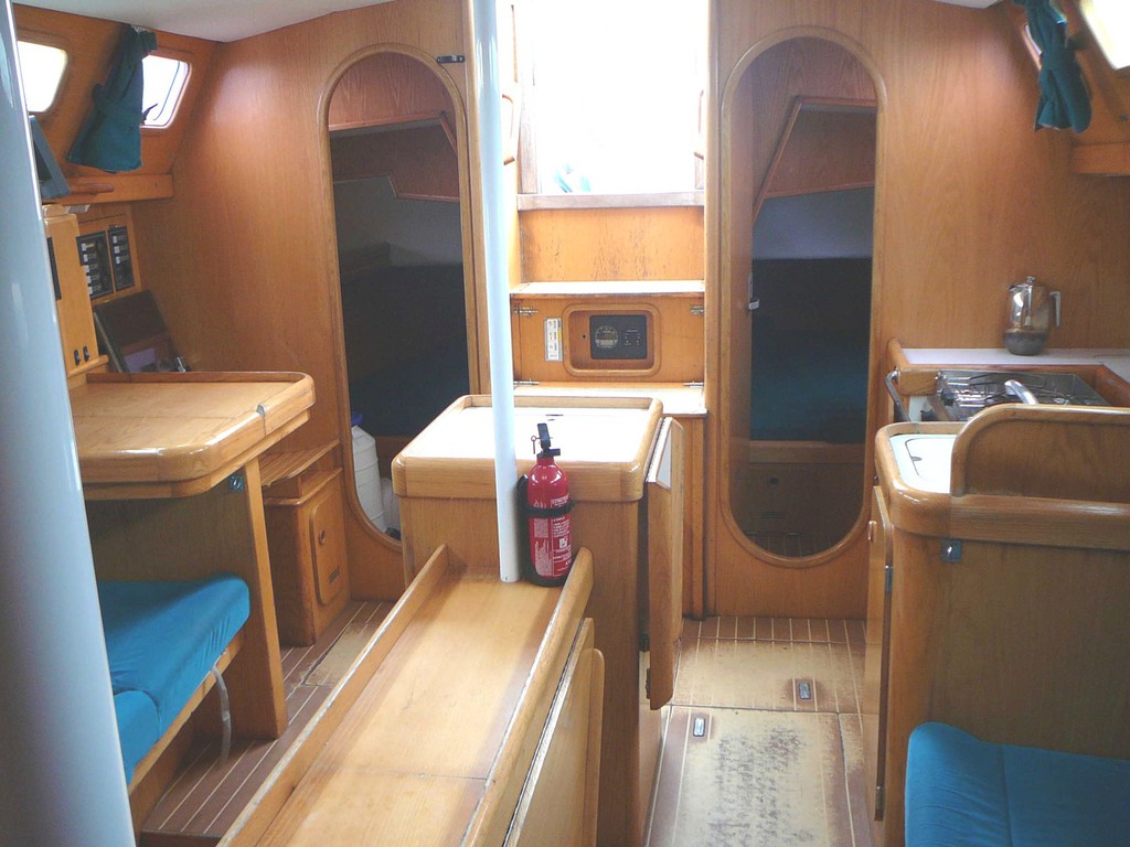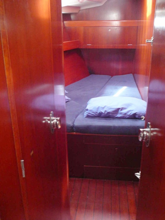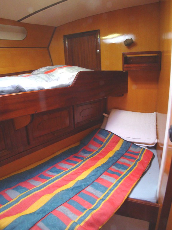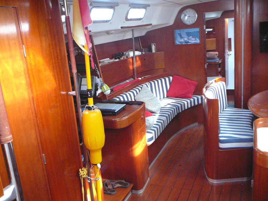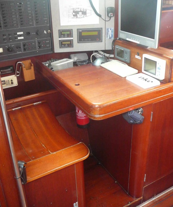 carré très confortable. Equipé d’un moteur de 50 cv. Jeu de voiles complet avec GV, artimon, génois et spi. Electronique complète avec GPS lecteur de cartes, pilote, AIS, PC avec cartographie, vhf,
