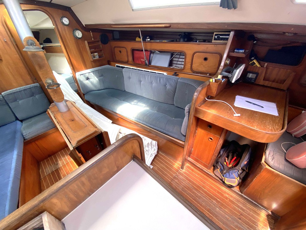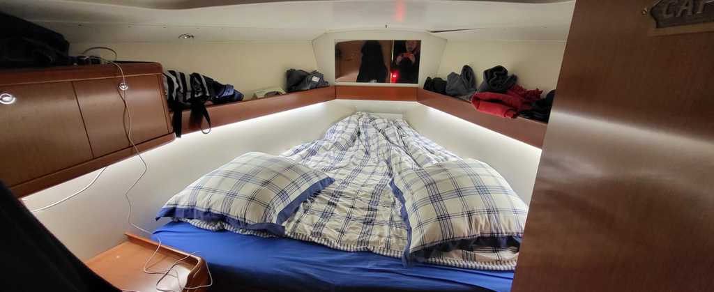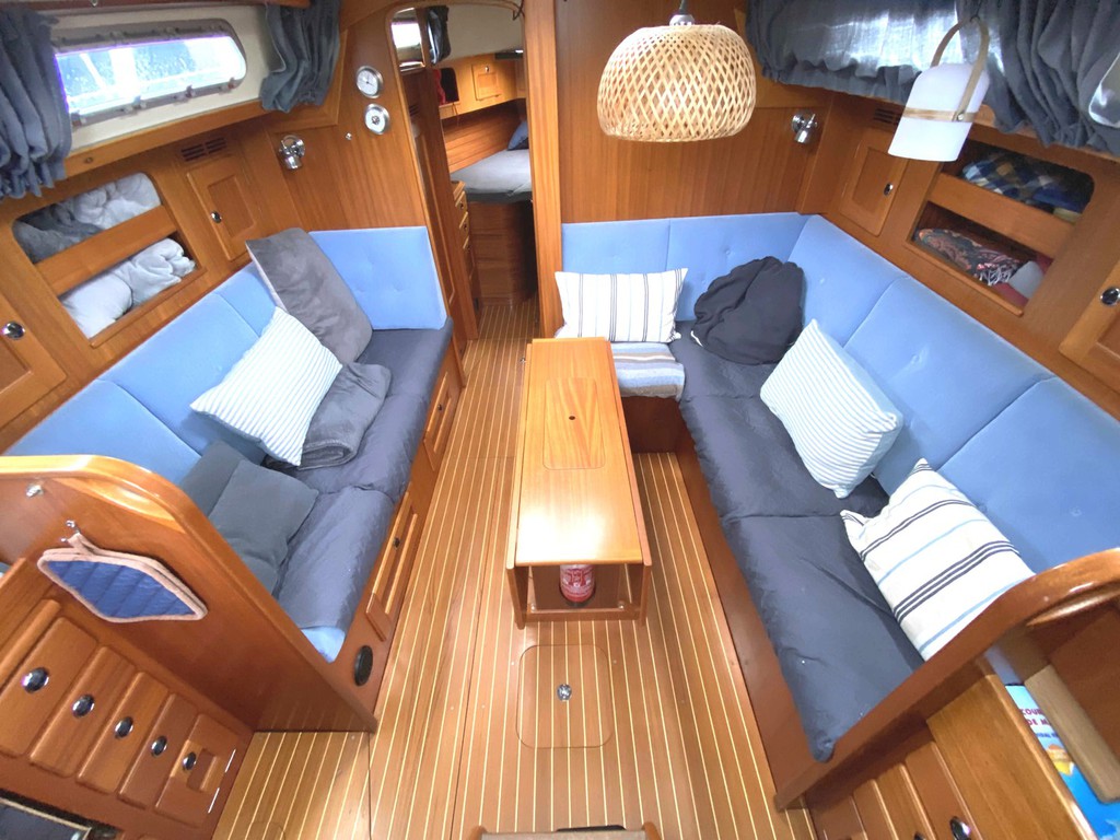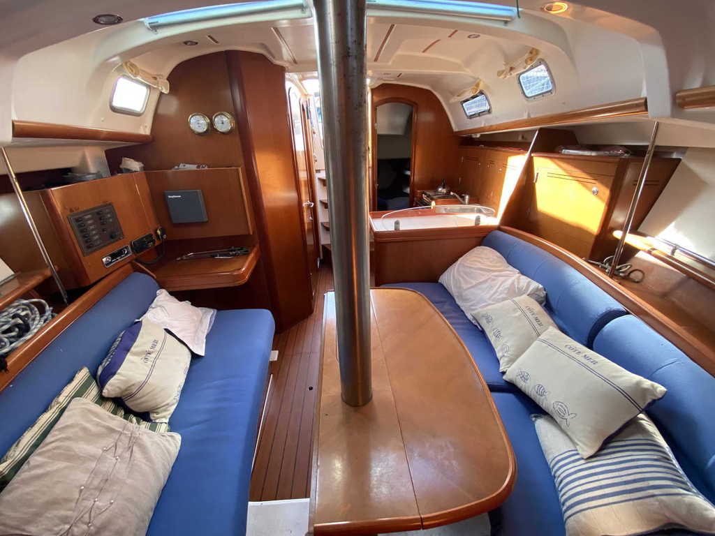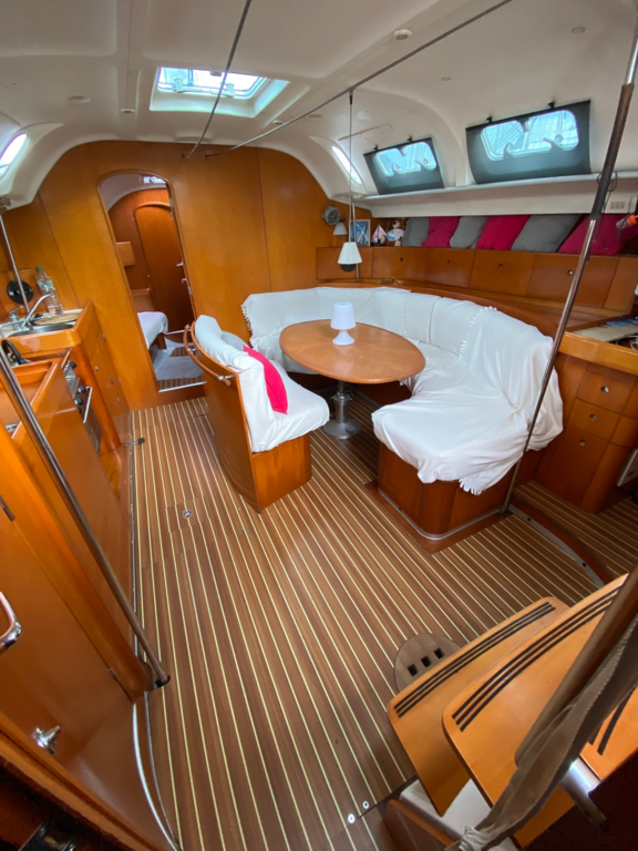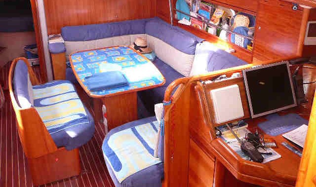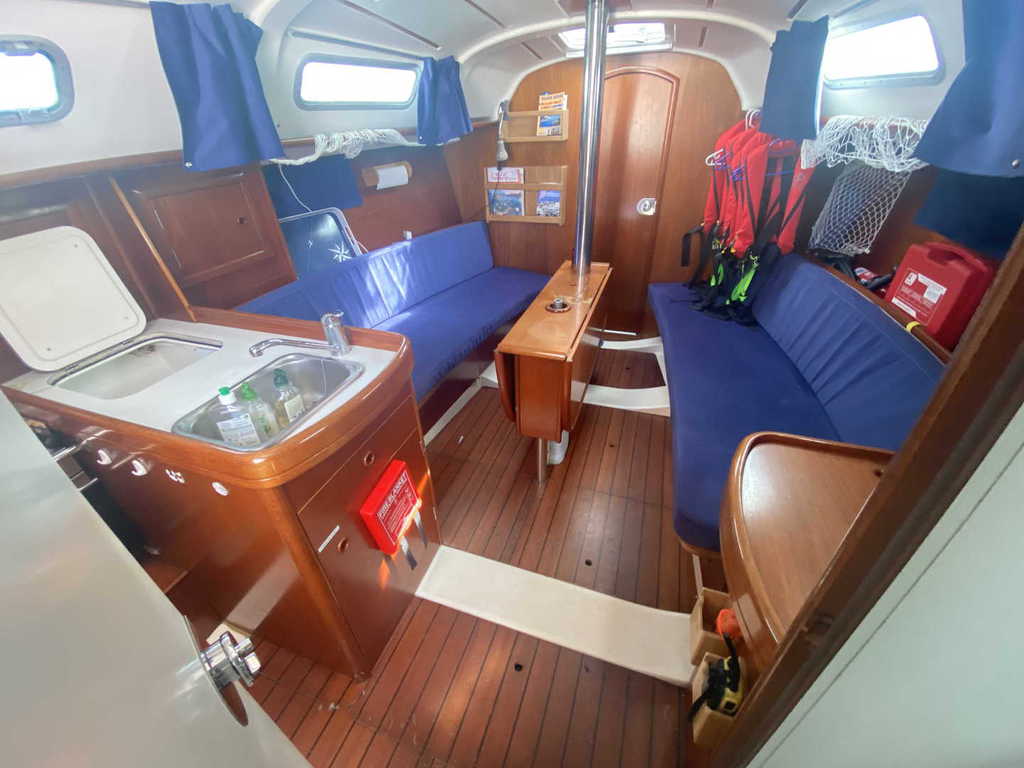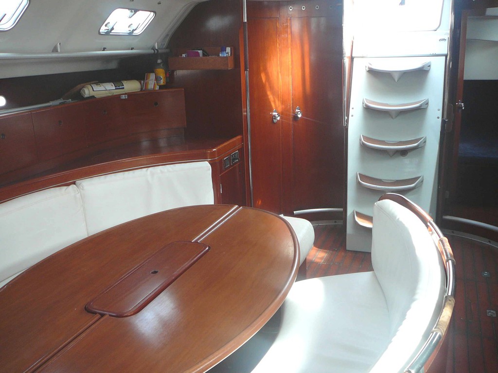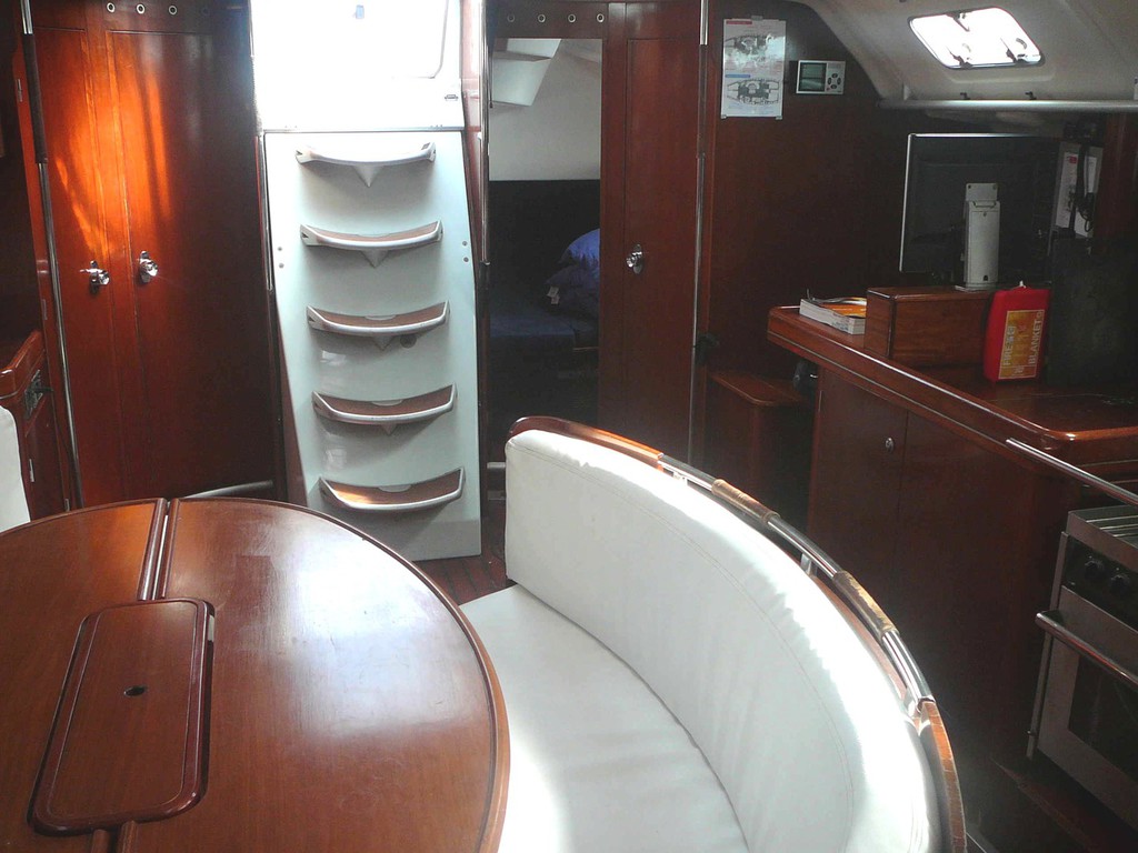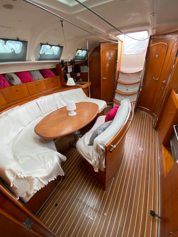 carré très confortable. Equipé d’un moteur de 50 cv. Jeu de voiles complet avec GV, artimon, génois et spi. Electronique complète avec GPS lecteur de cartes, pilote, AIS, PC avec cartographie, vhf,