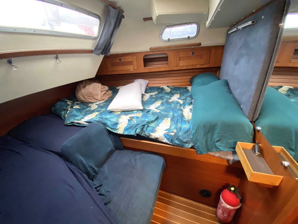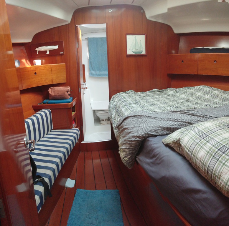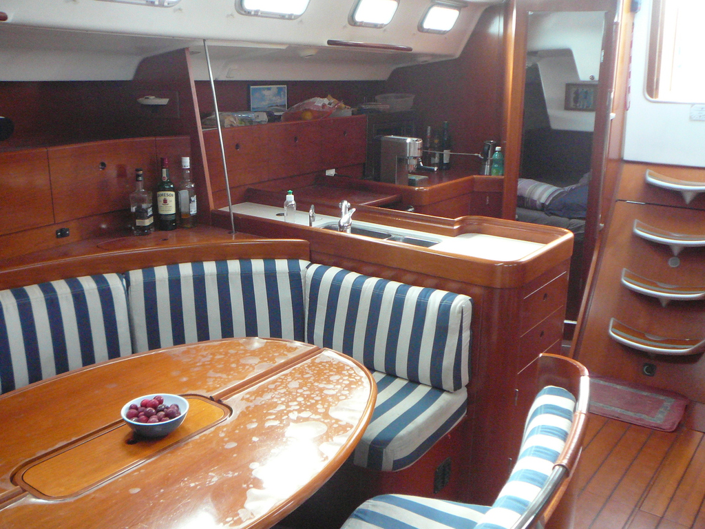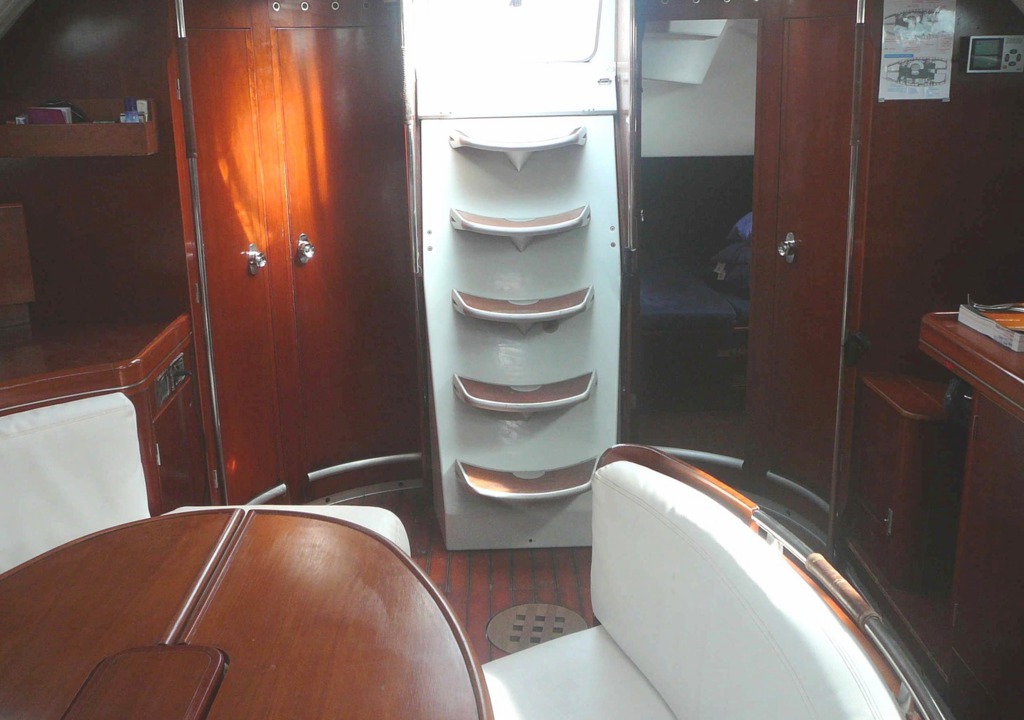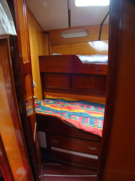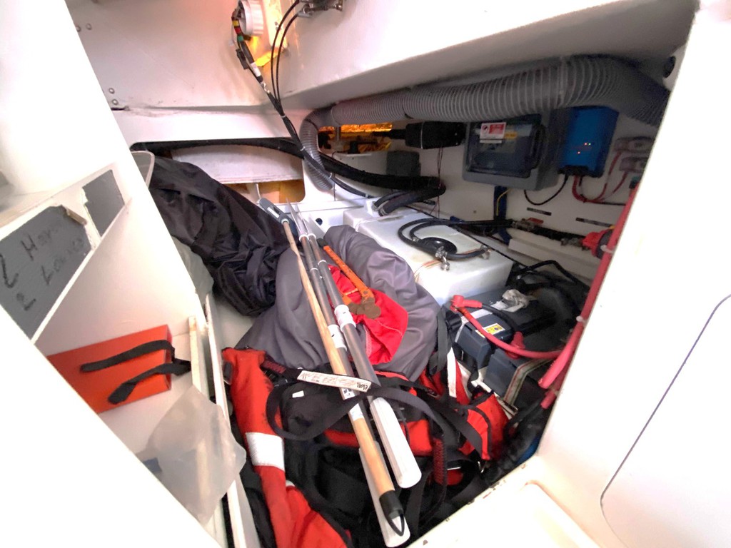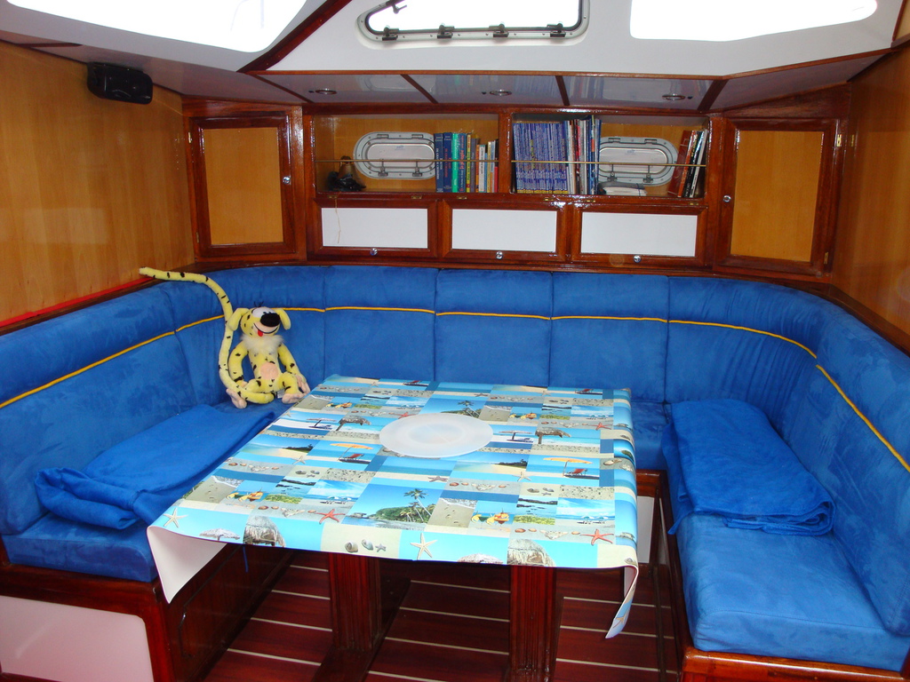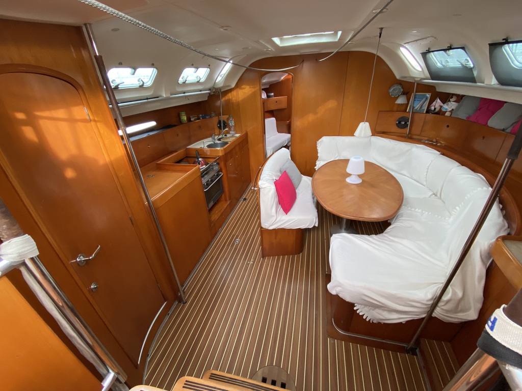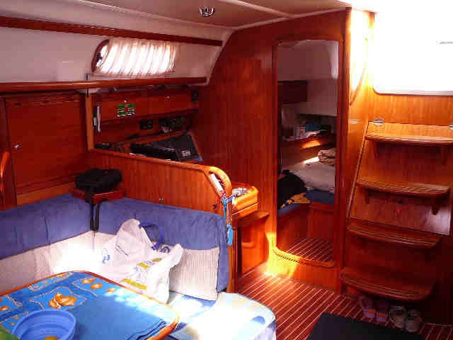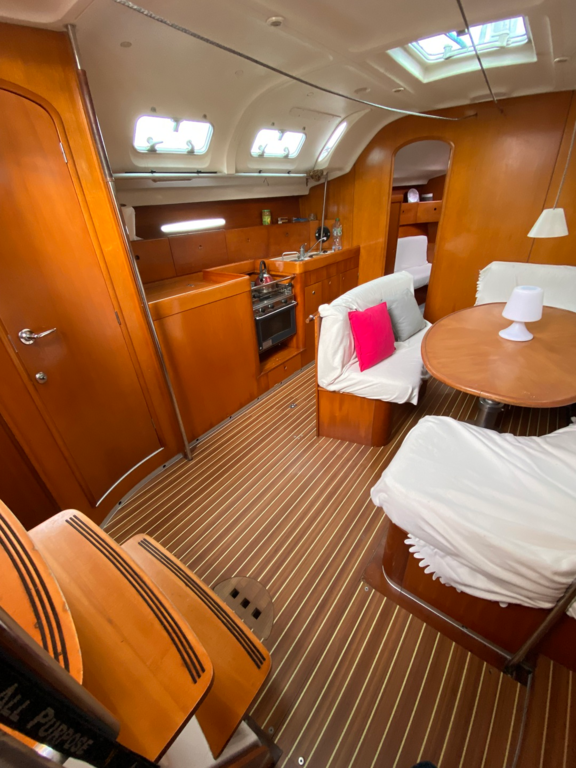 carré très confortable. Equipé d’un moteur de 50 cv. Jeu de voiles complet avec GV, artimon, génois et spi. Electronique complète avec GPS lecteur de cartes, pilote, AIS, PC avec cartographie, vhf,