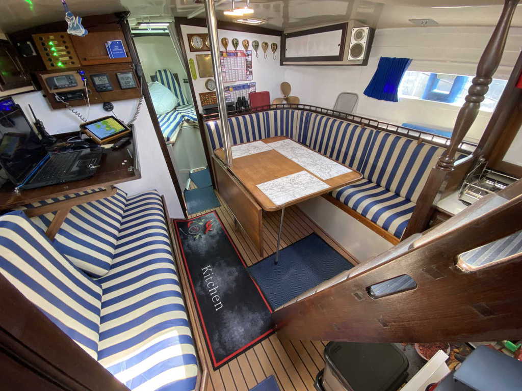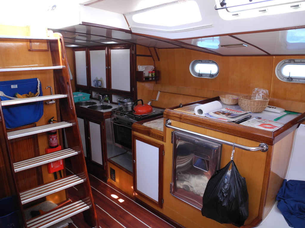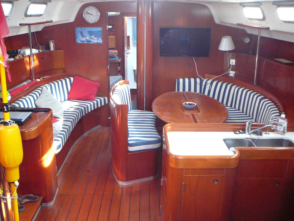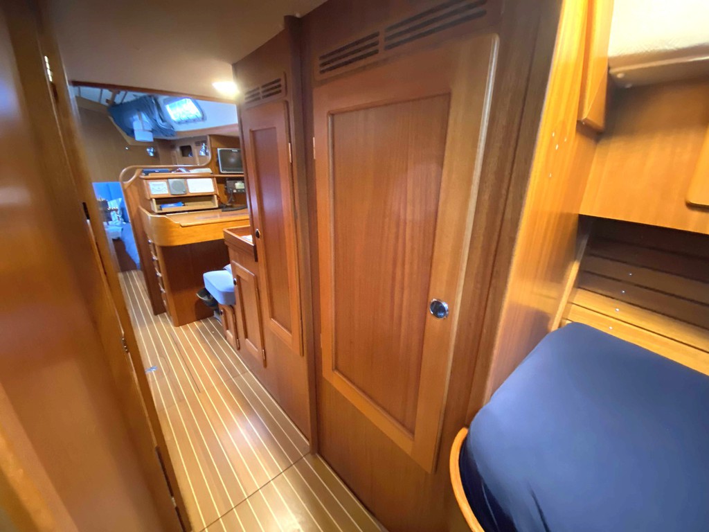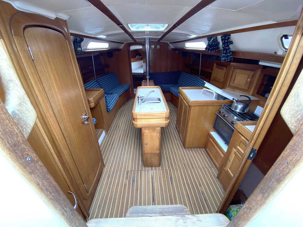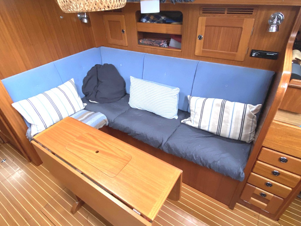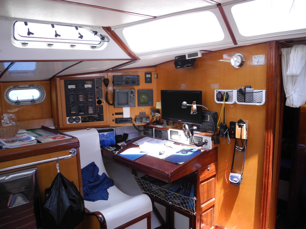 carré très confortable. Equipé d’un moteur de 50 cv. Jeu de voiles complet avec GV, artimon, génois et spi. Electronique complète avec GPS lecteur de cartes, pilote, AIS, PC avec cartographie, vhf,