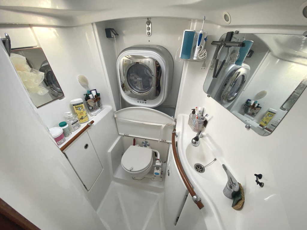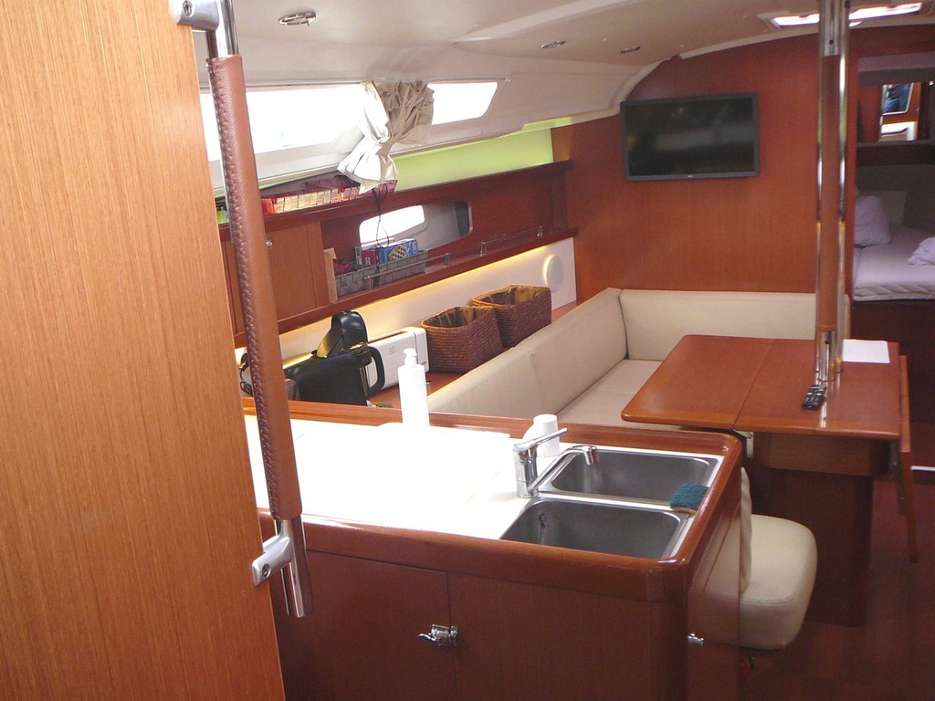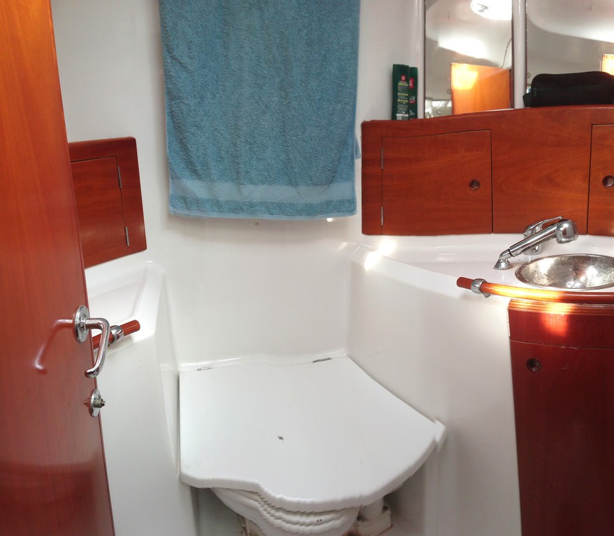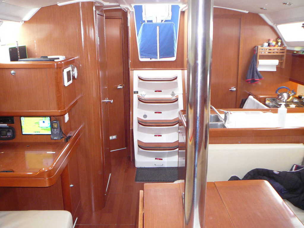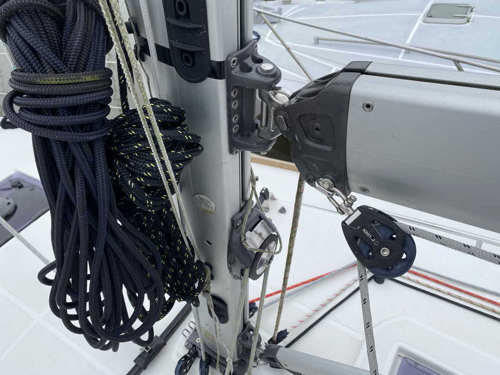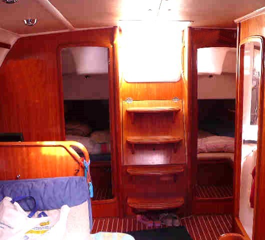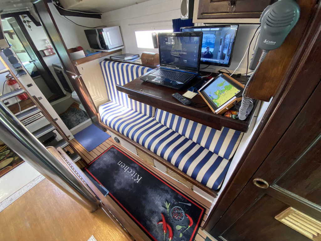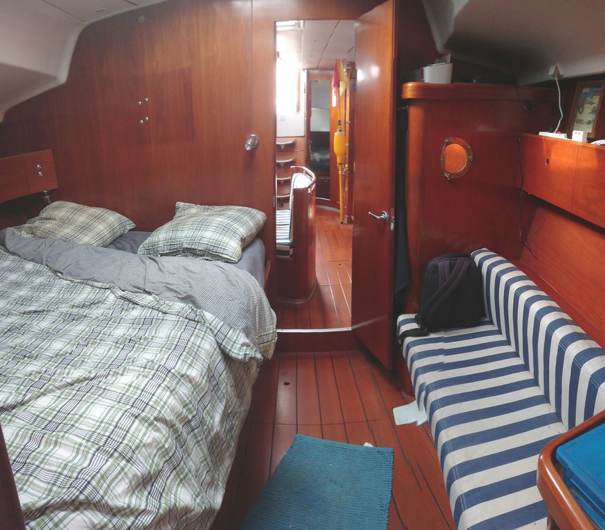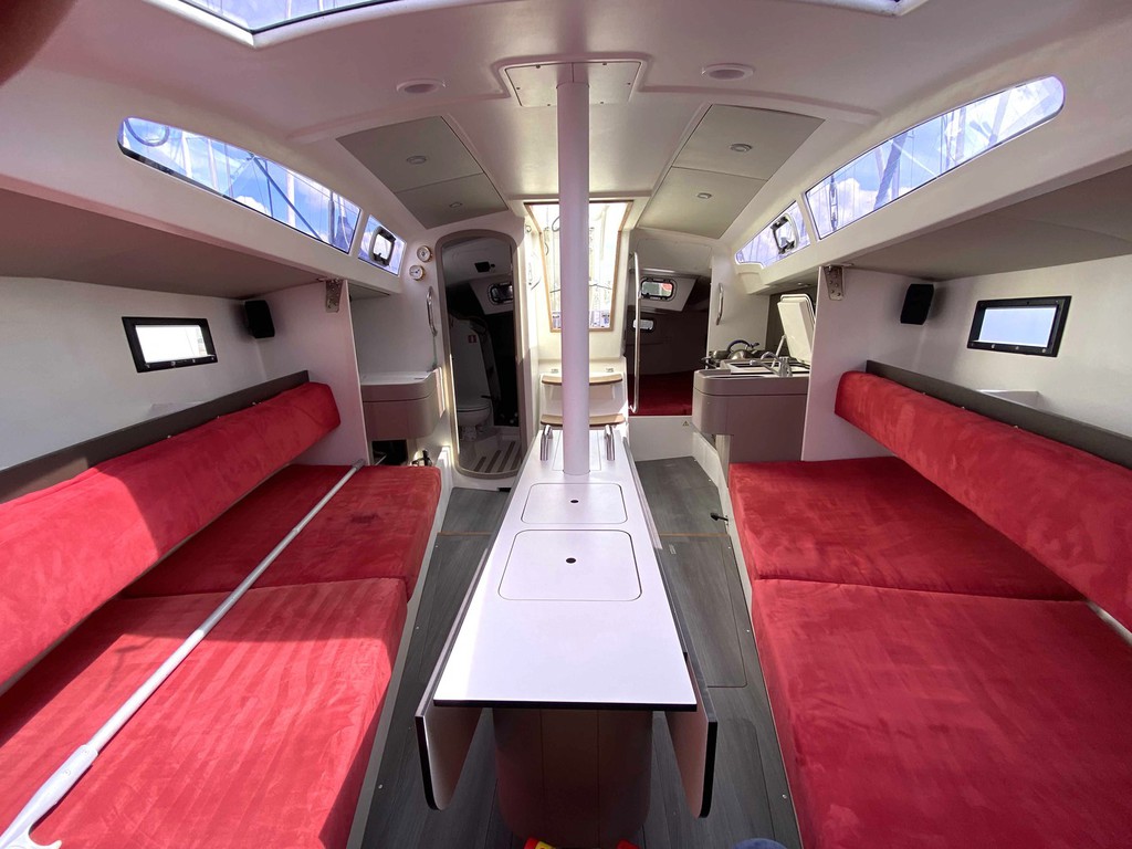 carré très confortable. Equipé d’un moteur de 50 cv. Jeu de voiles complet avec GV, artimon, génois et spi. Electronique complète avec GPS lecteur de cartes, pilote, AIS, PC avec cartographie, vhf,
