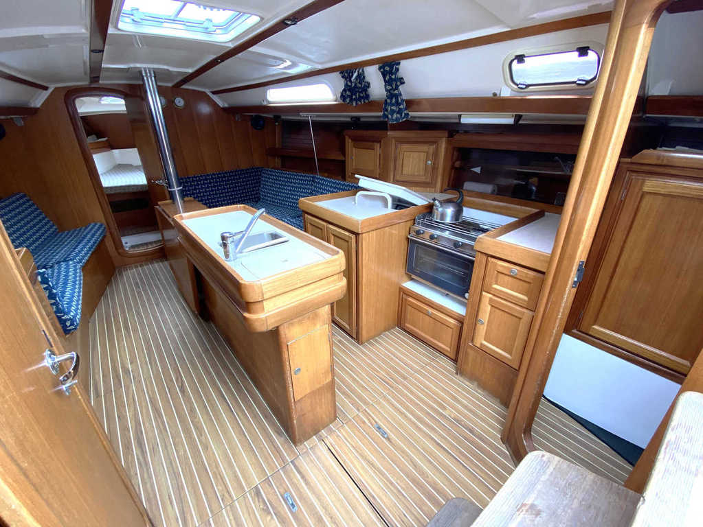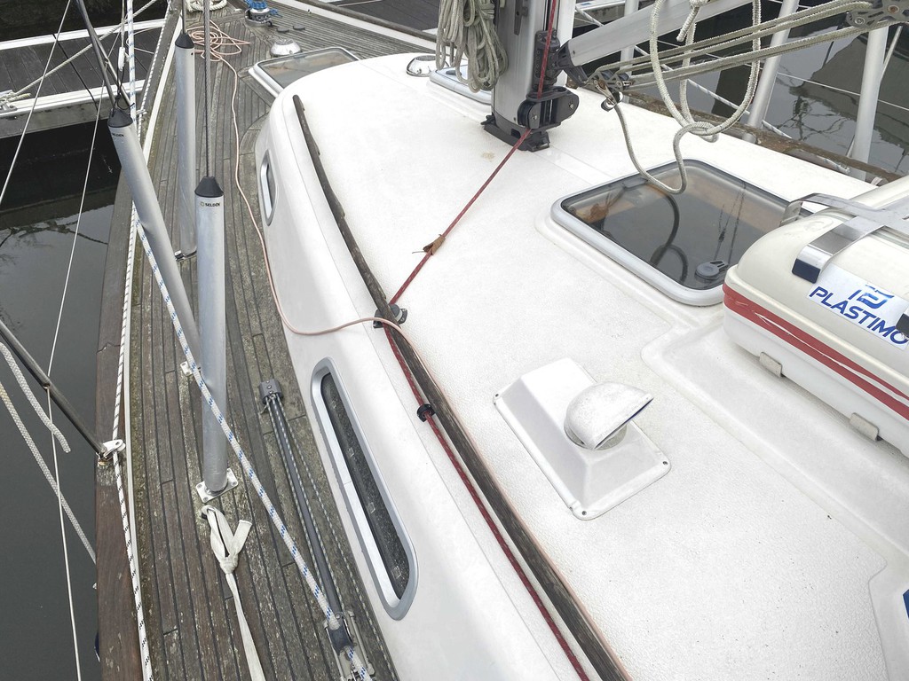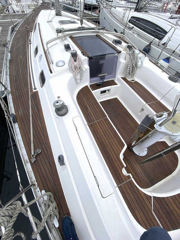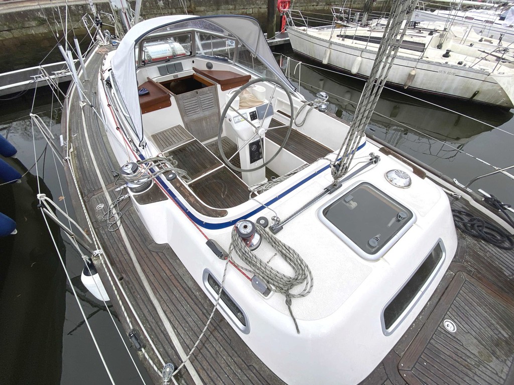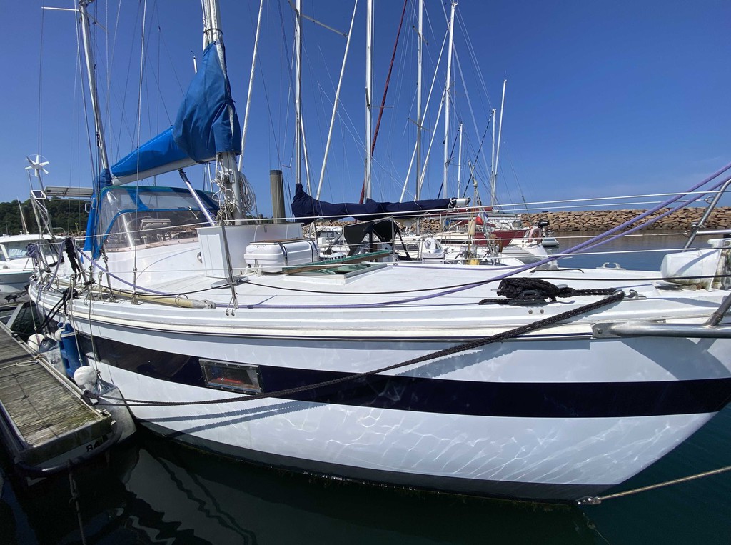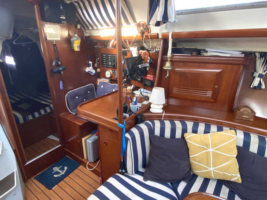 Hallberg Rassy 37. Magnifique voillier à cockpit central. Très belle construction. Etat irréprochable. Bateau très bien équipé avec un moteur Volvo de 55 cv et d’un propulseur d’étrave. Grand voile sur enrouleur électrique, génois enrouleur, gennaker, spi, 3 winchs électriques. Electronique complète Raymarine centrale de nav, VHF, AIS, radar, GPS lecteur de cartes, Navtex. Aménagé avec 2 cabines et un magnifique carré. Superbe cabine de propriétaire à l’arrière. Equipé tout confort avec chauffage à air pulsé. Nombreux équipements groupe électrogène, capote de roof, bimini, taud complet de fermeture, annexe et hors-bord. Pont et cockpit en teck. Bateau en excellent état. Place de port possible Bretagne nord ou sud.