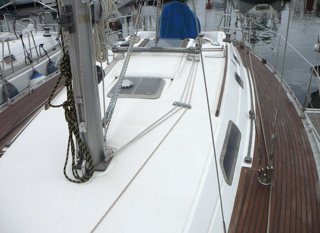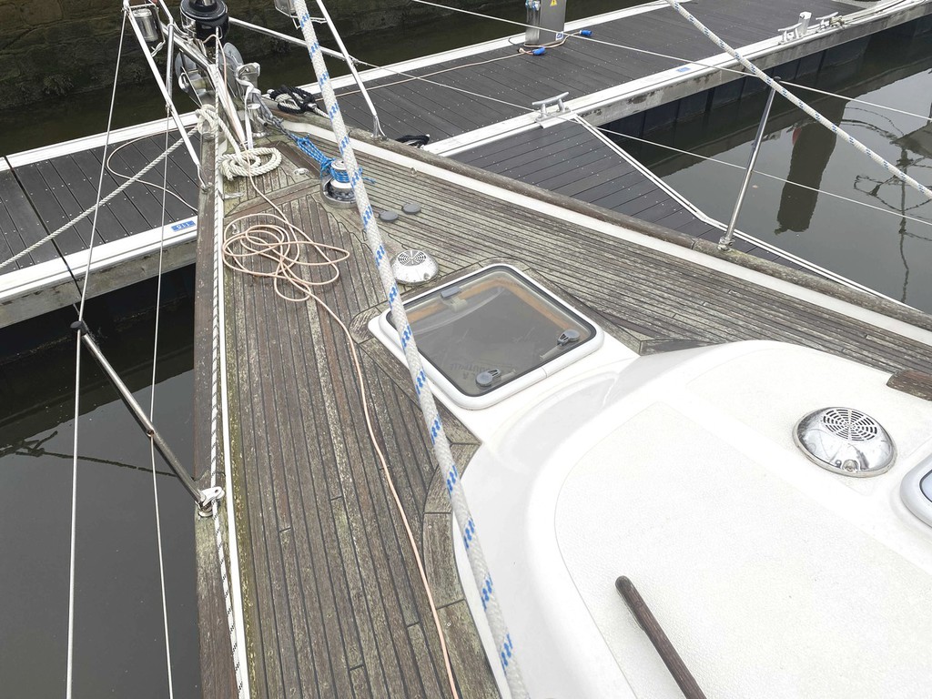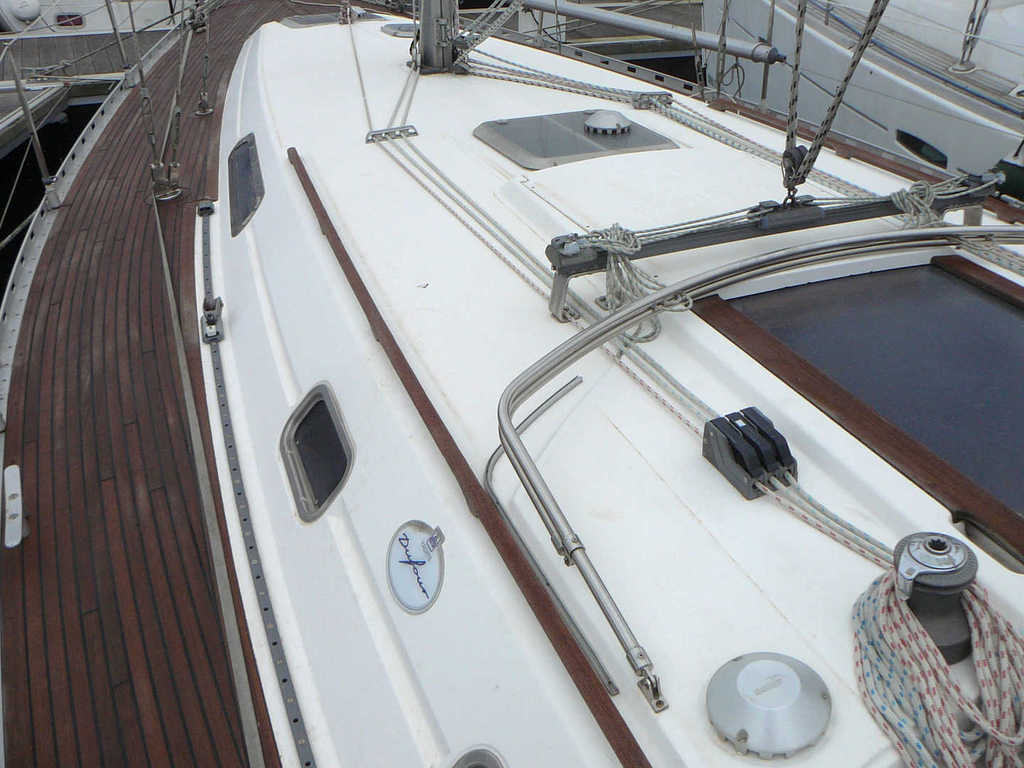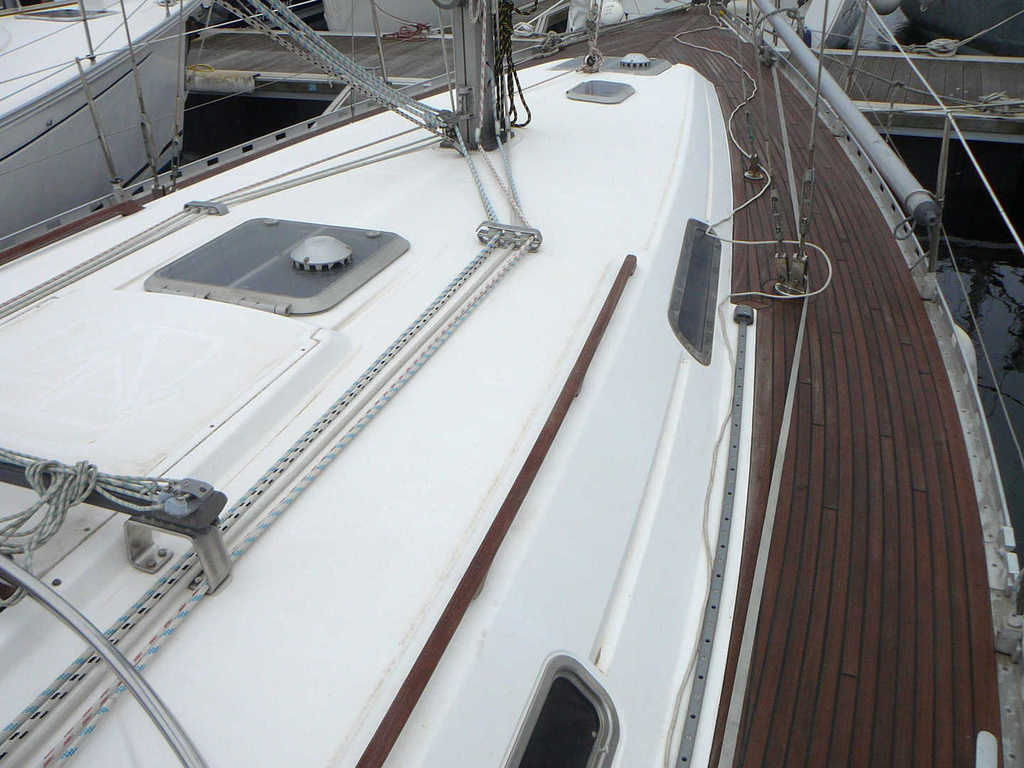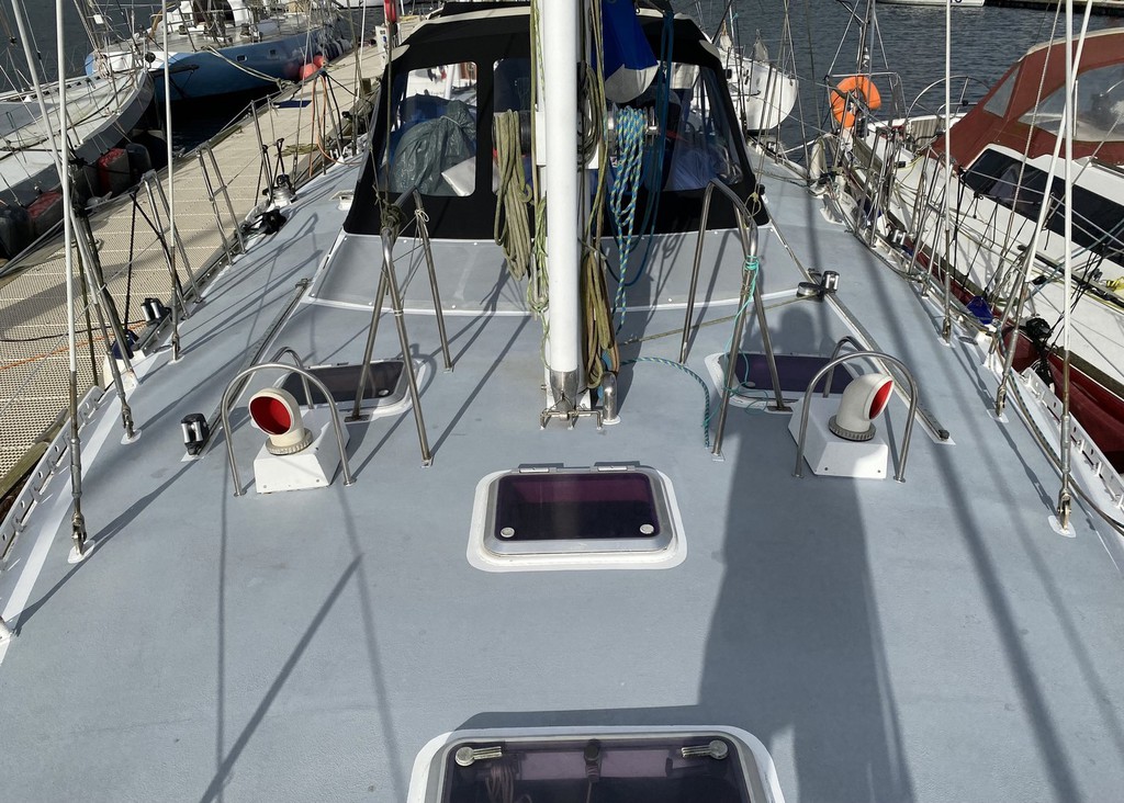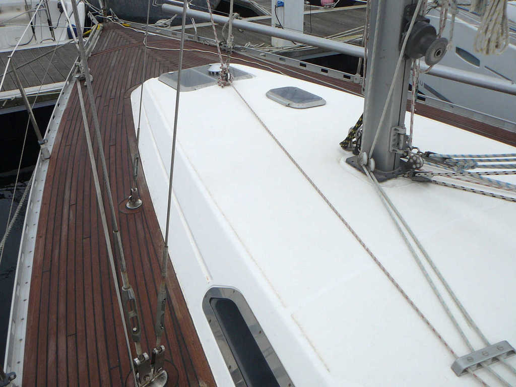 Hallberg Rassy 37. Magnifique voillier à cockpit central. Très belle construction. Etat irréprochable. Bateau très bien équipé avec un moteur Volvo de 55 cv et d’un propulseur d’étrave. Grand voile sur enrouleur électrique, génois enrouleur, gennaker, spi, 3 winchs électriques. Electronique complète Raymarine centrale de nav, VHF, AIS, radar, GPS lecteur de cartes, Navtex. Aménagé avec 2 cabines et un magnifique carré. Superbe cabine de propriétaire à l’arrière. Equipé tout confort avec chauffage à air pulsé. Nombreux équipements groupe électrogène, capote de roof, bimini, taud complet de fermeture, annexe et hors-bord. Pont et cockpit en teck. Bateau en excellent état. Place de port possible Bretagne nord ou sud.