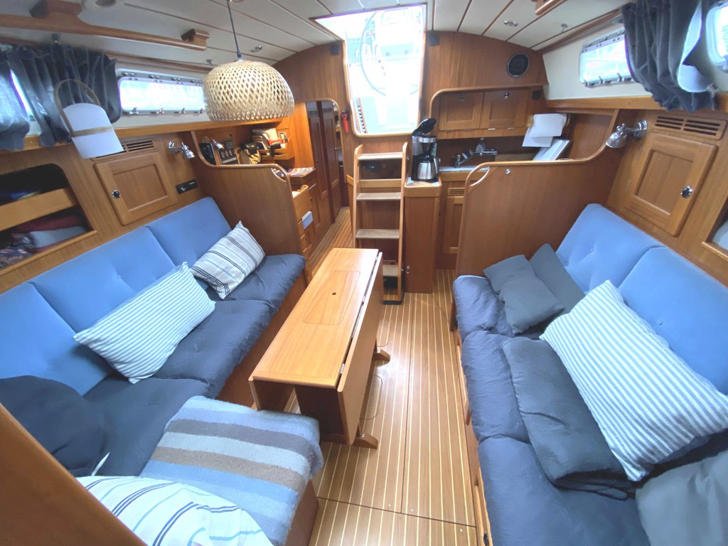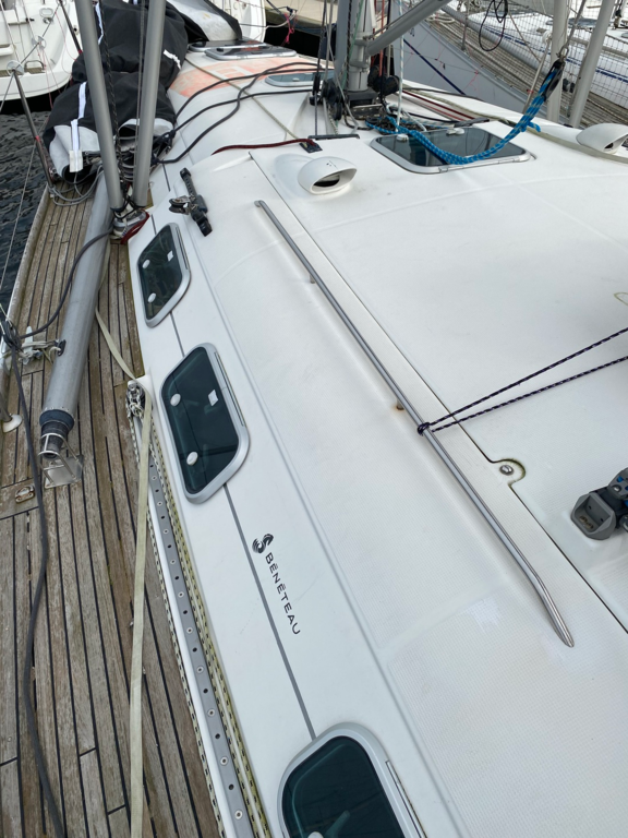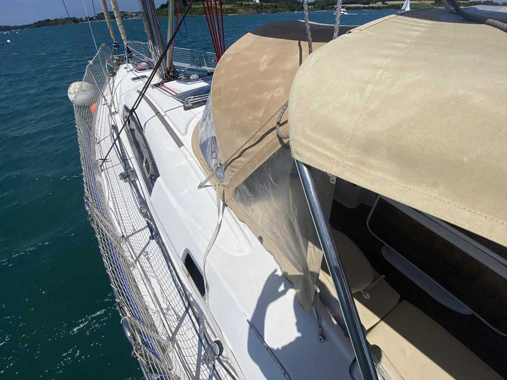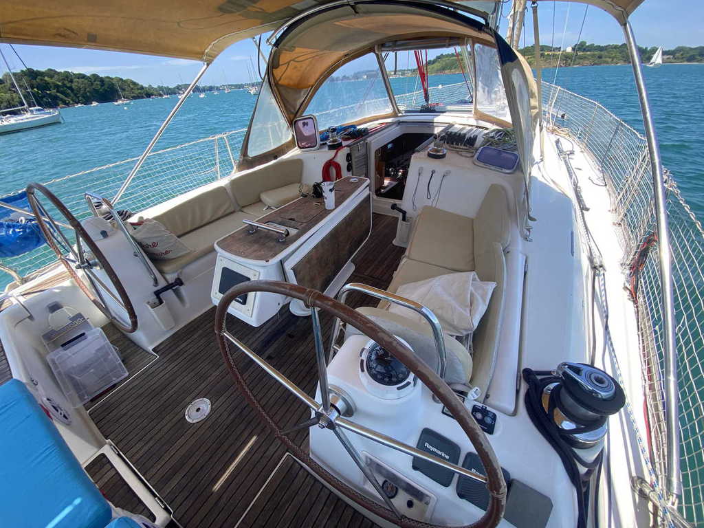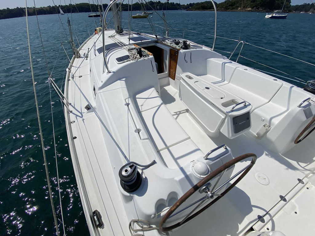 Bénéteau Océanis 430. Bateau d'occasion visible en Bretagne. Bateau très bien équipé, bien entretenu et très propre. Aménagé avec 3 cabines doubles et 2 cabines de toilette. Equipé d’un moteur de 48 cv. Electronique complète. GV enrouleur , génois enrouleur et gennaker sur emmagasineur. Bien équipé avec panneaux solaire, éolienne, antenne Starlink, capote de roof, bimini, chauffage air pulsé, annexe et HB. Bateau prêt à naviguer.