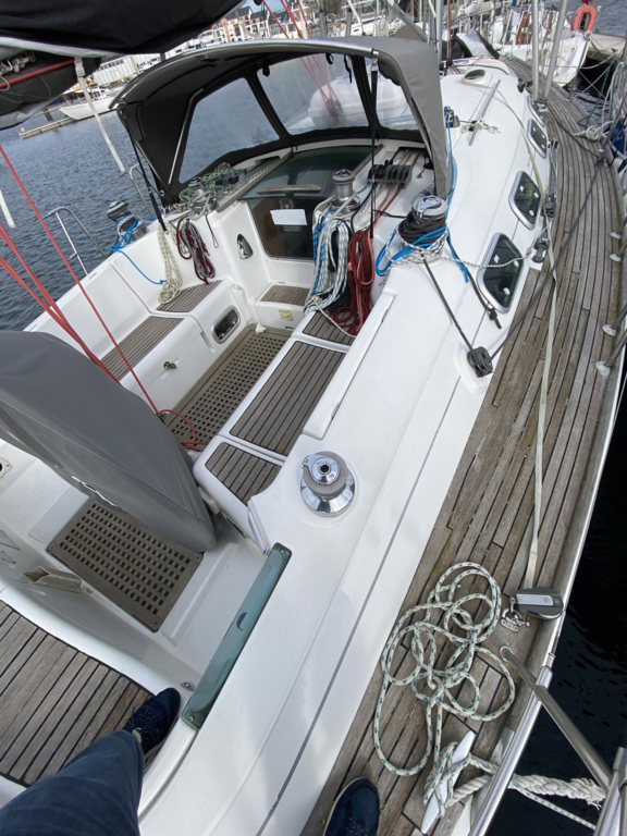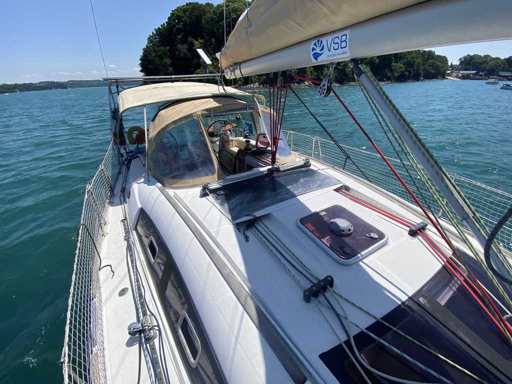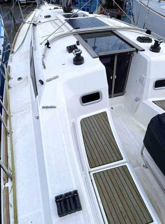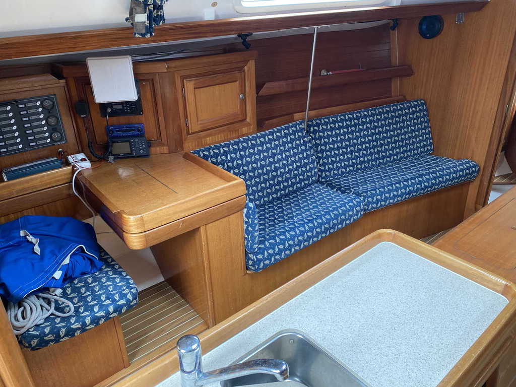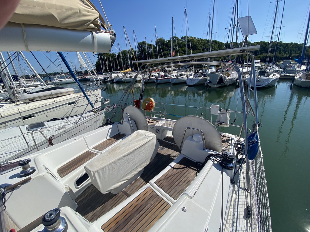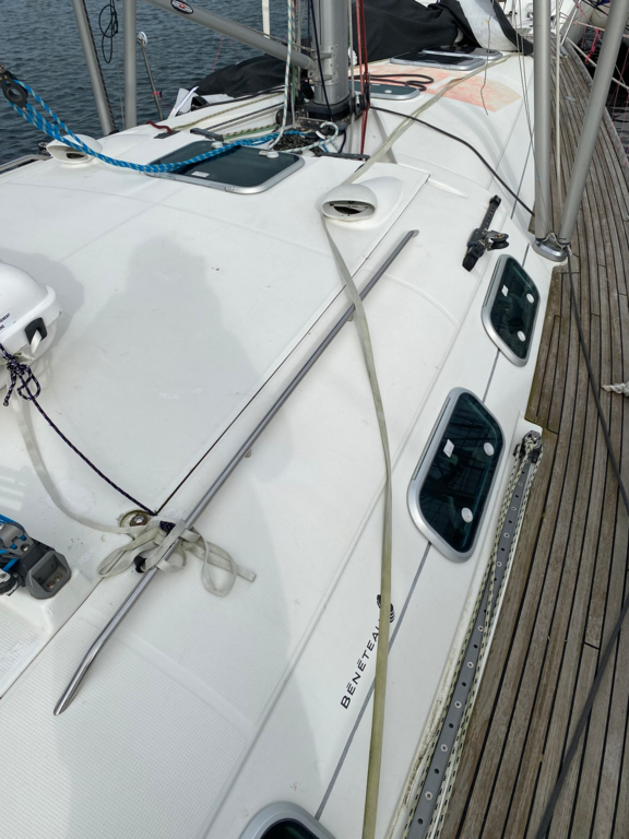 Bénéteau Océanis 430. Bateau d'occasion visible en Bretagne. Bateau très bien équipé, bien entretenu et très propre. Aménagé avec 3 cabines doubles et 2 cabines de toilette. Equipé d’un moteur de 48 cv. Electronique complète. GV enrouleur , génois enrouleur et gennaker sur emmagasineur. Bien équipé avec panneaux solaire, éolienne, antenne Starlink, capote de roof, bimini, chauffage air pulsé, annexe et HB. Bateau prêt à naviguer.