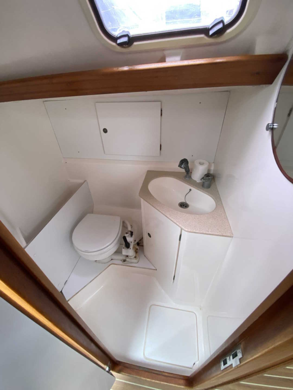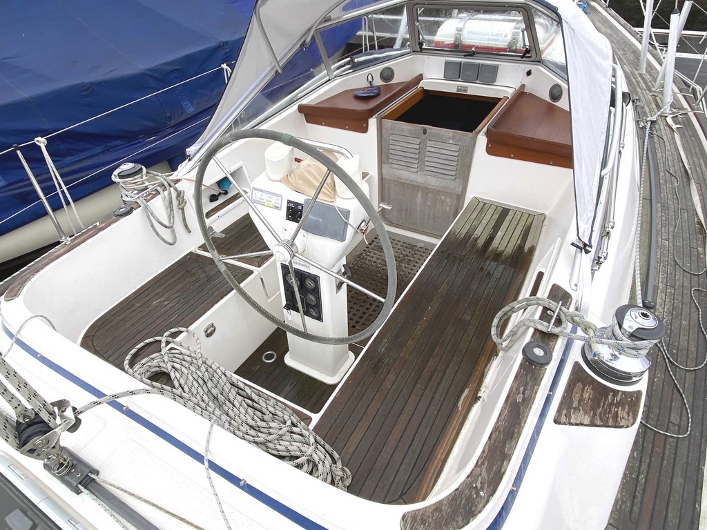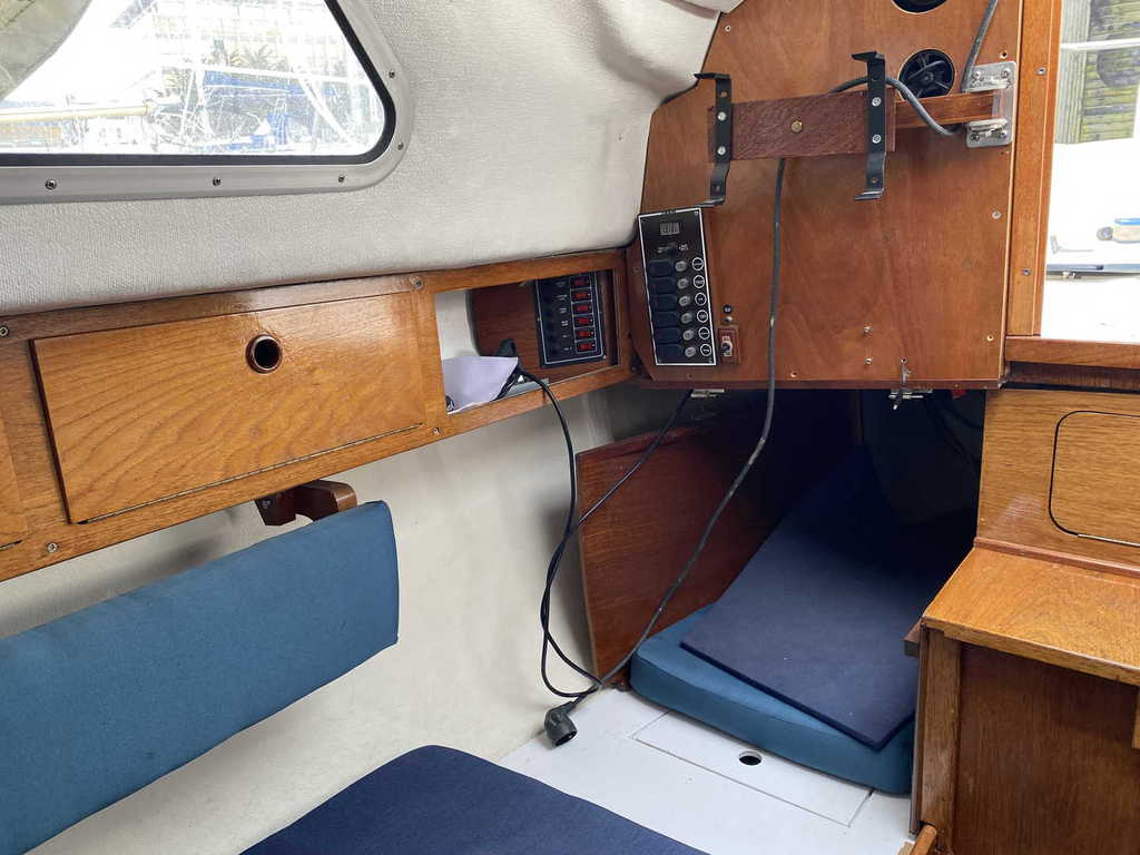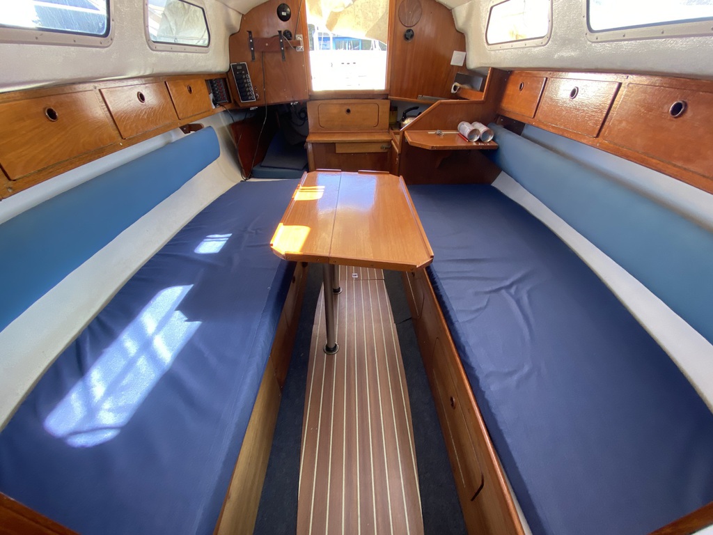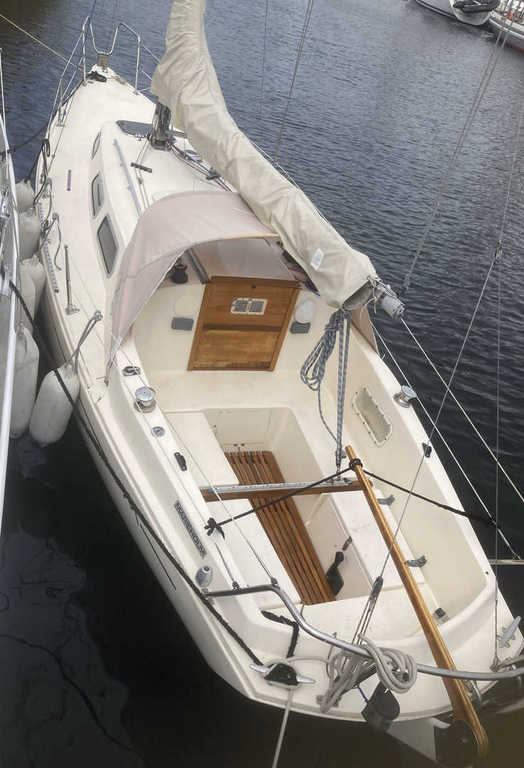 Marieholm 26 Folkboat. Voilier au style classique et à quille longue.Voilier type Folkboat. Equipé d’un moteur inboard récent. Equipement électronique Raymarine loch, speedo, sondeur, anémomètre, GPS lecteur de cartes Axiom 9, pilote. GV semi lattée, génois et foc, grément dormant de 2023, capote de roof. Bateau parfaitement entretenu.