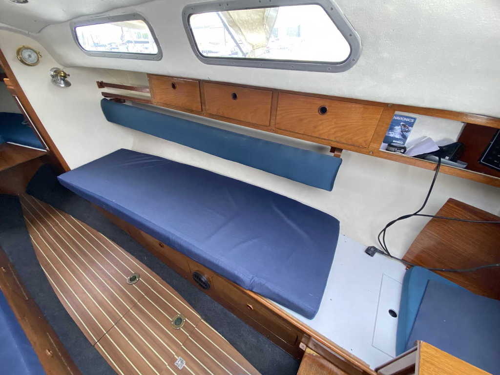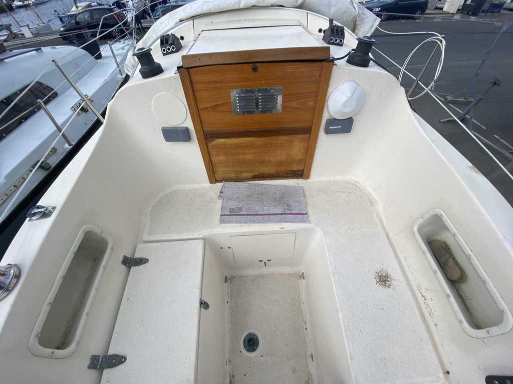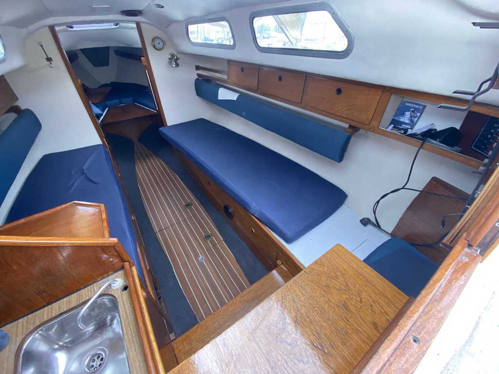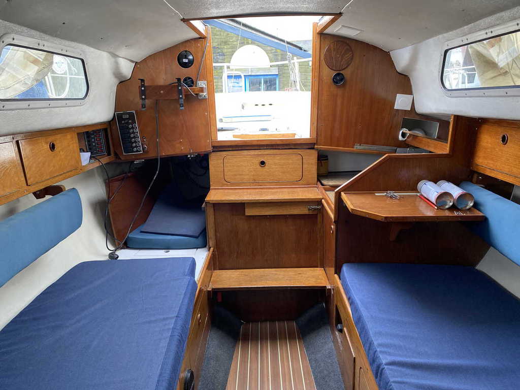 Marieholm 26 Folkboat. Voilier au style classique et à quille longue.Voilier type Folkboat. Equipé d’un moteur inboard récent. Equipement électronique Raymarine loch, speedo, sondeur, anémomètre, GPS lecteur de cartes Axiom 9, pilote. GV semi lattée, génois et foc, grément dormant de 2023, capote de roof. Bateau parfaitement entretenu.
