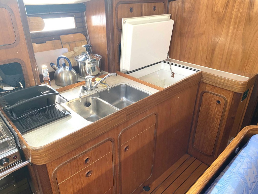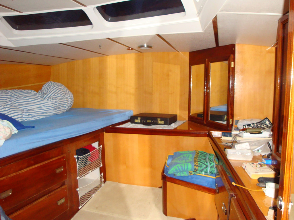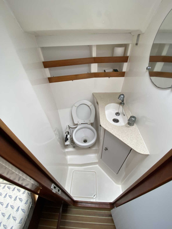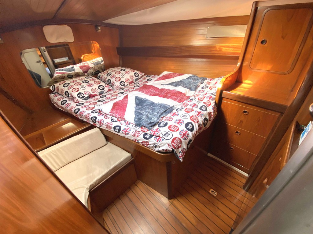 central avec gréement ketch. Voilier très confortable. Aménagé avec une très belle cabine de propriétaire sur l’arrière, une seconde cabine à l’avant, une cabine de toilette à double accès. Un vaste