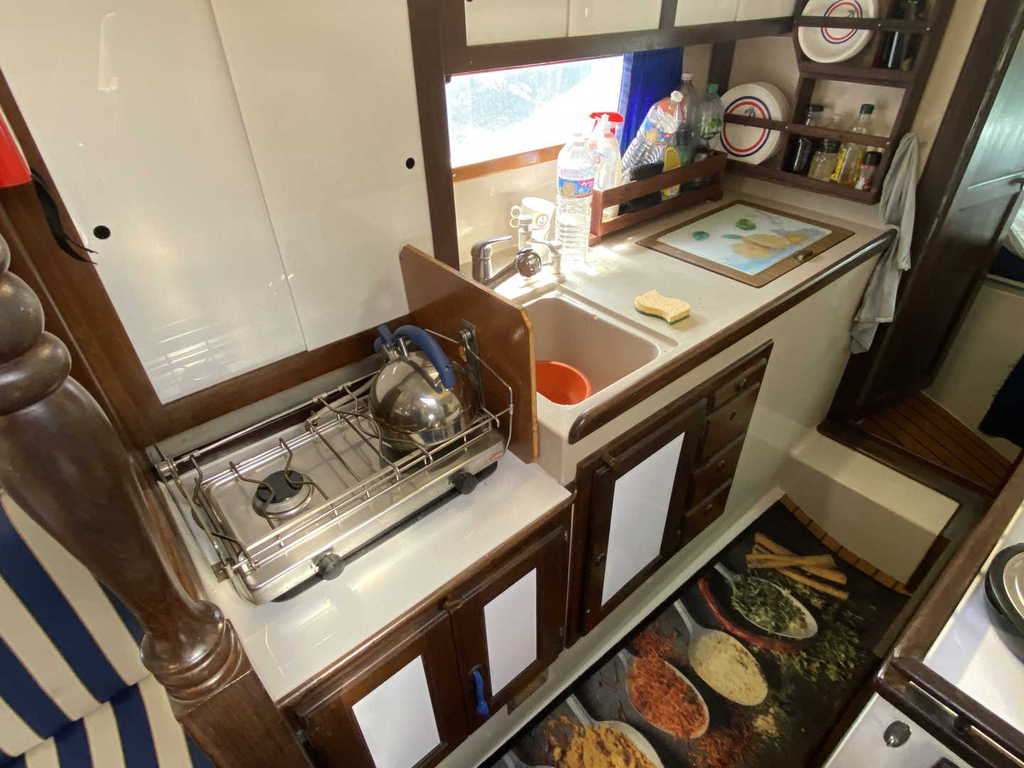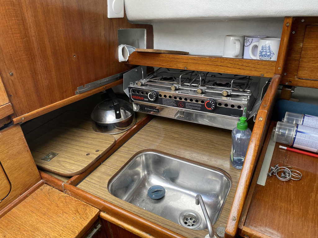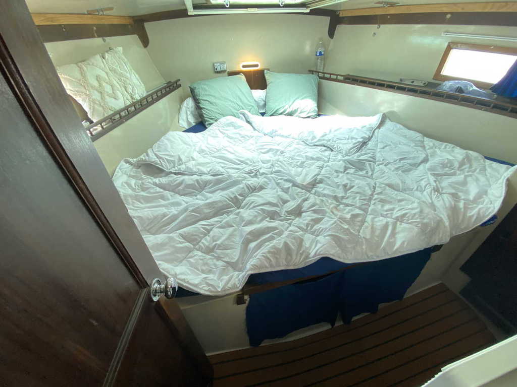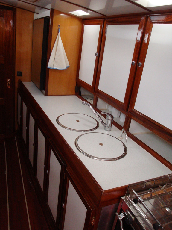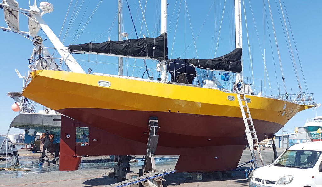 central avec gréement ketch. Voilier très confortable. Aménagé avec une très belle cabine de propriétaire sur l’arrière, une seconde cabine à l’avant, une cabine de toilette à double accès. Un vaste
