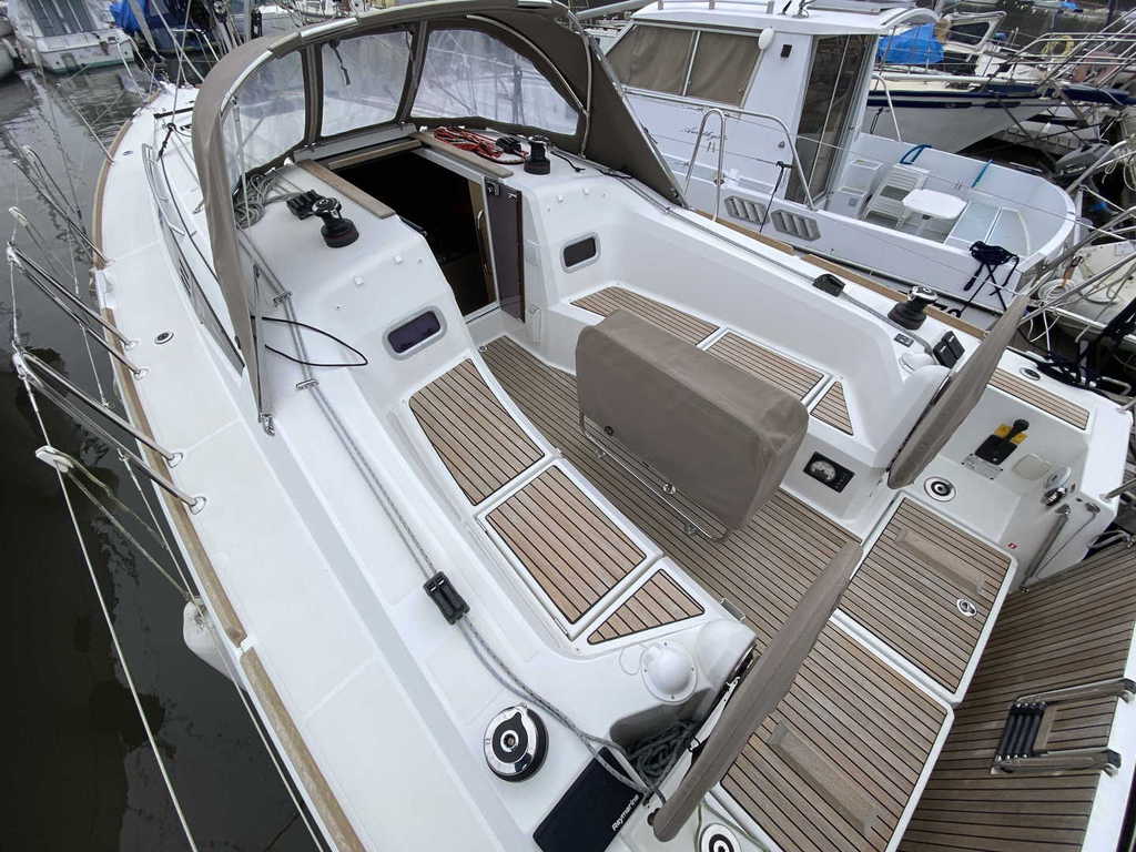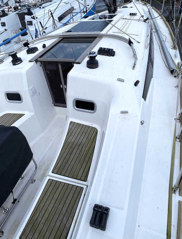 Hanse 320. Bateau état neuf, bateau occasion visible en Bretagne. Superbe voilier, agréable et performant. Première main. Aménagé avec deux cabines. Equipé d’un moteur de 29 cv ayant peu d’heures. Equipements électronique complet et neuf avec deux lecteur de cartes. Jeu de voiles très complet avec spi asymétrique, gennaker sur emmagasineur. Bateau très bien équipé avec annexe et hb, capote de roof, pont en teck. Bateau entretenu de façon irréprochable, à voir absolument…