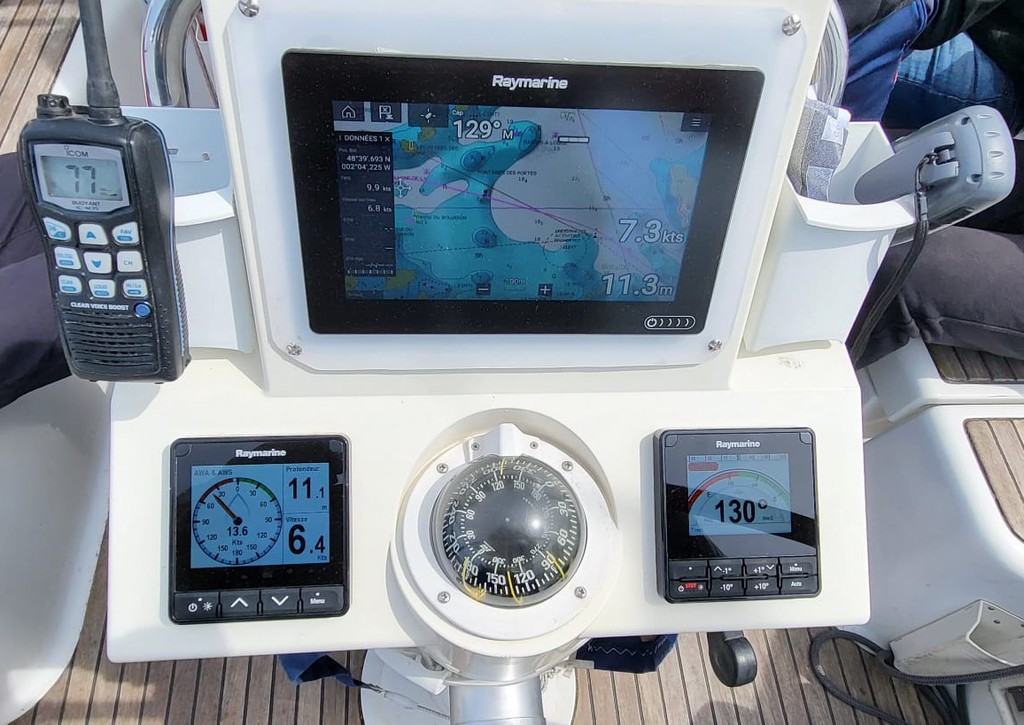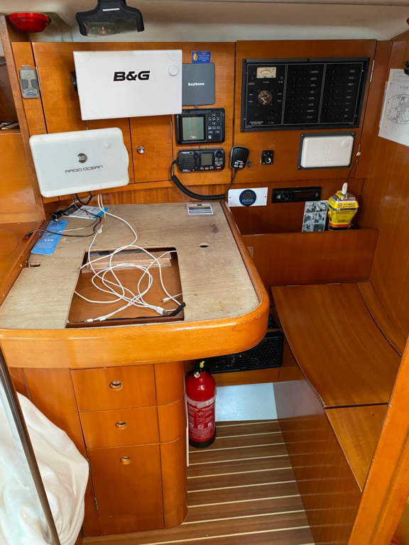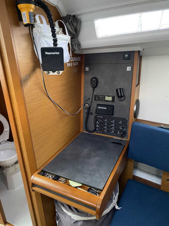 B&G, pilote inbord, GPS lecteur de cartes, AIS, VHF. Jeu de voiles complet avec spi asymétrique, trinquette sur étai largable. Annexe et HB. Bossoirs pour annexe.Panneau solaire, éolienne.