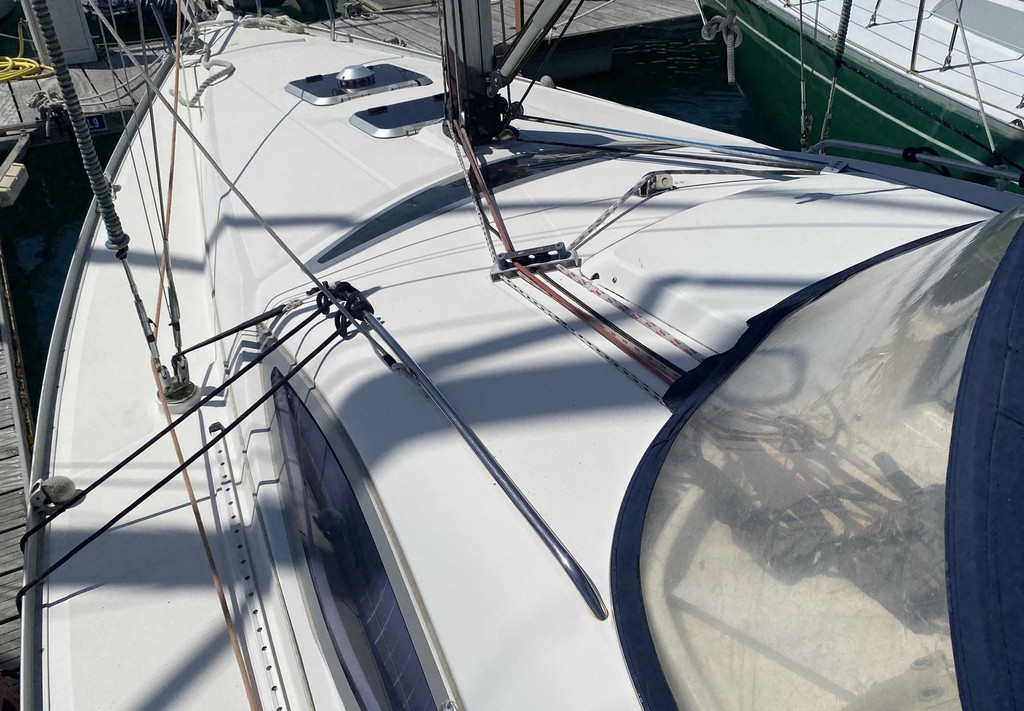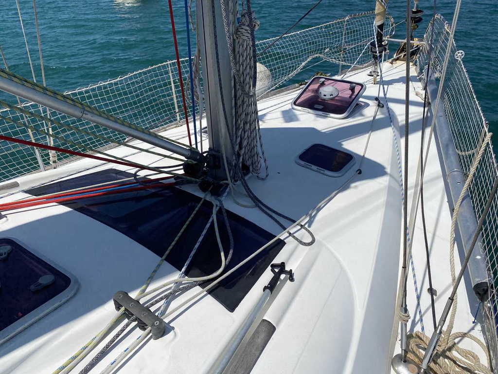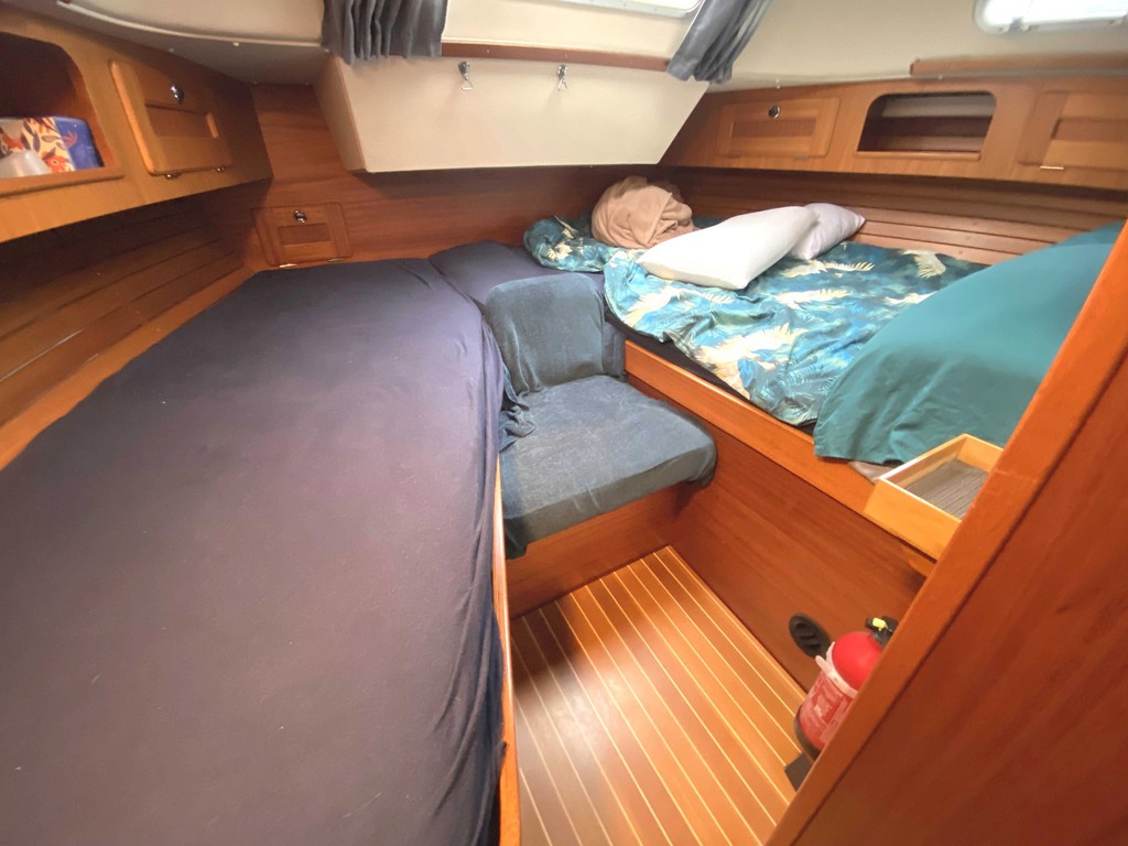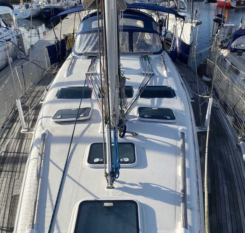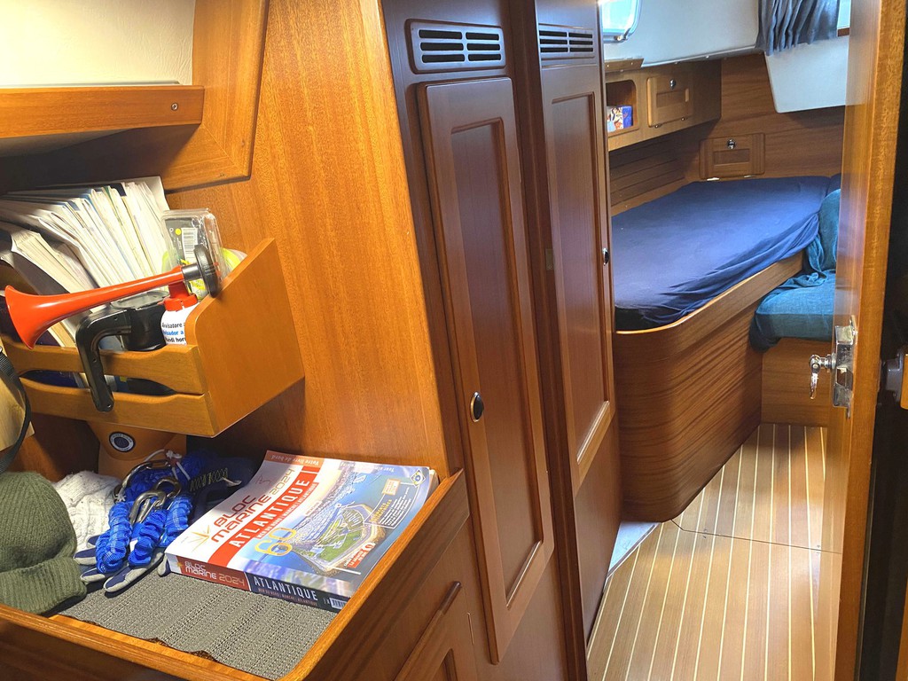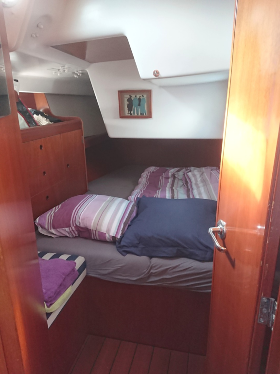 Bénéteau Océanis 40 de 2009 équipé grand voyage. Version 3 cabines et 2 cabines de toilette. Equipé d’un moteur de 40 cv et d’un propulseur d’étrave. Jeu de voiles complet avec GV, génois enrouleur, trinquette sur enrouleur, spi asymétrique. La GV et génois sont neuves de 2024. Electronique Raymarine complète avec lecteur de cartes, radar, pilote, AIS, antenne Starlink. Complètement autonome en électricité avec 680 W de panneaux solaire, hydro générateur. Tout confort avec eau chaude sous pression, wc électrique, capote de descente , bimini. Bien équipé avec portique pour panneaux solaire et annexe, déssalinisateur, winch électrique, annexe et hors-bord. Armement hauturier. Inventaire détaillé et photos sur demande.