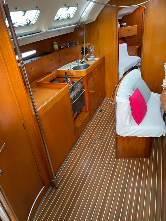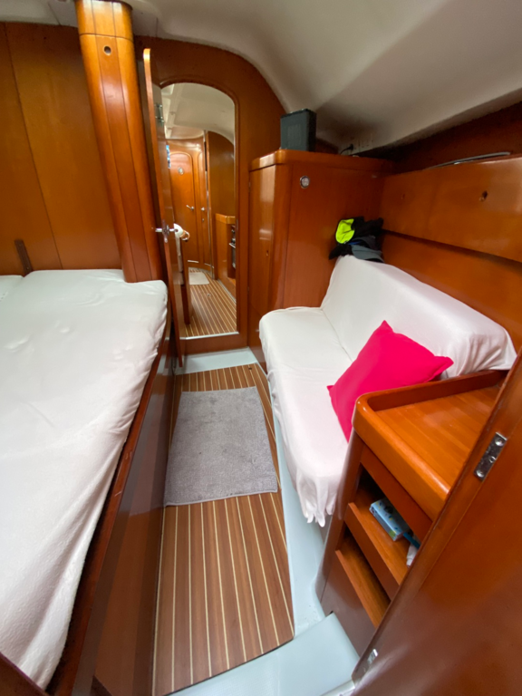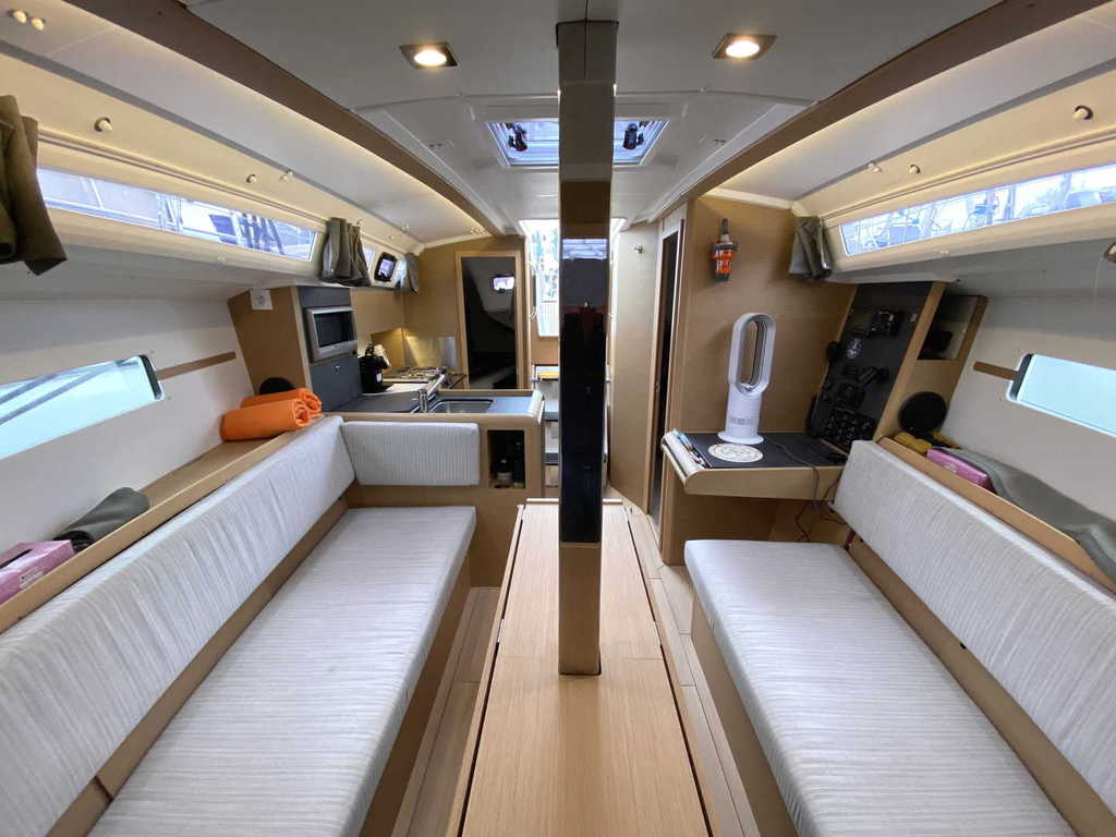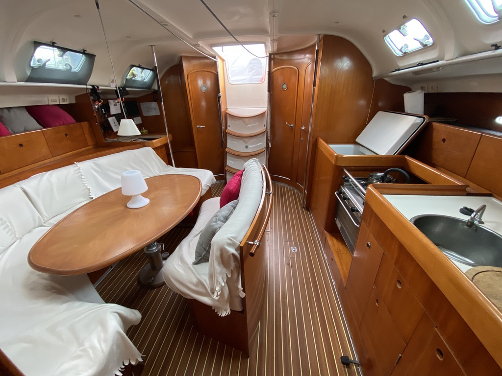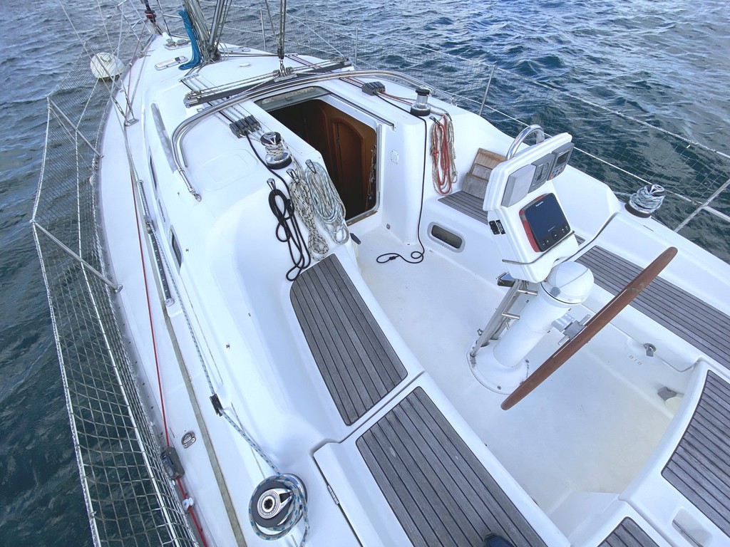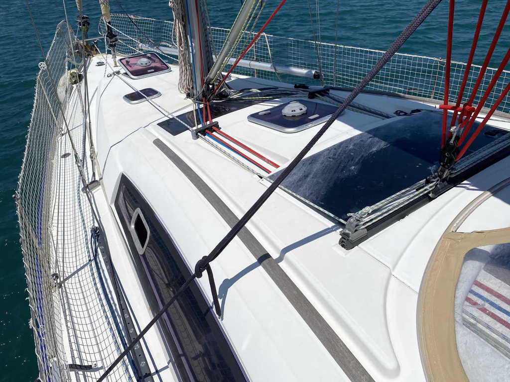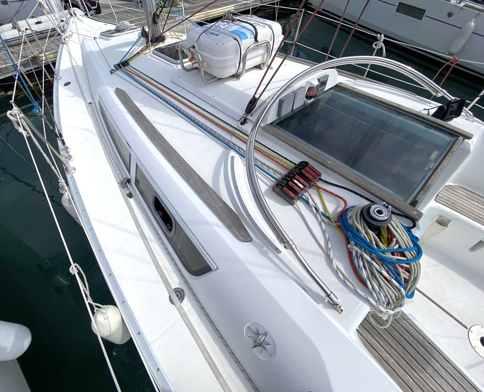 Bénéteau Océanis 40 de 2009 équipé grand voyage. Version 3 cabines et 2 cabines de toilette. Equipé d’un moteur de 40 cv et d’un propulseur d’étrave. Jeu de voiles complet avec GV, génois enrouleur, trinquette sur enrouleur, spi asymétrique. La GV et génois sont neuves de 2024. Electronique Raymarine complète avec lecteur de cartes, radar, pilote, AIS, antenne Starlink. Complètement autonome en électricité avec 680 W de panneaux solaire, hydro générateur. Tout confort avec eau chaude sous pression, wc électrique, capote de descente , bimini. Bien équipé avec portique pour panneaux solaire et annexe, déssalinisateur, winch électrique, annexe et hors-bord. Armement hauturier. Inventaire détaillé et photos sur demande.