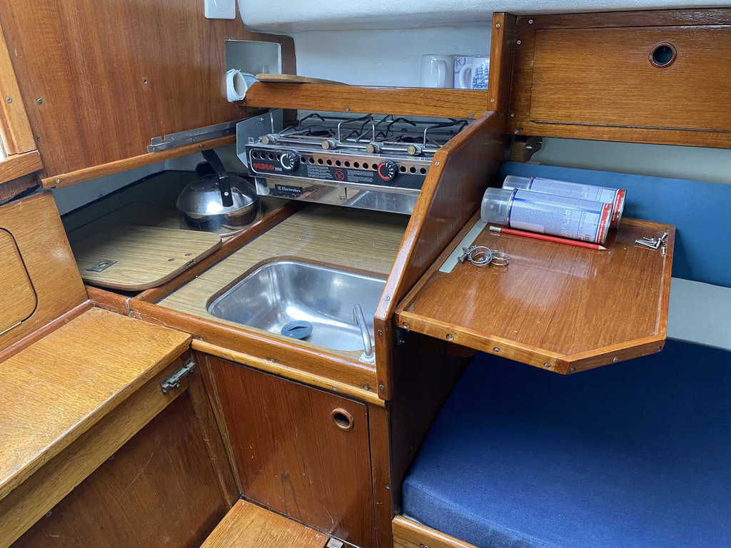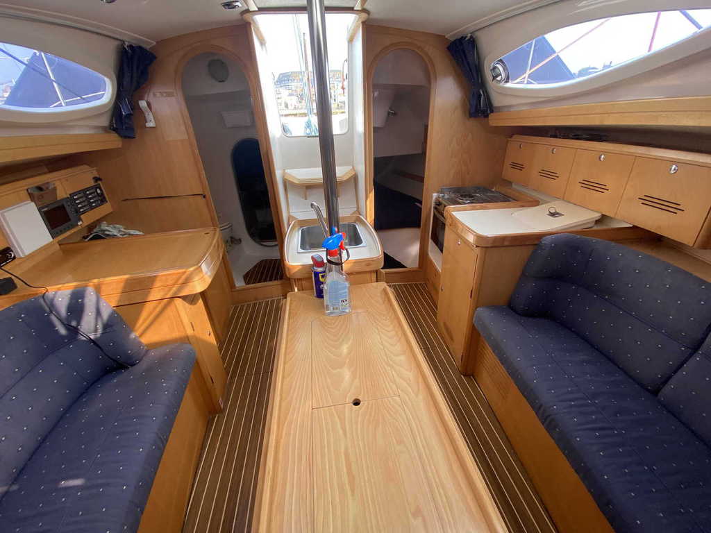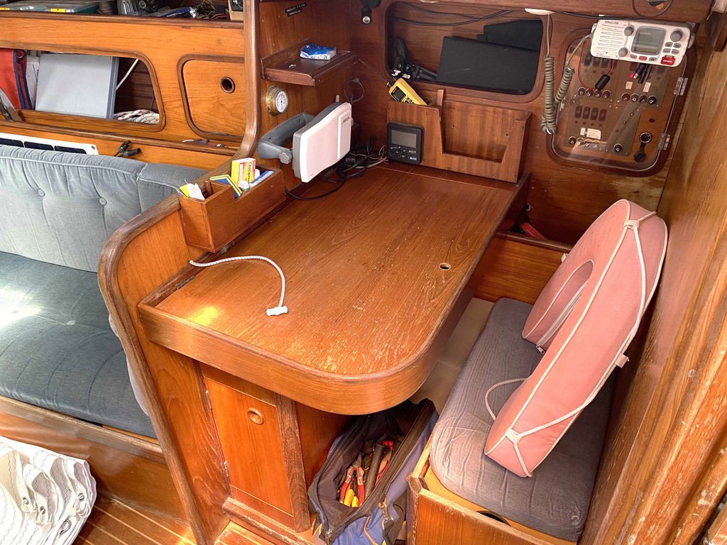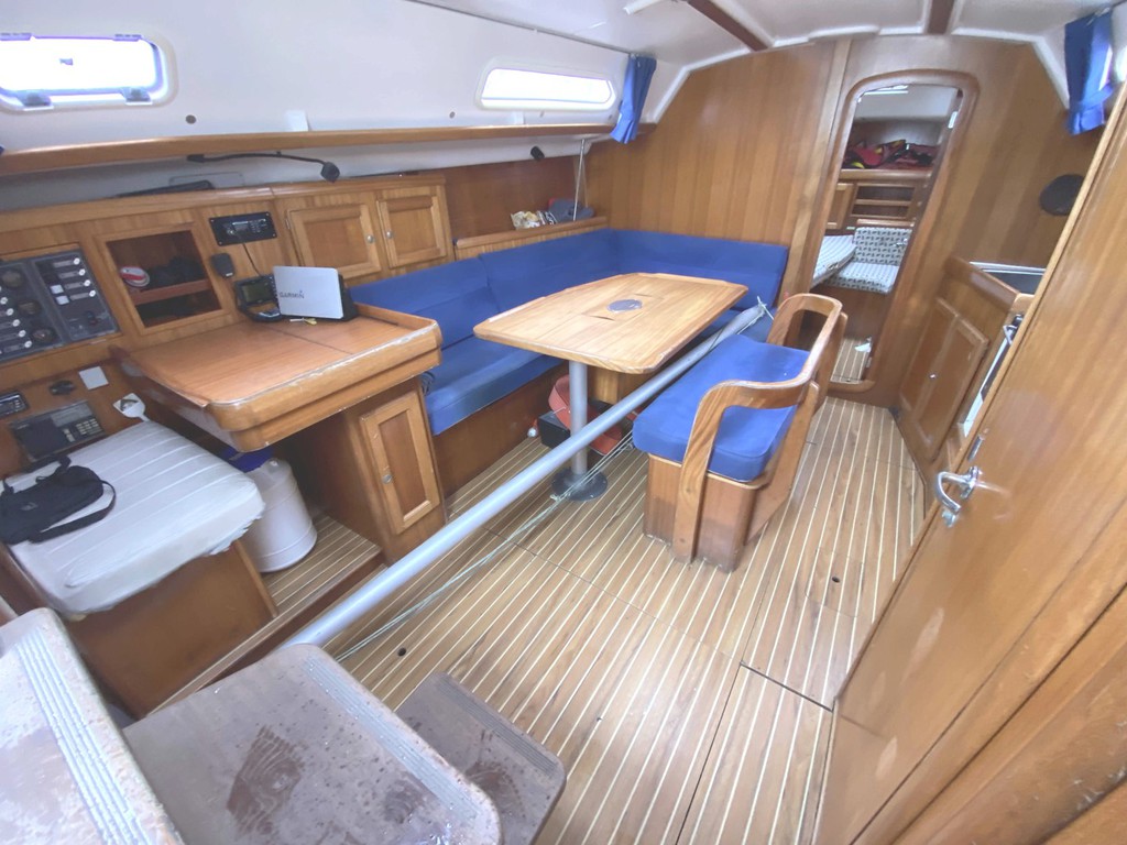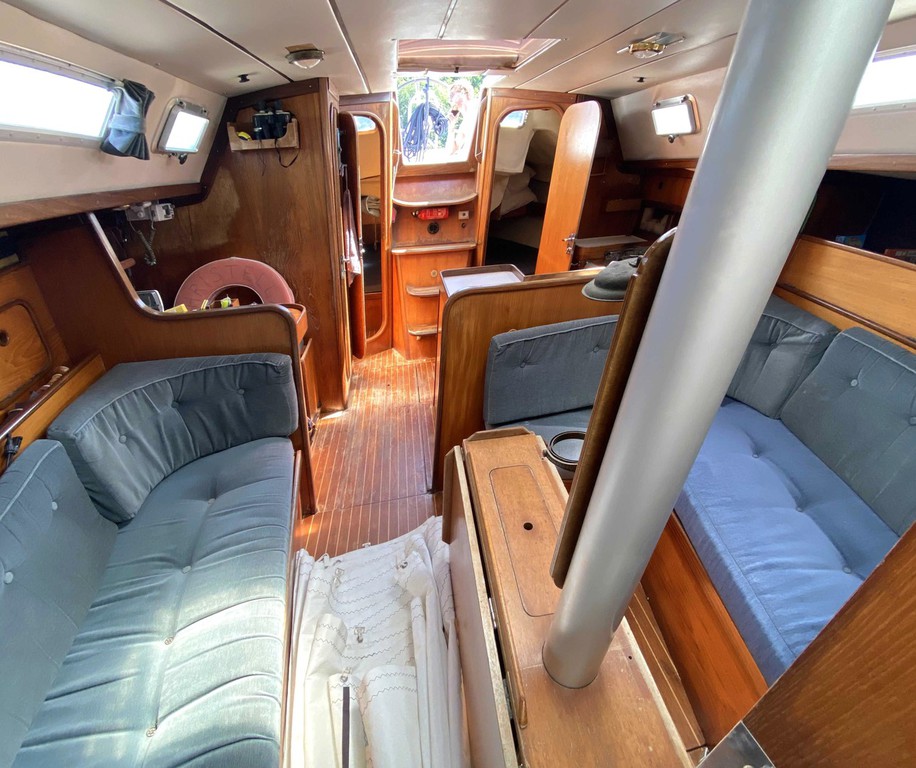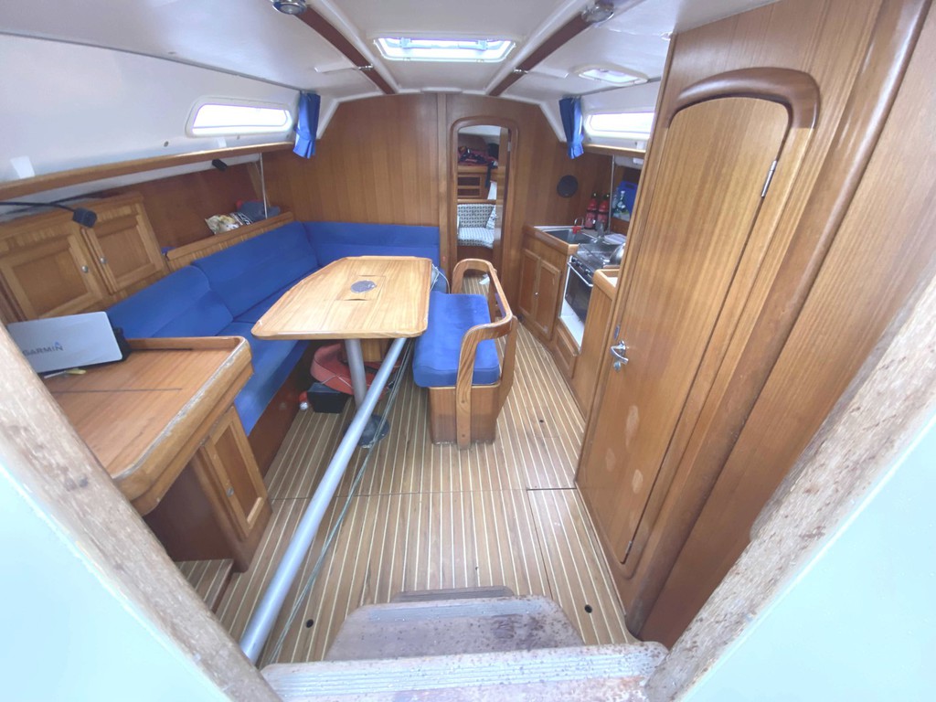 entretenu. Aménagé avec 3 cabines et une cabine de toilette. Equipé d’un moteur Volvo de 40 cv. Jeu de voiles complet et récent avec spi. Electronique Raymarine complète avec lecteur de carte et AIS.