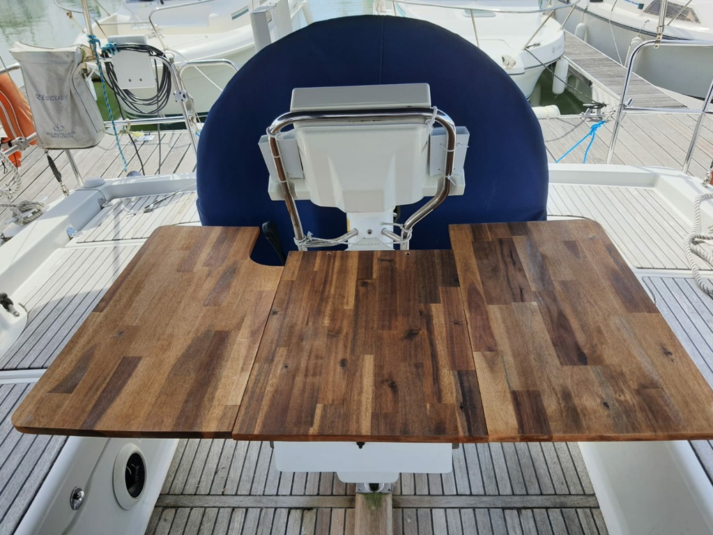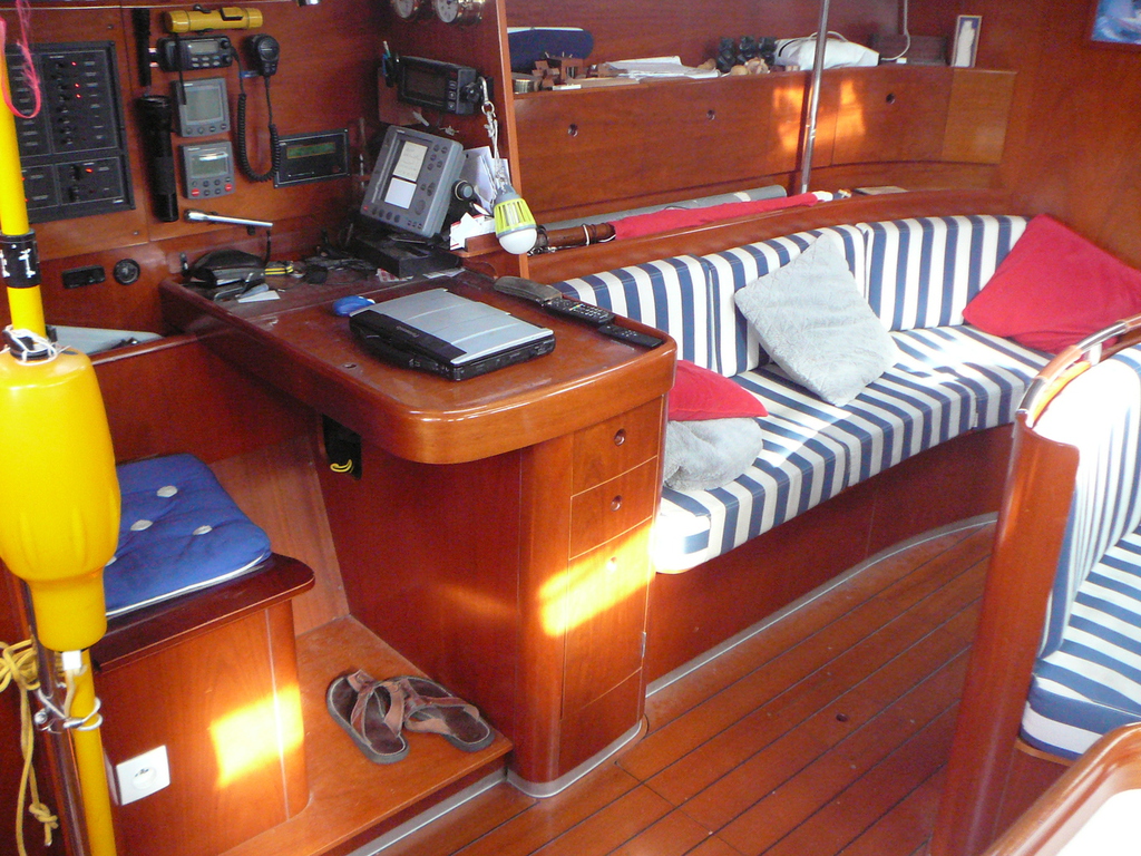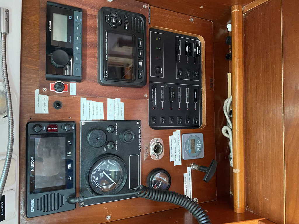 Equipements électronique complet avec GPS, radar, AIS... Jeu de voiles très complet et de qualité. Bateau très bien équipé avec chauffage, capote de roof, pont en teck, propulseur, dessalinisateur,