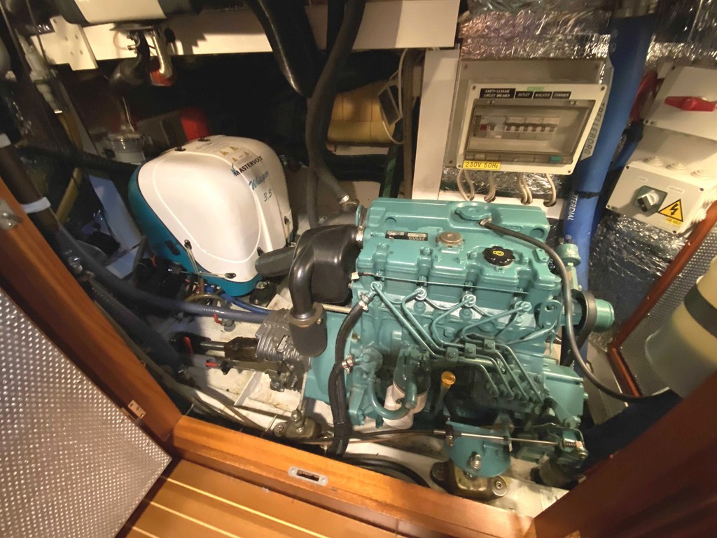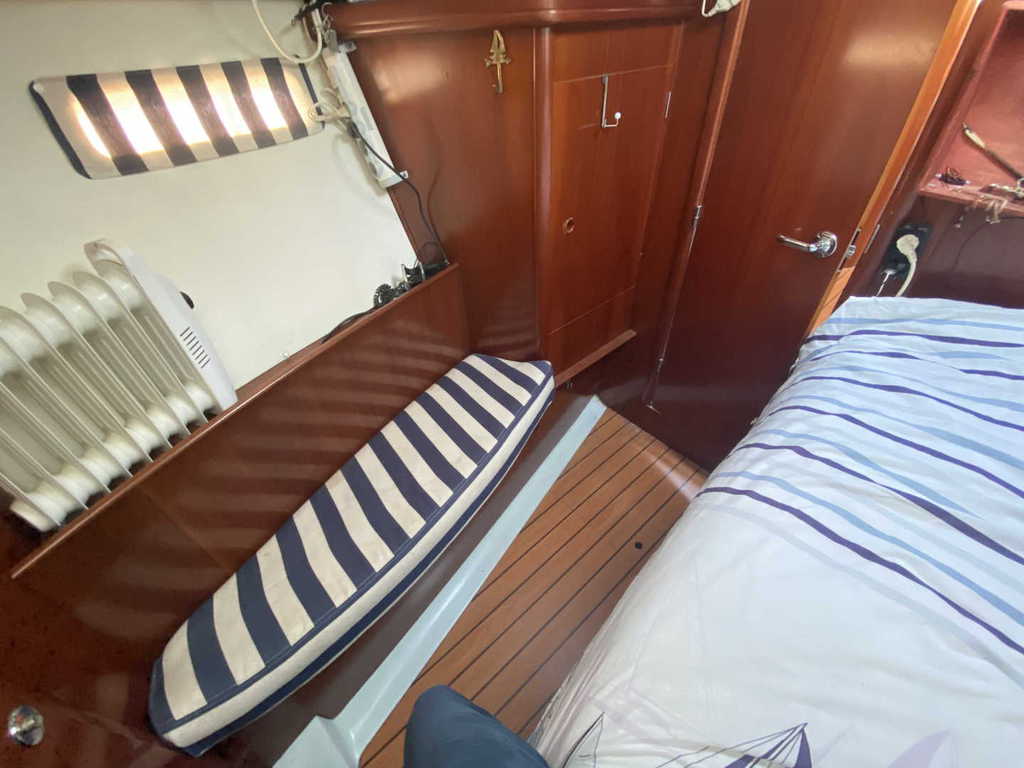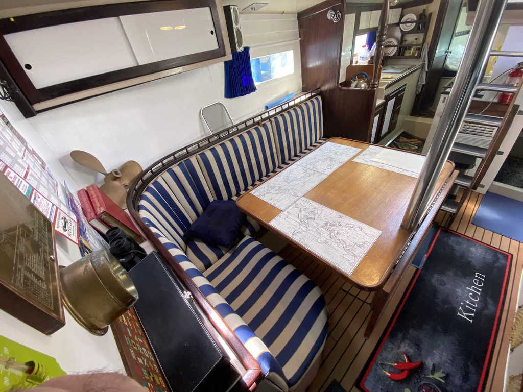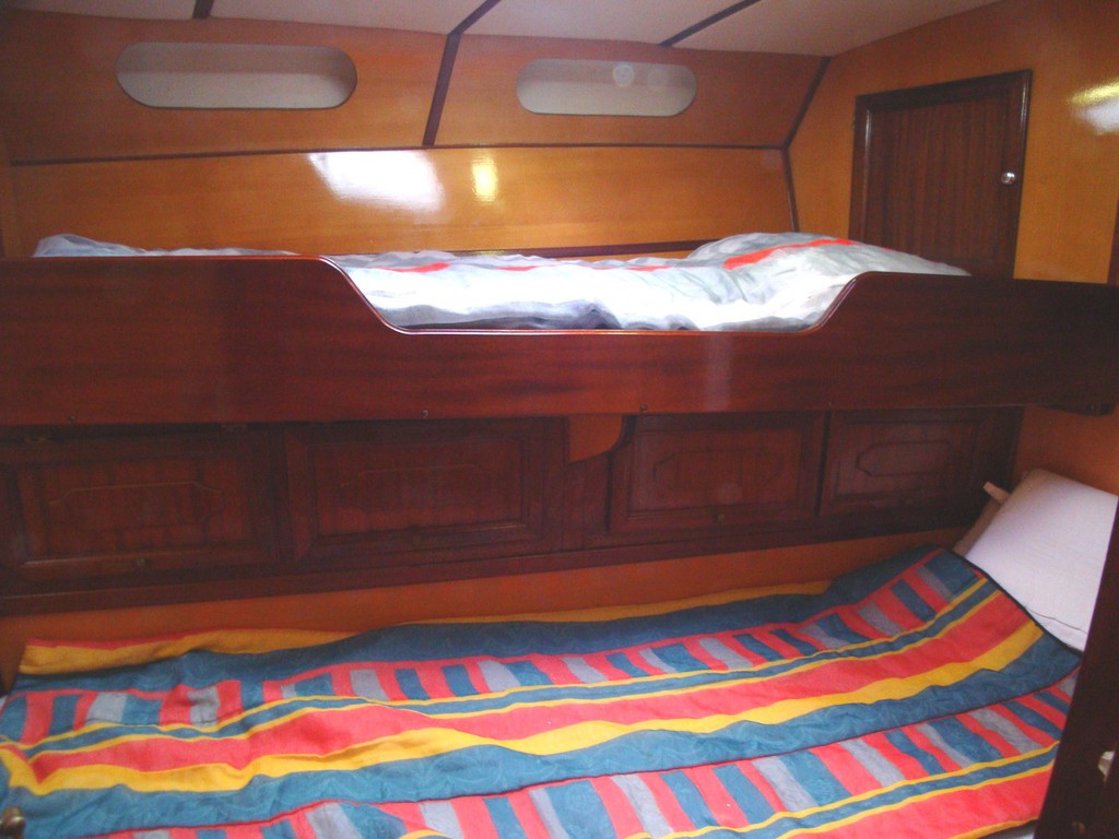 de 55 cv.et d’un propulseur d’étrave. Aménagé avec 3 cabines. Pont en teck. Bateau propre et bien entretenu. Bien équipé avec chauffage, capote de roof et bimini. Electronique complète avec centrale