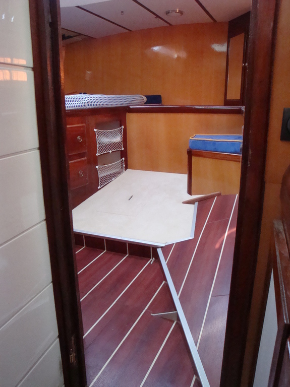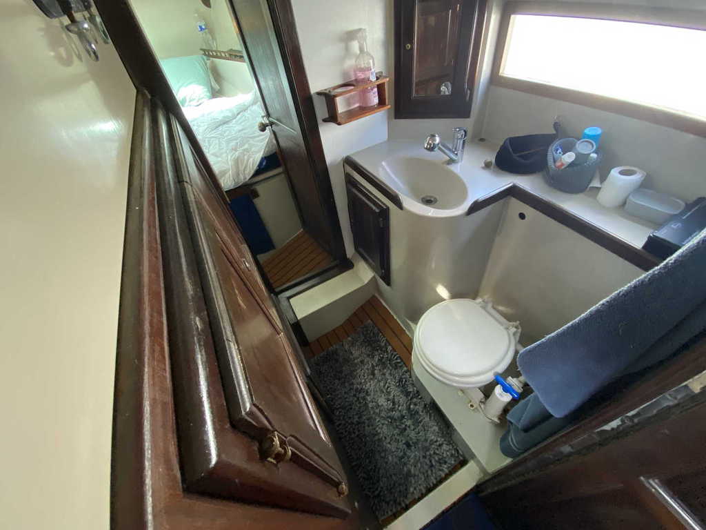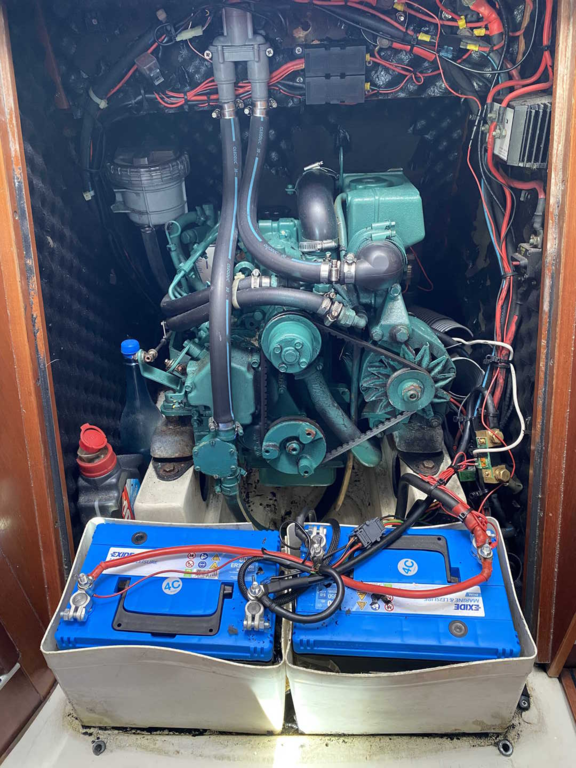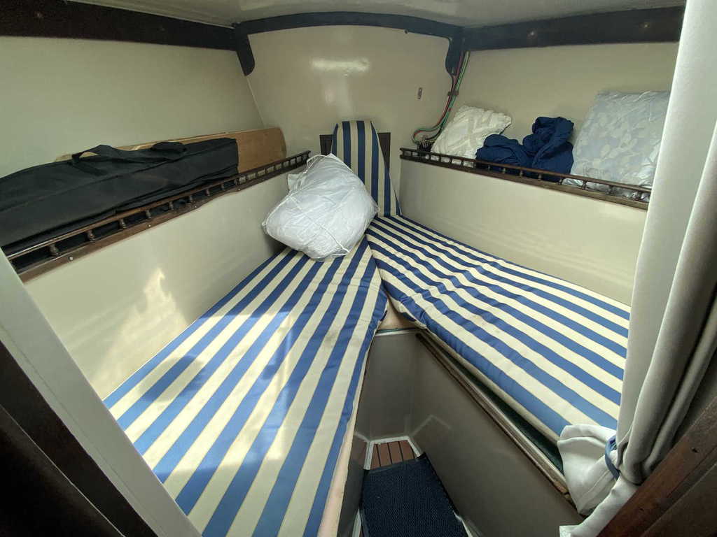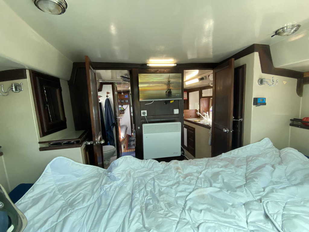 de 55 cv.et d’un propulseur d’étrave. Aménagé avec 3 cabines. Pont en teck. Bateau propre et bien entretenu. Bien équipé avec chauffage, capote de roof et bimini. Electronique complète avec centrale