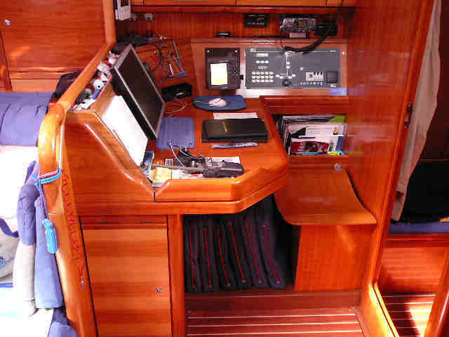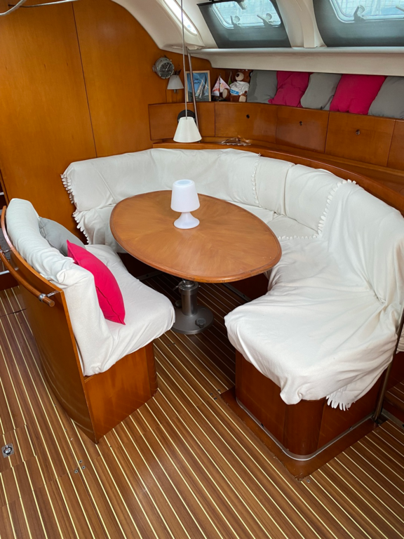 ce voilier possède de très belles lignes. Aménagé avec 4 cabines. Equipé d’un moteur de 87 cv. Equipements électronique complet avec centrale NKE, PC, lecteur de cartes, AIS.... Jeu de voiles très