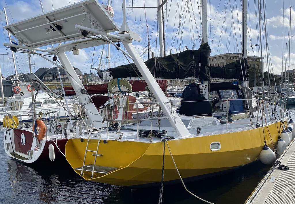Bateau occasion visible en Bretagne, bien équipé. Voilier de croisière rapide. Aménagé avec 2 cabines. Equipé d’un moteur de 20 cv. Quille relevable. Barre franche, bi-safrans. Electronique complète avec centrale de navigation, pilote, GPS, ordinateur avec Max Sea, VHF, AIS. Jeu de voiles complet avec trinquette, solent, spi asymétrique et gennaker. Bateau entretenu et prêt à naviguer. Avec eau chaude sous pression, guindeau électrique, capote de descente. Inventaire sur demande. Place de port possible.