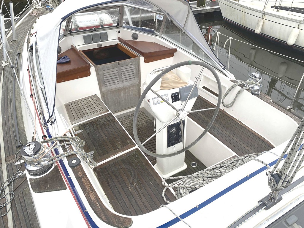 Nauticat 33. Bateau occasion visible en Bretagne. Voilier de croisière, fifty Finlandais. Bateau avec timonerie intérieur et extérieur. Très confortable. Aménagé avec 2 cabines. Equipé d’un moteur de 90 cv. Electronique complète avec lecteur de cartes et pilote. Jeu de voiles complet. Nombreuses options. Chauffage, propulseur, TV, annexe et HB. Place de port. Inventaire détaillé sur demande