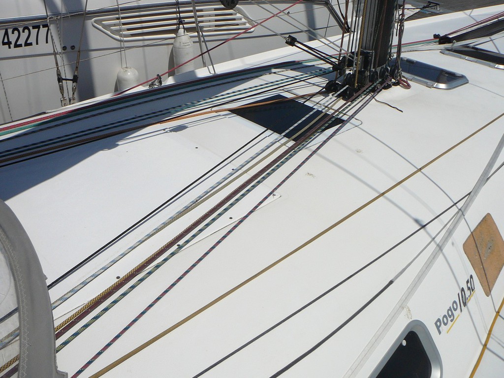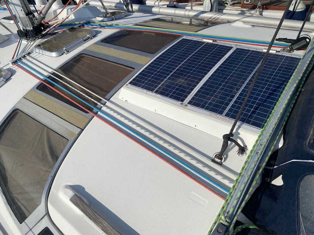Batten, génois enrouleur, trinquette et spi asymétrique. Bien équipé en électronique avec GPS, radar et ordinateur. Portique, panneau solaire, chauffage, annexe et hb ... Inventaire sur demande