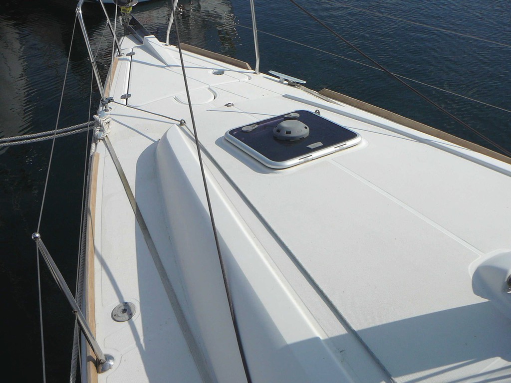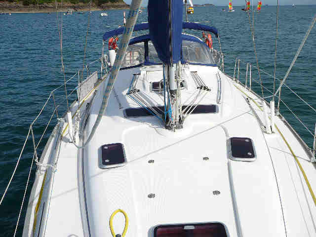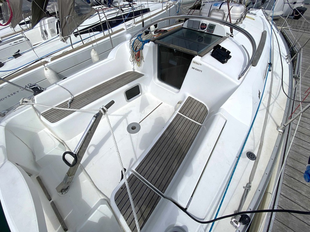 Jeanneau Sun Odyssey 379. Bateau occasion visible en Bretagne. Superbe voilier, moderne, rapide et confortable. Aménagé avec trois cabines. Equipé d’un moteur de 29 cv. Equipements électronique très complet, lecteur de cartes, pilote. Jeu de voiles complet et trés récent, avec spi,. Bateau tout confort avec eau chaude sous pression, très bien équipé avec capote, bimini, armement complet…Place de port. Inventaire sur demande
