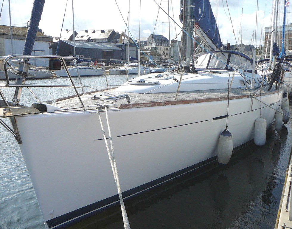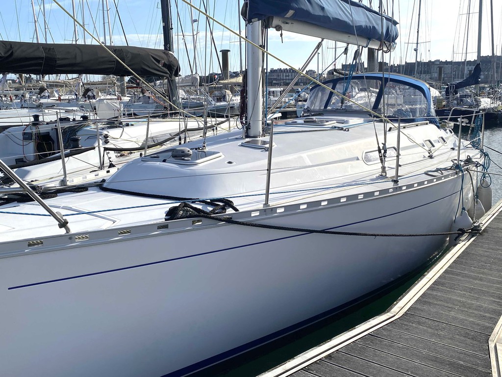 Dufour 39 dériveur intégral de 1998. Bateau occasion visible en Bretagne. Magnifique voilier dériveur très bien entretenu. Pont en teck. Aménagé avec 3 cabines. Equipé d’un moteur Volvo de 40 cv. Jeux de voiles neuf avec spi. Electronique complète avec radar. Bien équipé avec capote de descente, eau chaude sous pression, guindeau électrique, annexe.