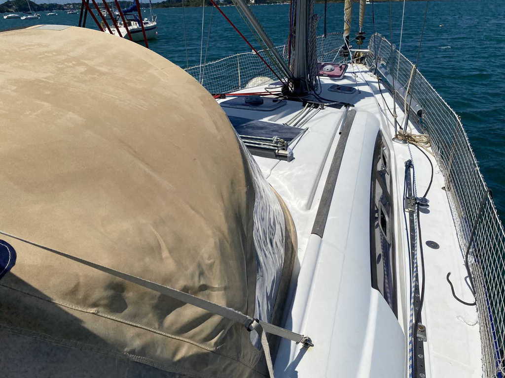 complet et de qualité avec trinquette sur étai largable. Bien équipé avec capote, winch électrique. Inventaire et photos sur demande