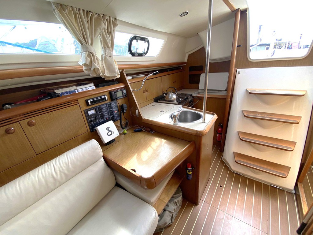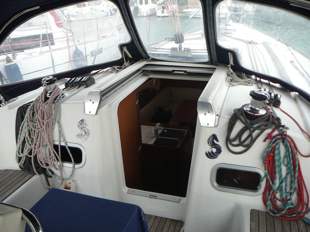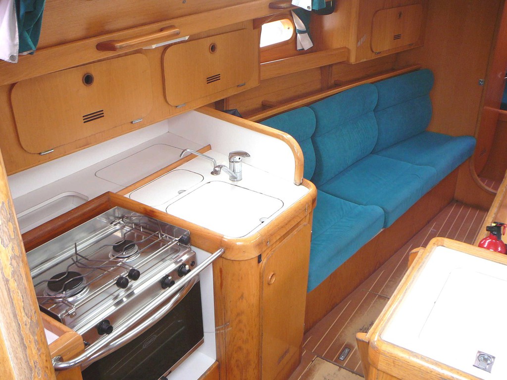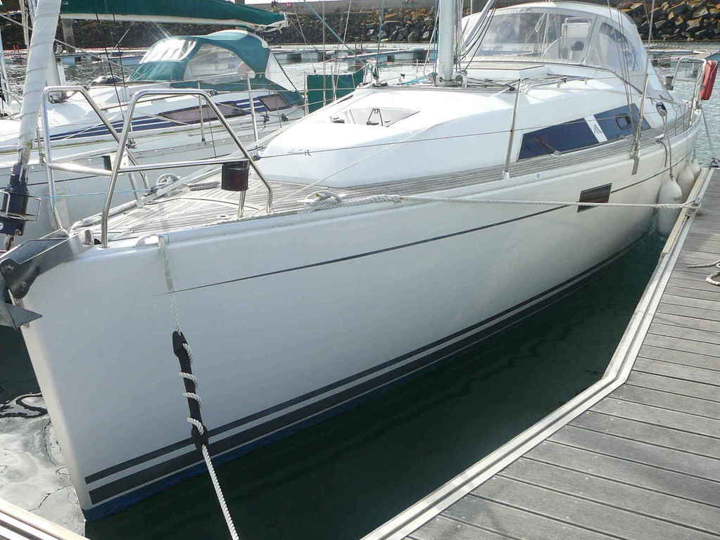 Dufour 36 Classic de 2002. Aménagé avec 3 cabines et 1 cabine de toilette. Equipé d’un moteur Volvo de 28 cv. Equipement électronique complet avec centrale de navigation, pilote, GPS lecteur de cartes, VHF. Jeu de voiles complet avec spi. Bien équipé avec capote de descente, guindeau électrique, eau chaude sous pression, frigo.