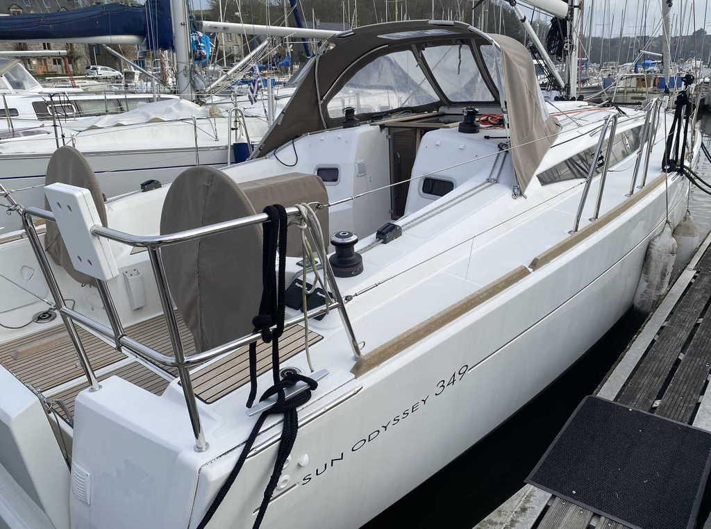 Jeanneau Sun Odyssey 349 de 2020. Bateau occasion visible en Bretagne. Superbe voilier. Idéal pour un programme de croisière. Version performance. Aménagé avec 3 cabines. Equipé d’un moteur de 21 cv. Equipements électronique Raymarine complet avec lecteur de cartes et pilote. Jeu de voiles quasi neuf. Bateau très bien équipé avec capote de roof, bimini, guindeau électrique, chauffage, portique, panneaux solaire, annexe et hb. Inventaire sur demande.