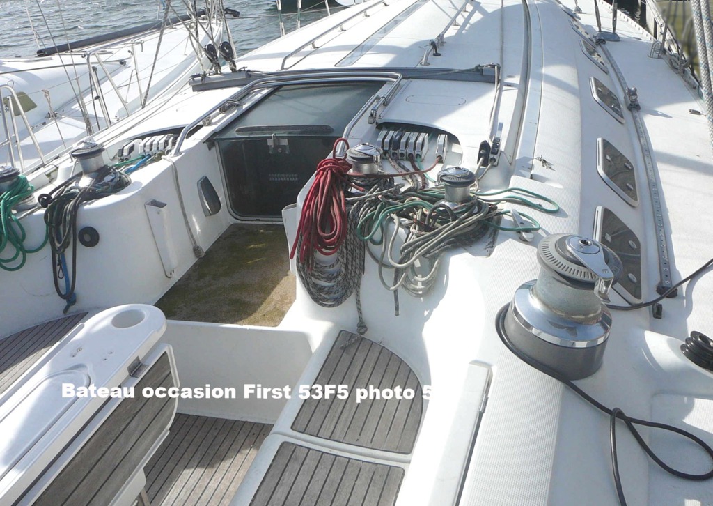 First 53F5. Bateau d'occasion visible en Bretagne. Superbe voilier. Carène signé Bruce Farr et design Pininfarina,