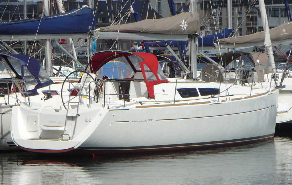 Sun Odyssey 33 i Dériveur. Bateau occasion visible en Bretagne. Bateau en trés bon état, bien entretenu. Superbe voilier. Idéal pour un programme de croisière. Aménagé avec 2 cabines. Equipé d’un moteur de 21 cv ayant très peu d’heures. Equipements électronique B&G complet avec lecteur de cartes, pilote. Bateau très bien équipé avec capote de roof, guindeau électrique, annexe. Inventaire détaillé sur demande.
