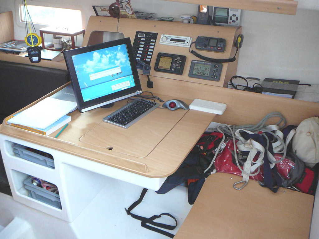centrale de nav. Tout confort avec chauffage, eau chaude sous pression, micro-ondes, capote de descente, guindeau, panneau solaire.