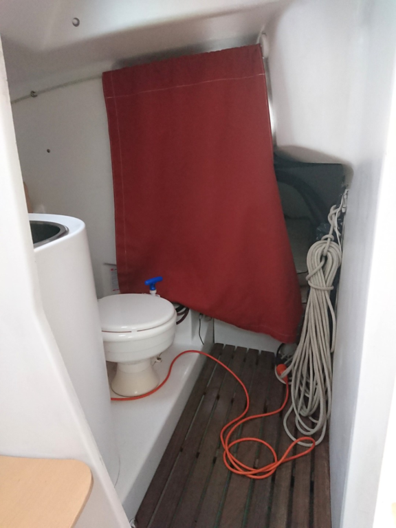asymétrique. Bateau très bien équipé avec capote de roof, chauffage, annexe et hb.